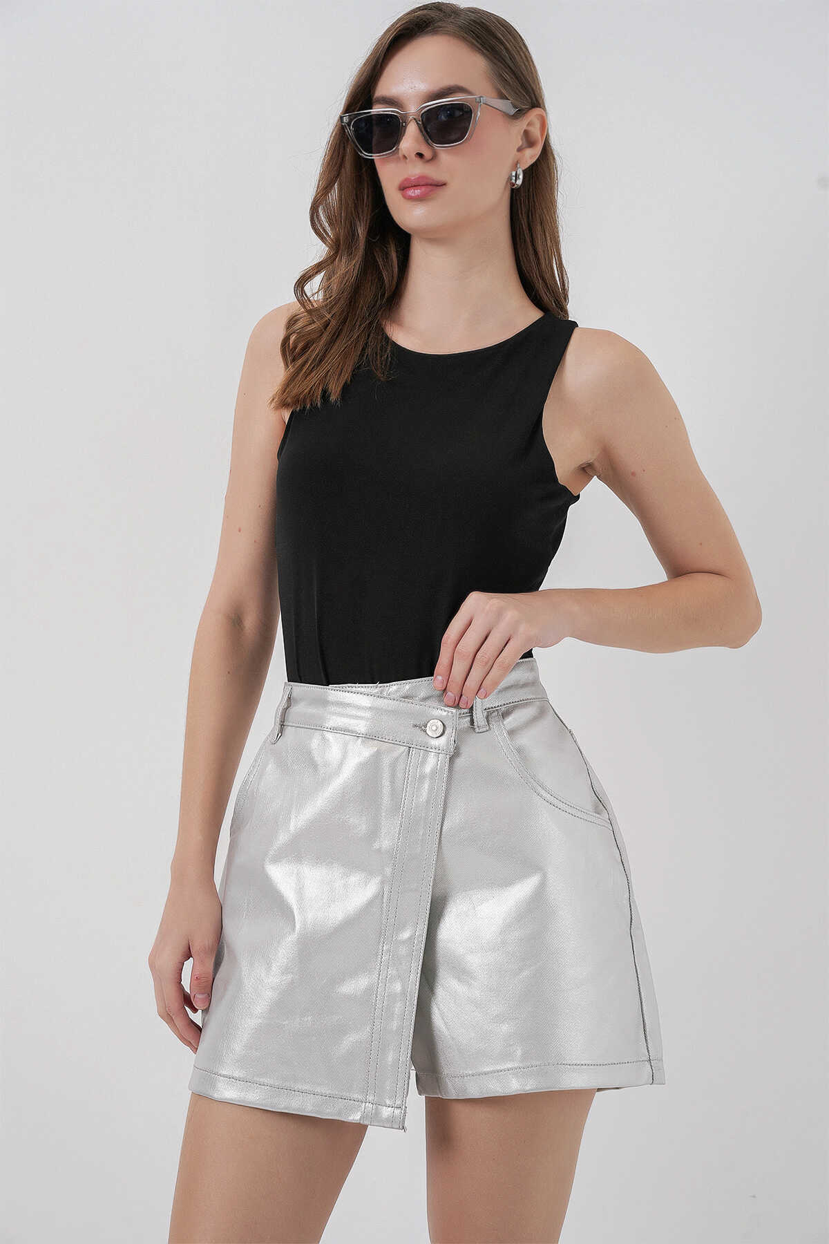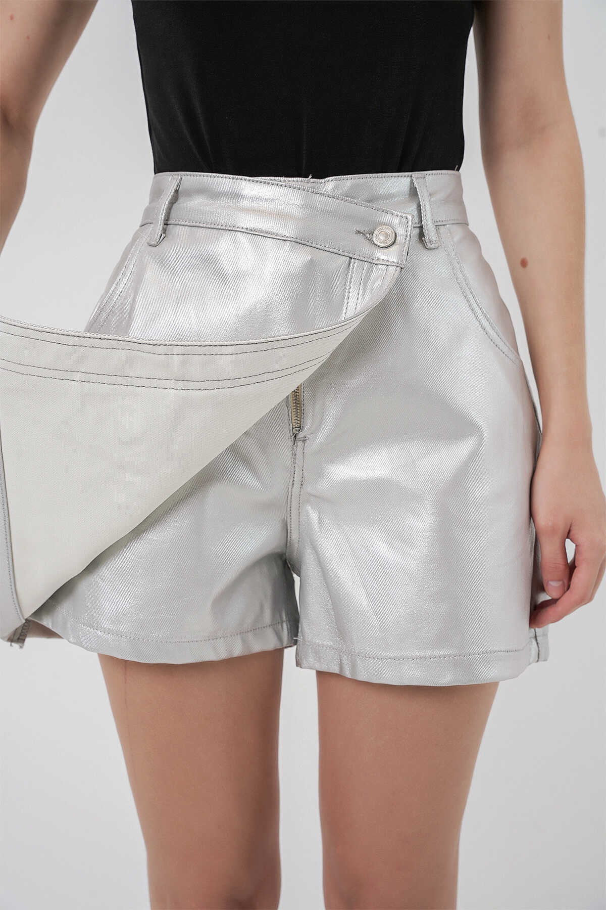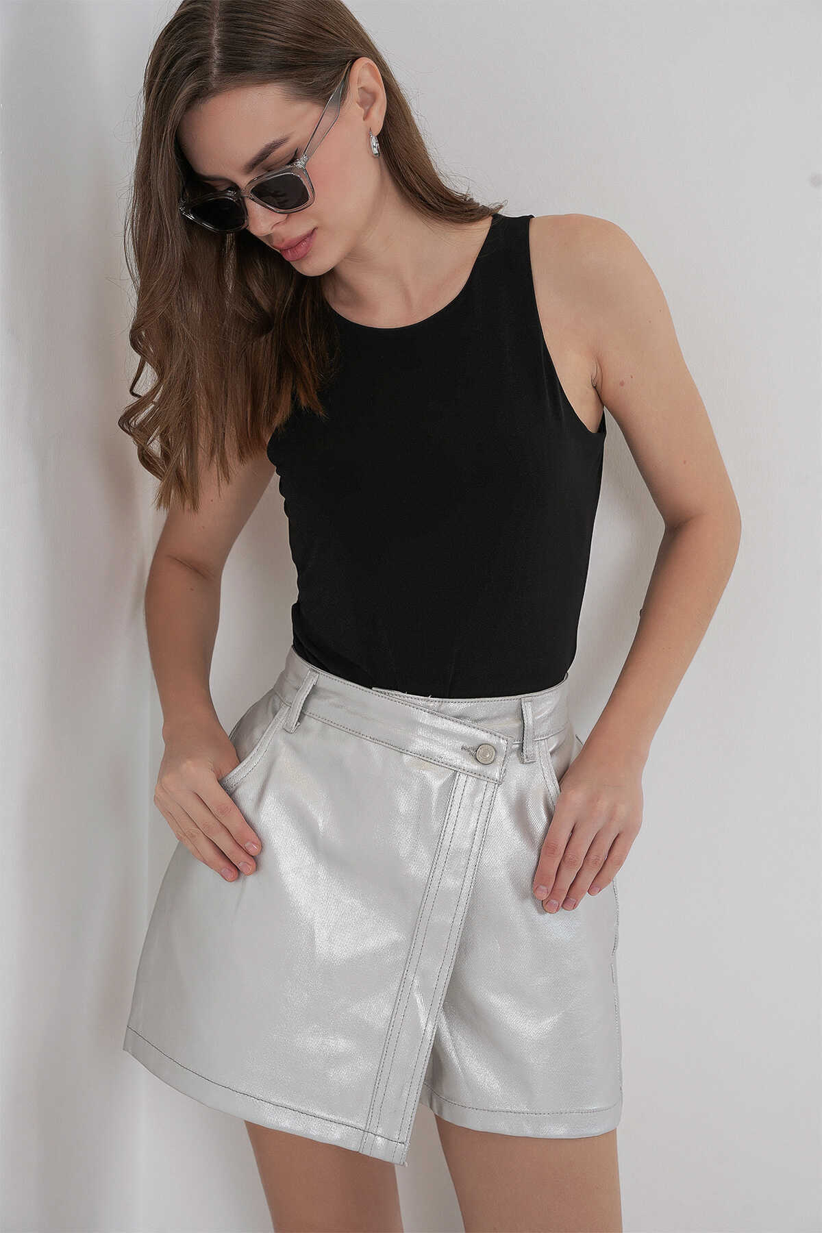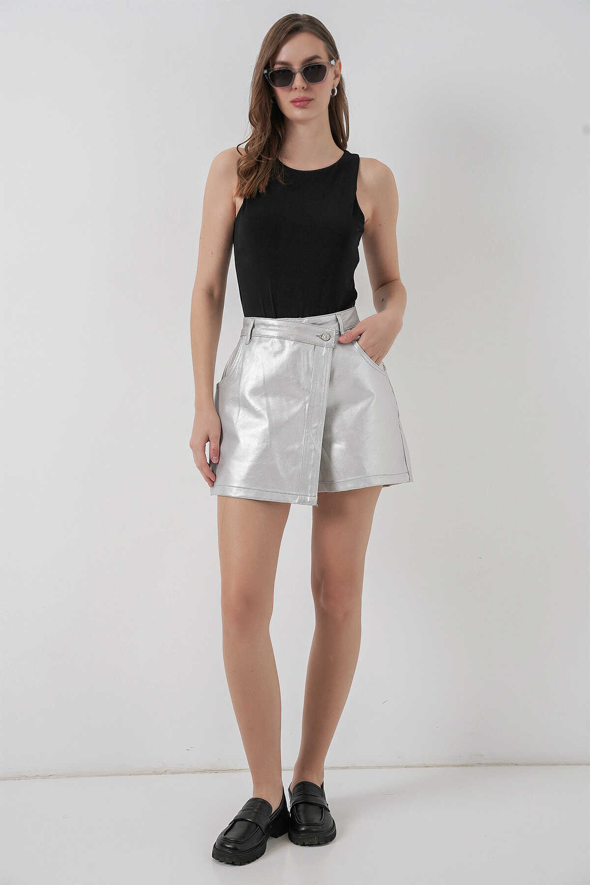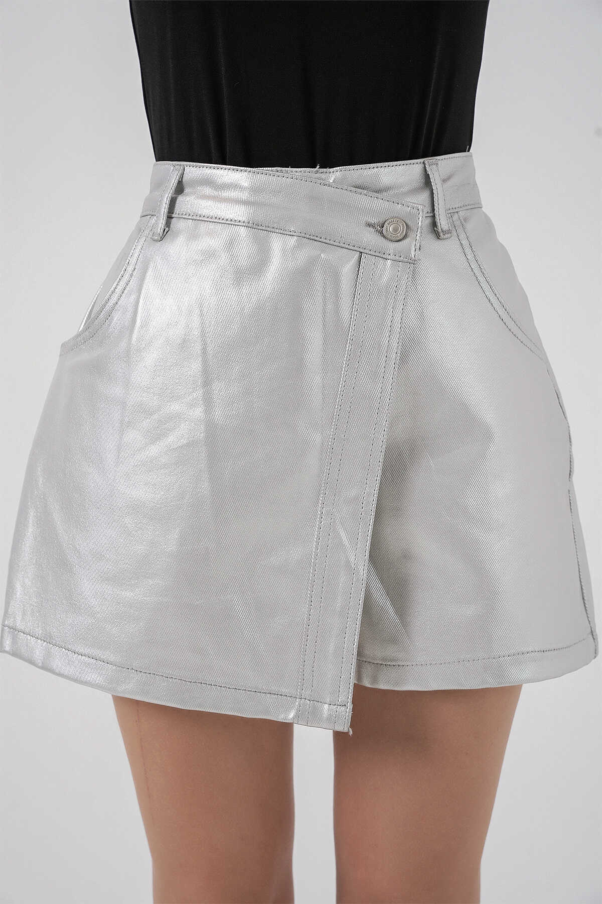 Kadin Parlak Sort Etek 8044