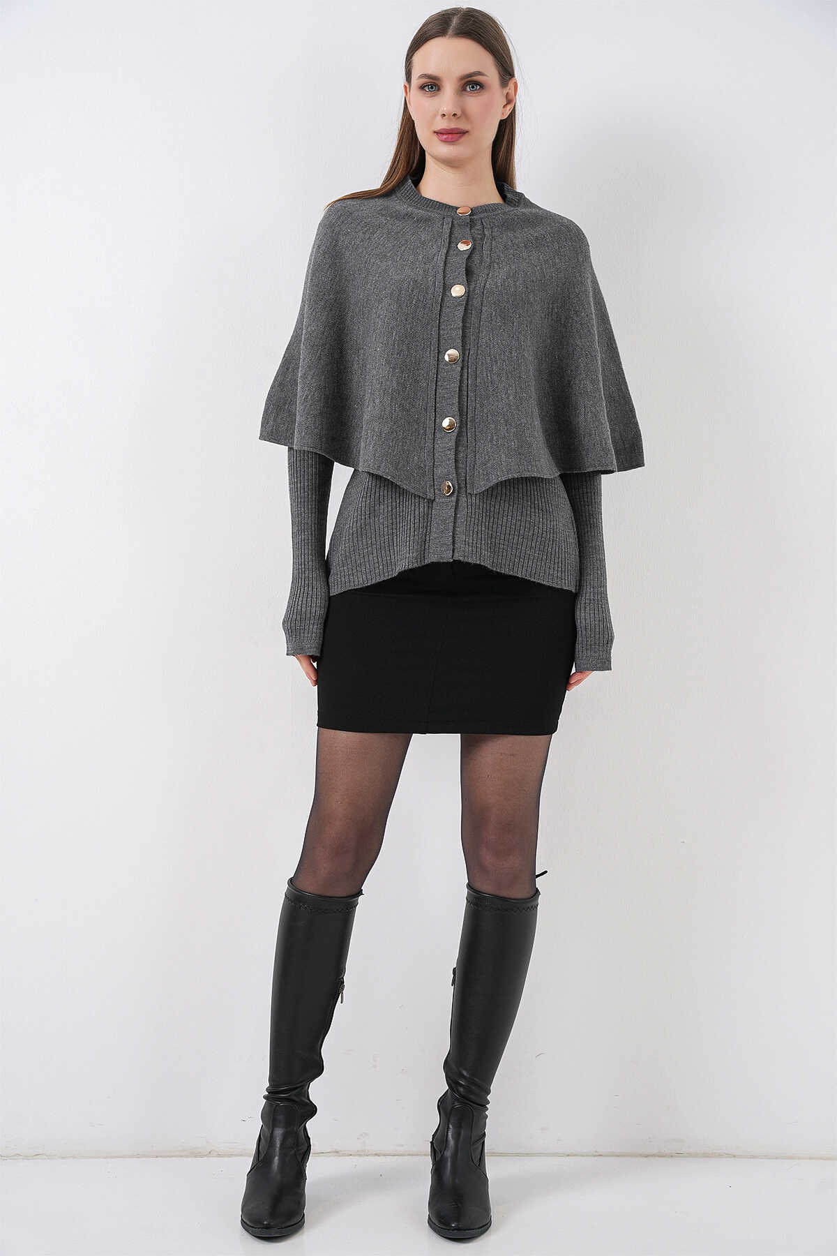 Kadin Pelerinli Triko Hirka 15967