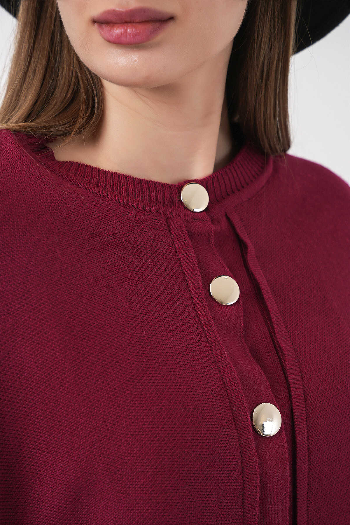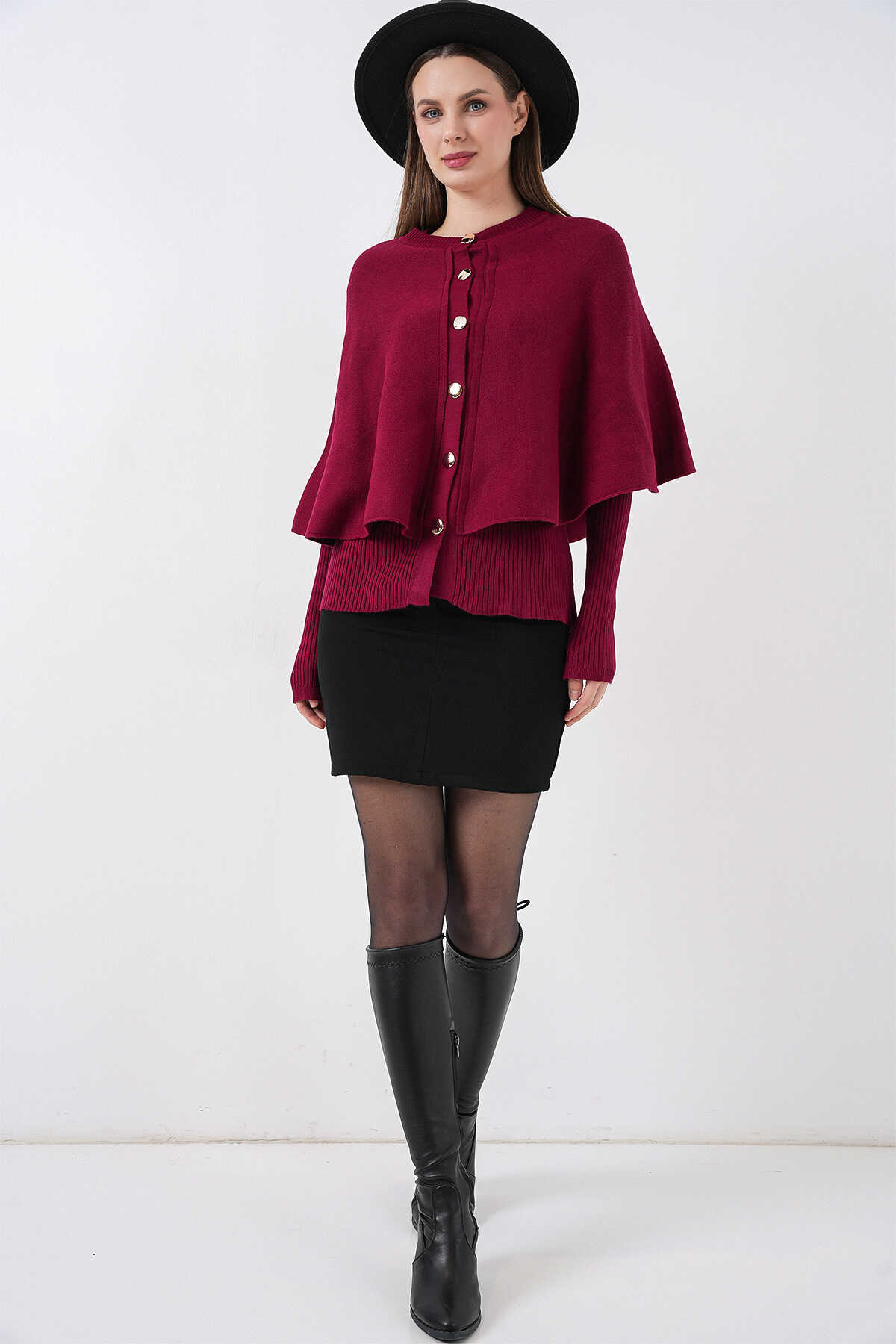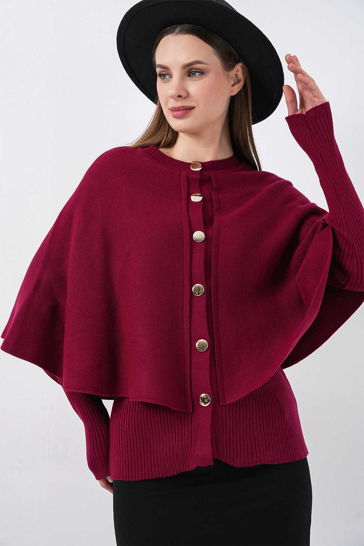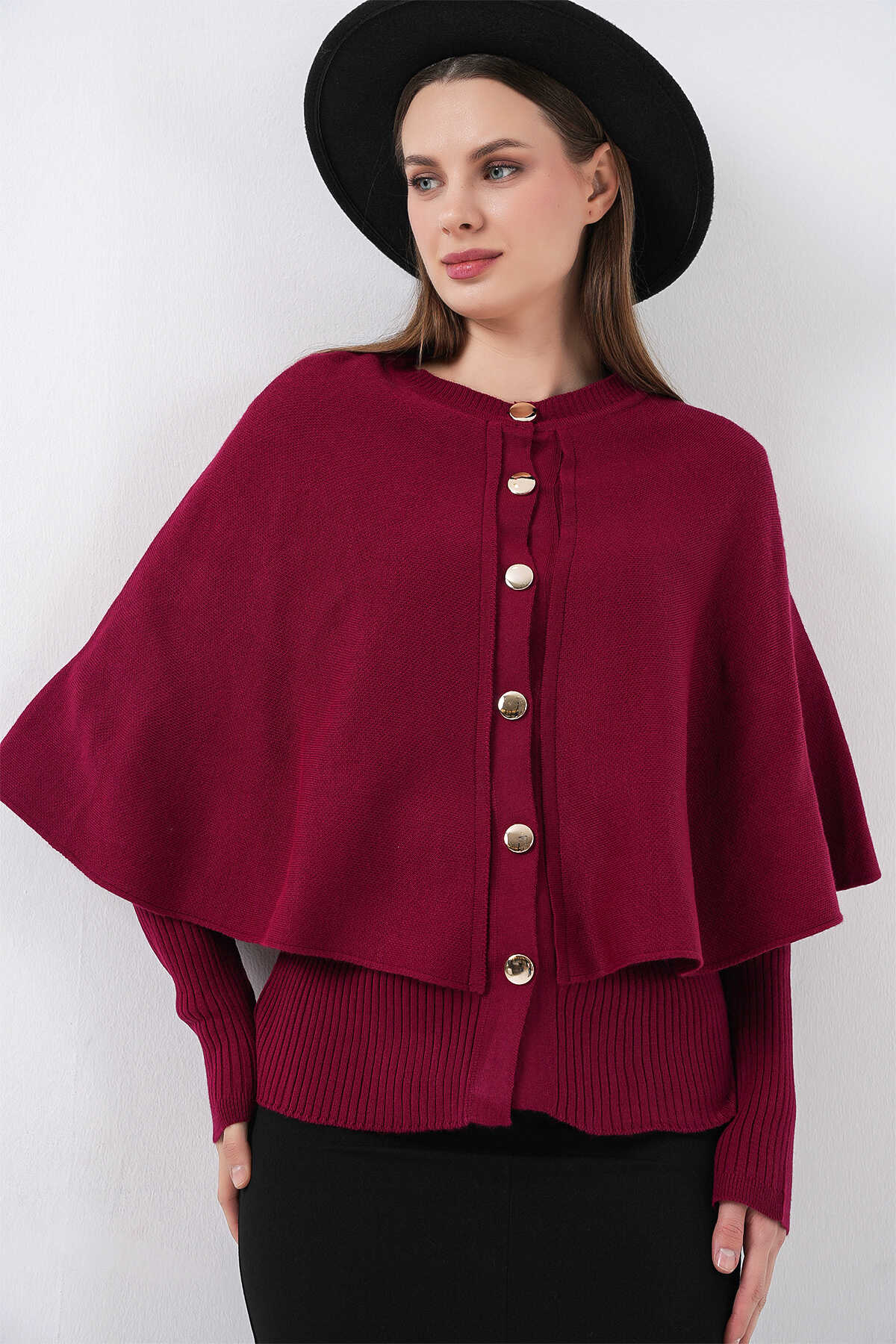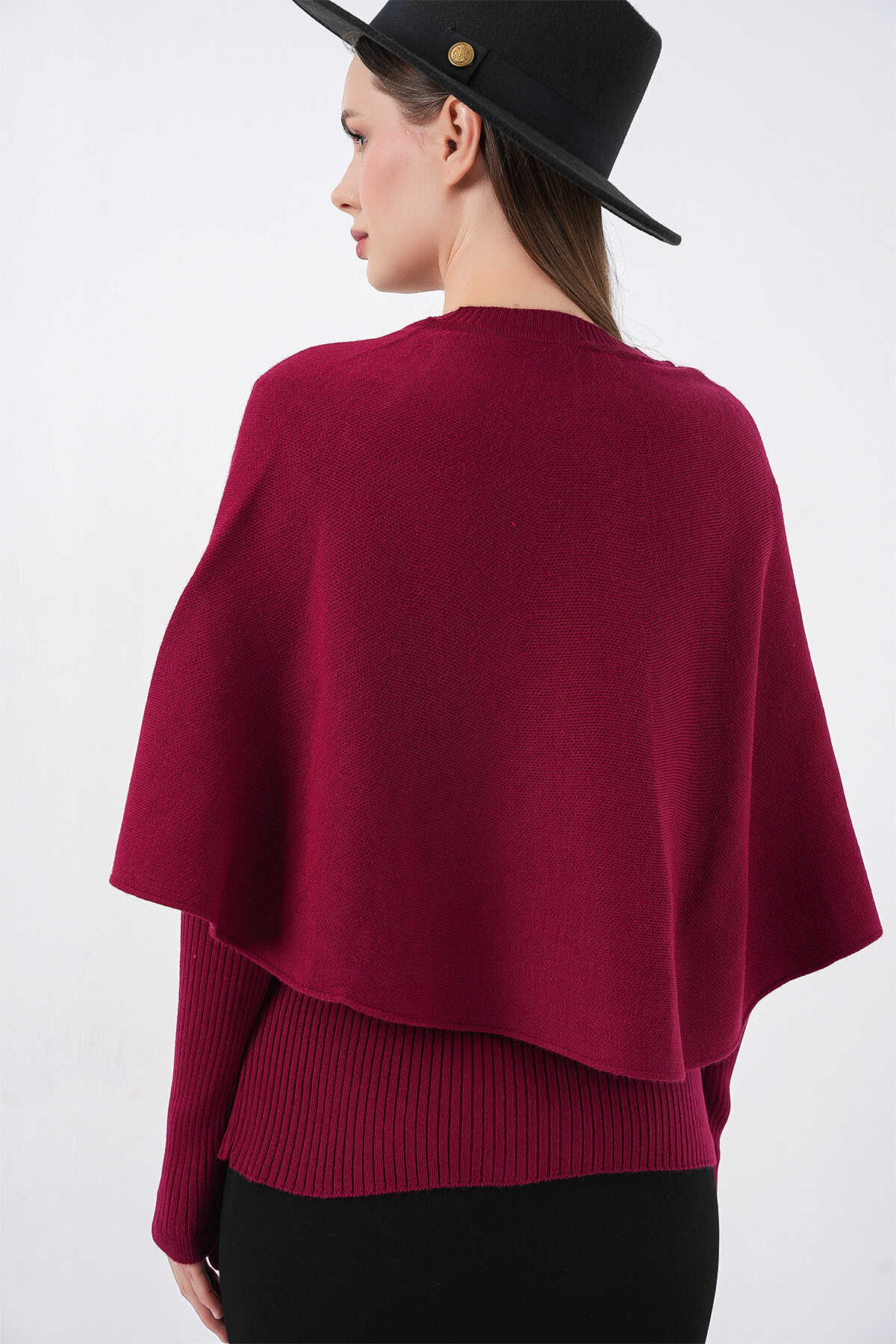 Kadın Pelerinli Triko Hırka 15967 - Bordo - Kombin