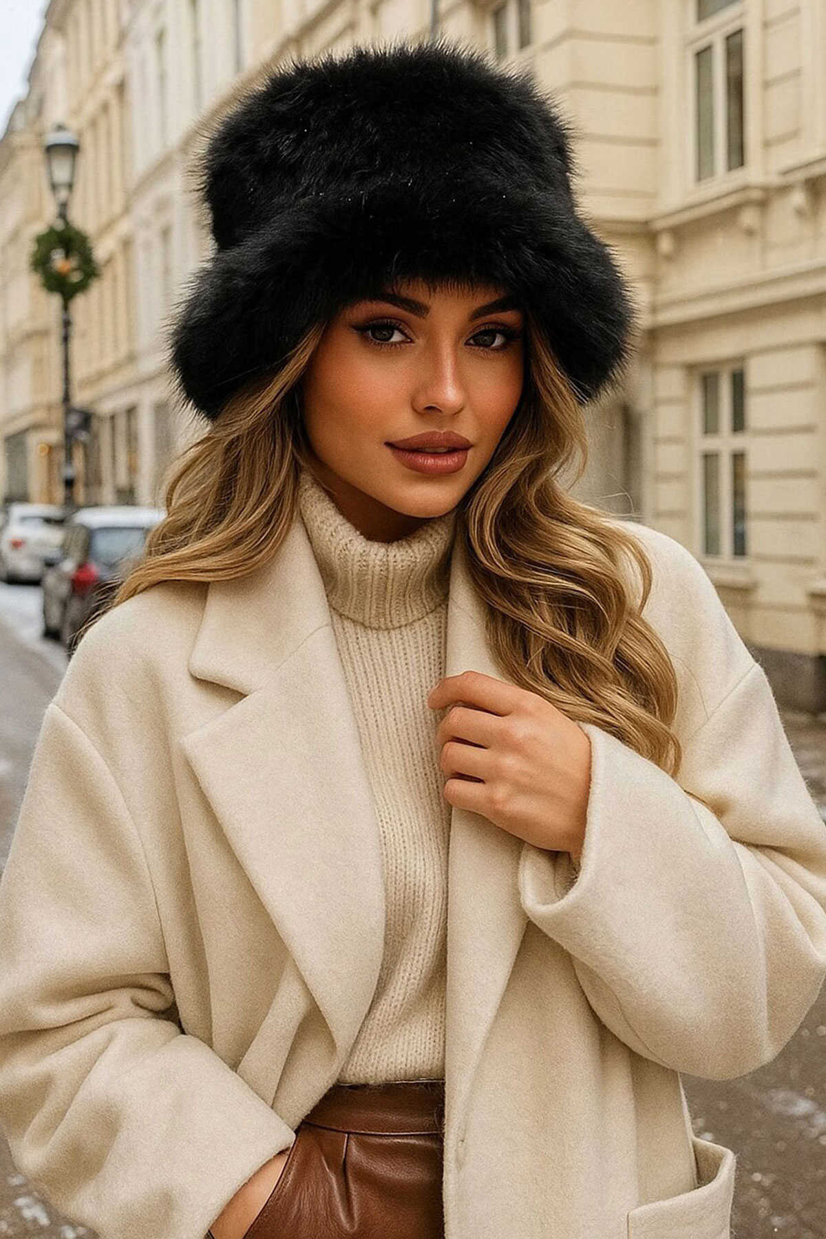 Kadın Peluş Kalpak Şapka 010194 - Siyah - Kombin