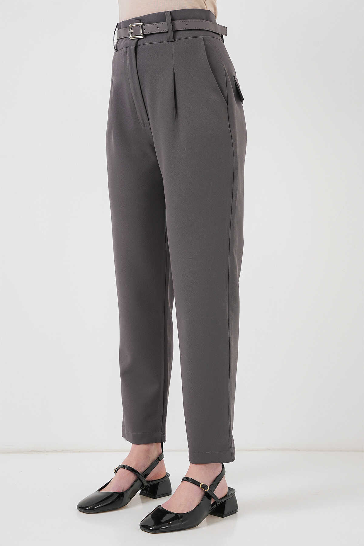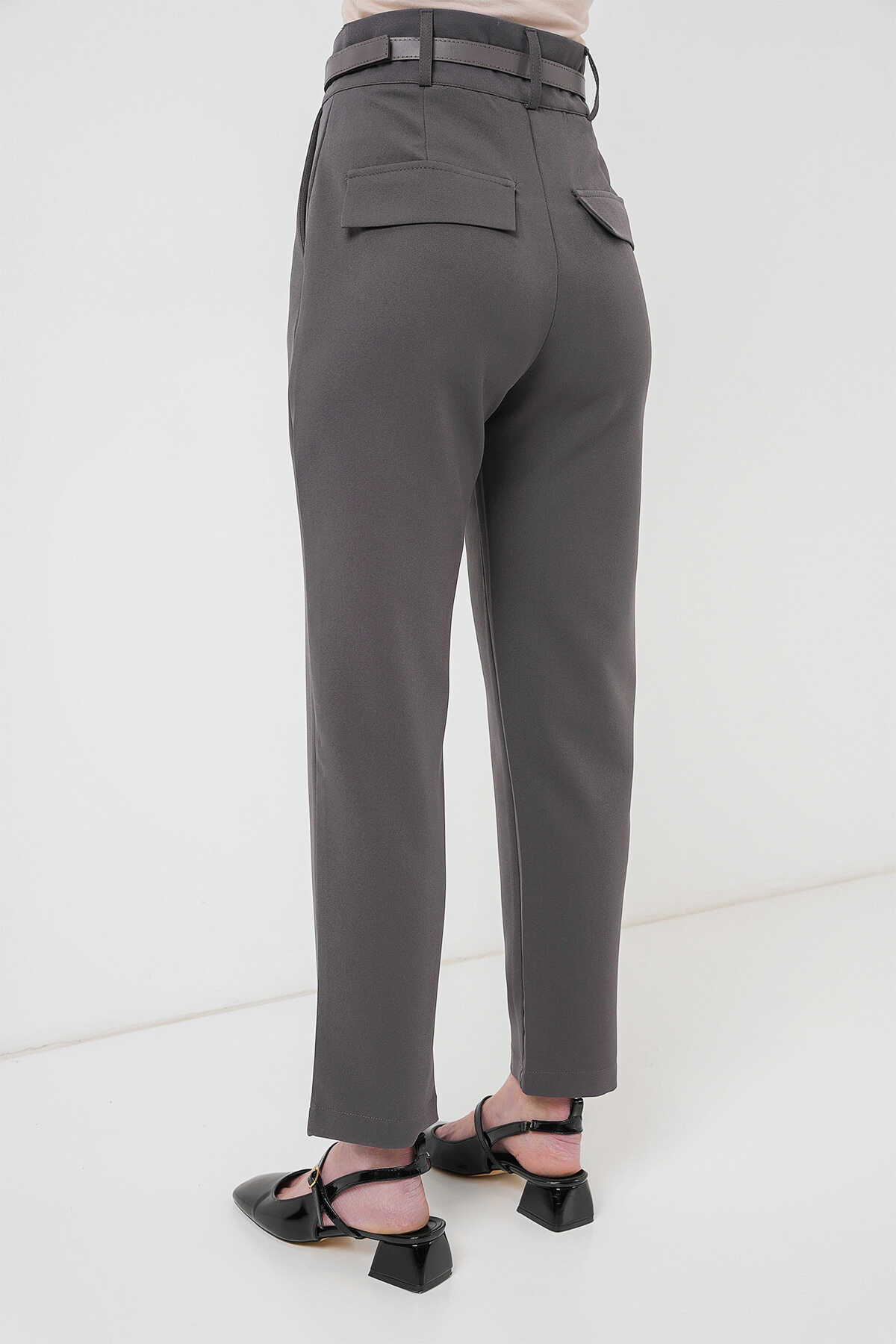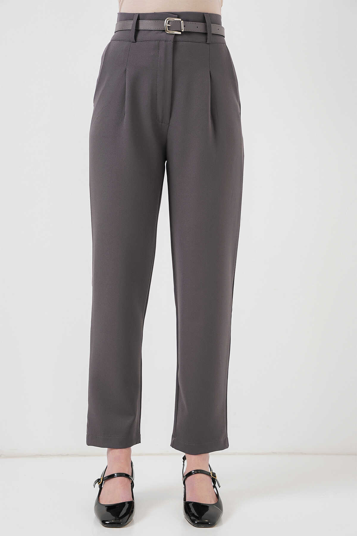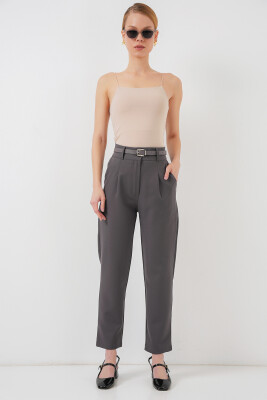 Kadın Pileli Kemerli Kumaş Pantolon 6725 - Antrasit - Kombin