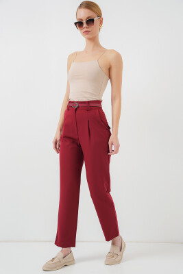 Kadın Pileli Kemerli Kumaş Pantolon 6725 - Kırmızı - Kombin