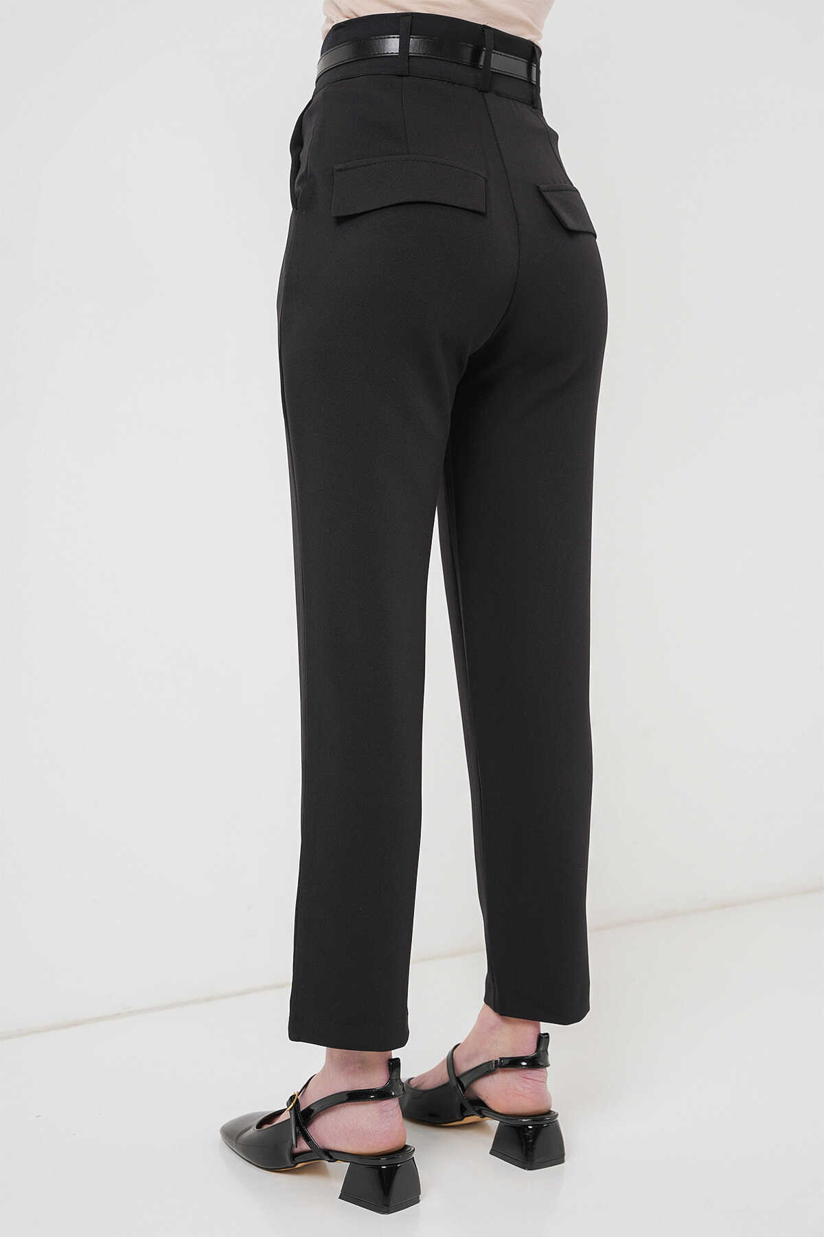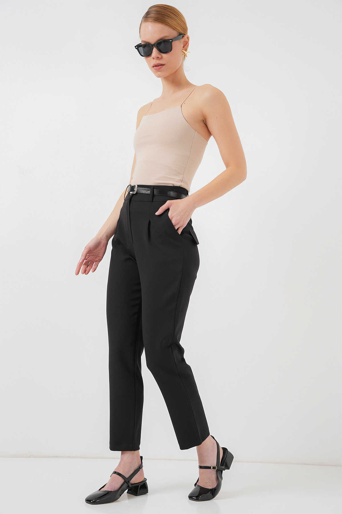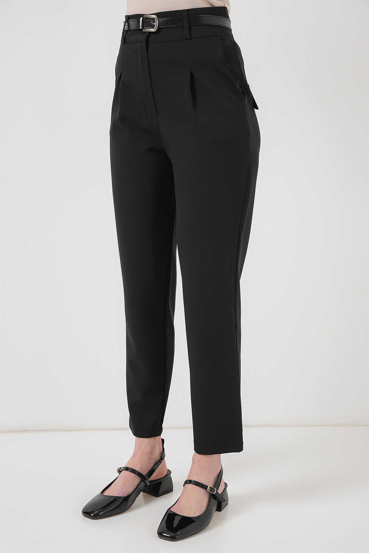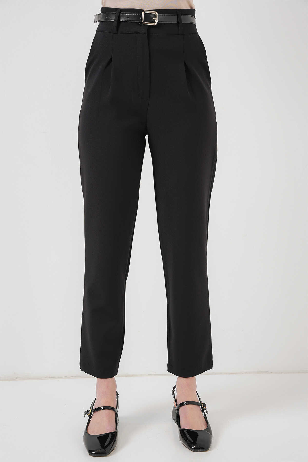 Kadın Pileli Kemerli Kumaş Pantolon 6725 - Siyah - Kombin