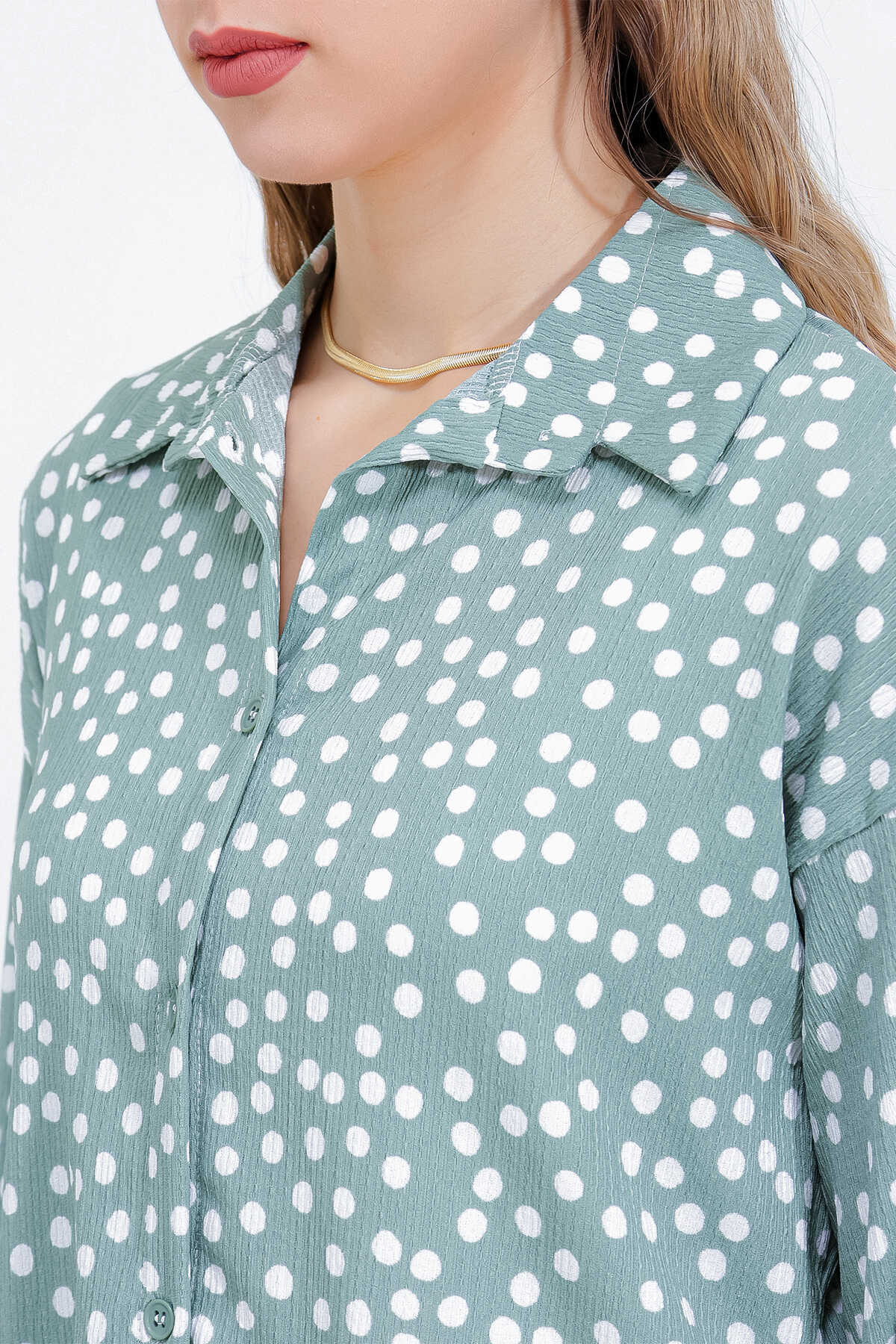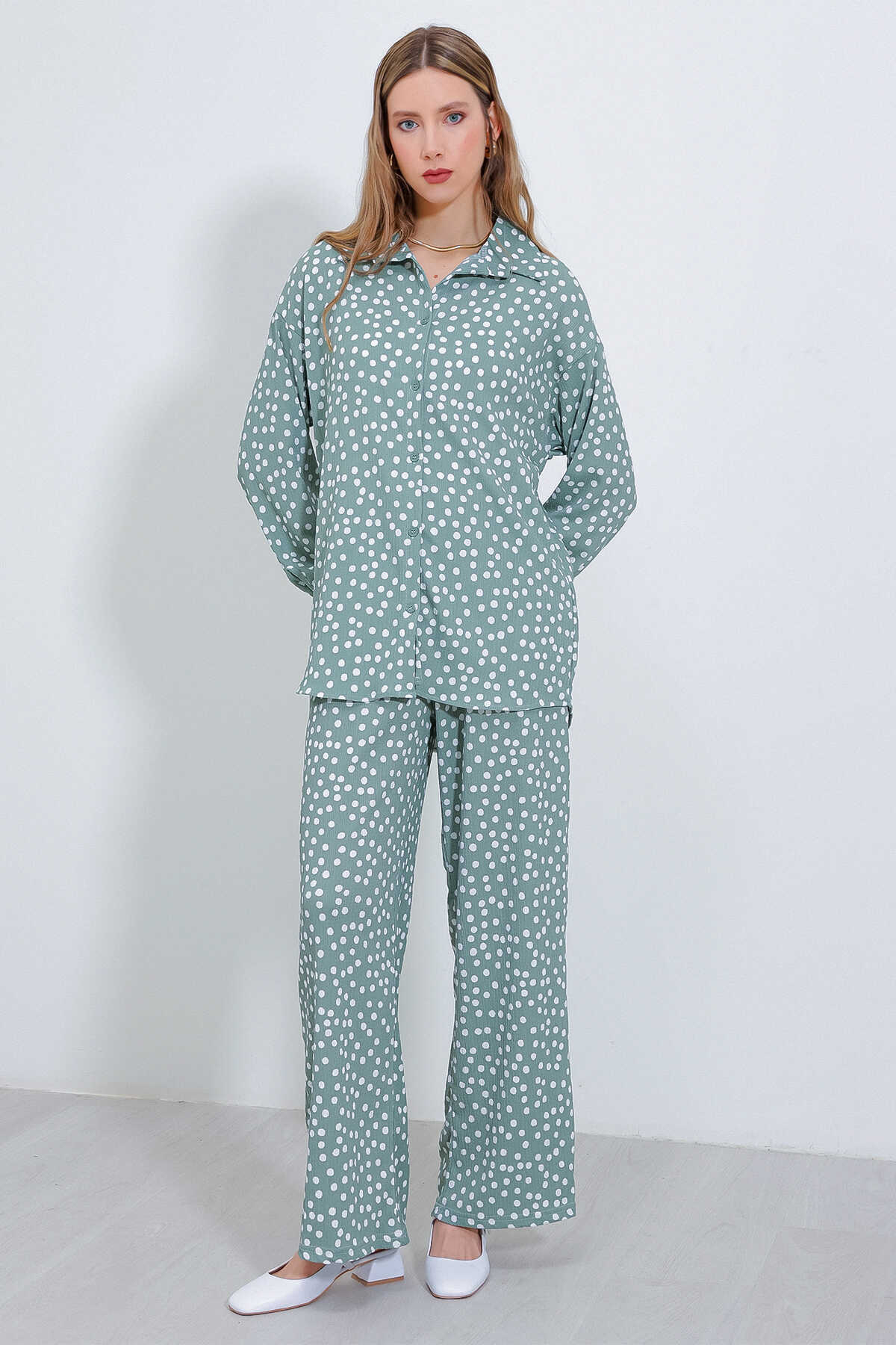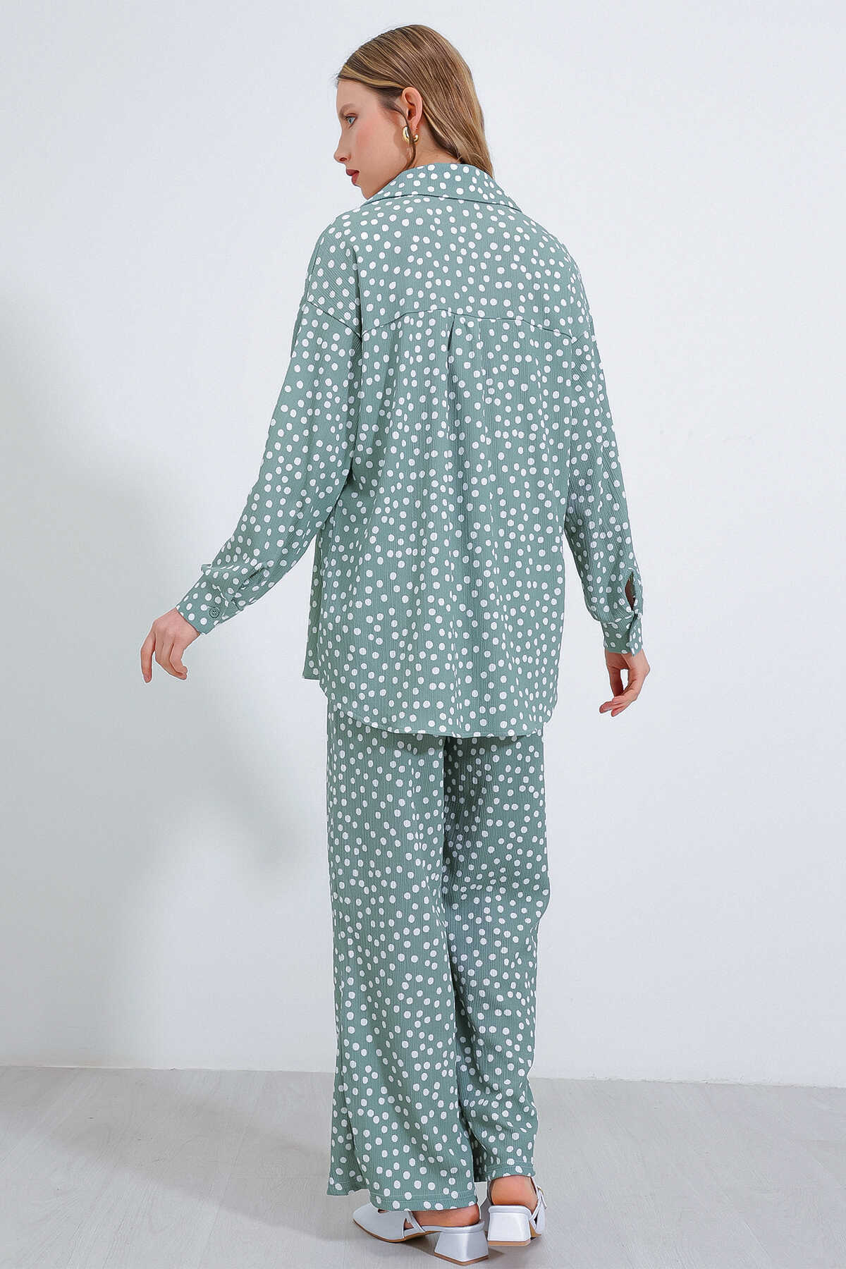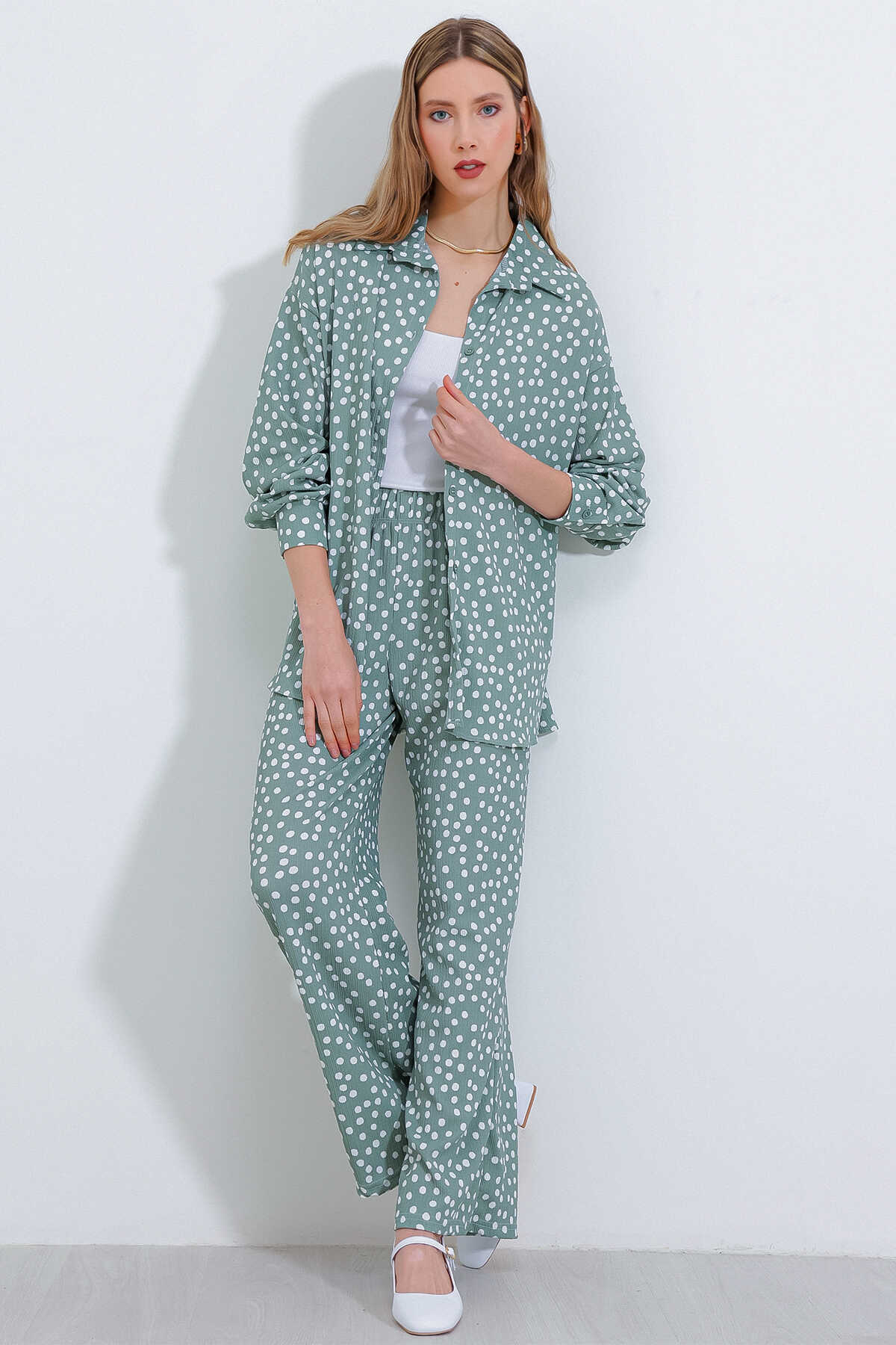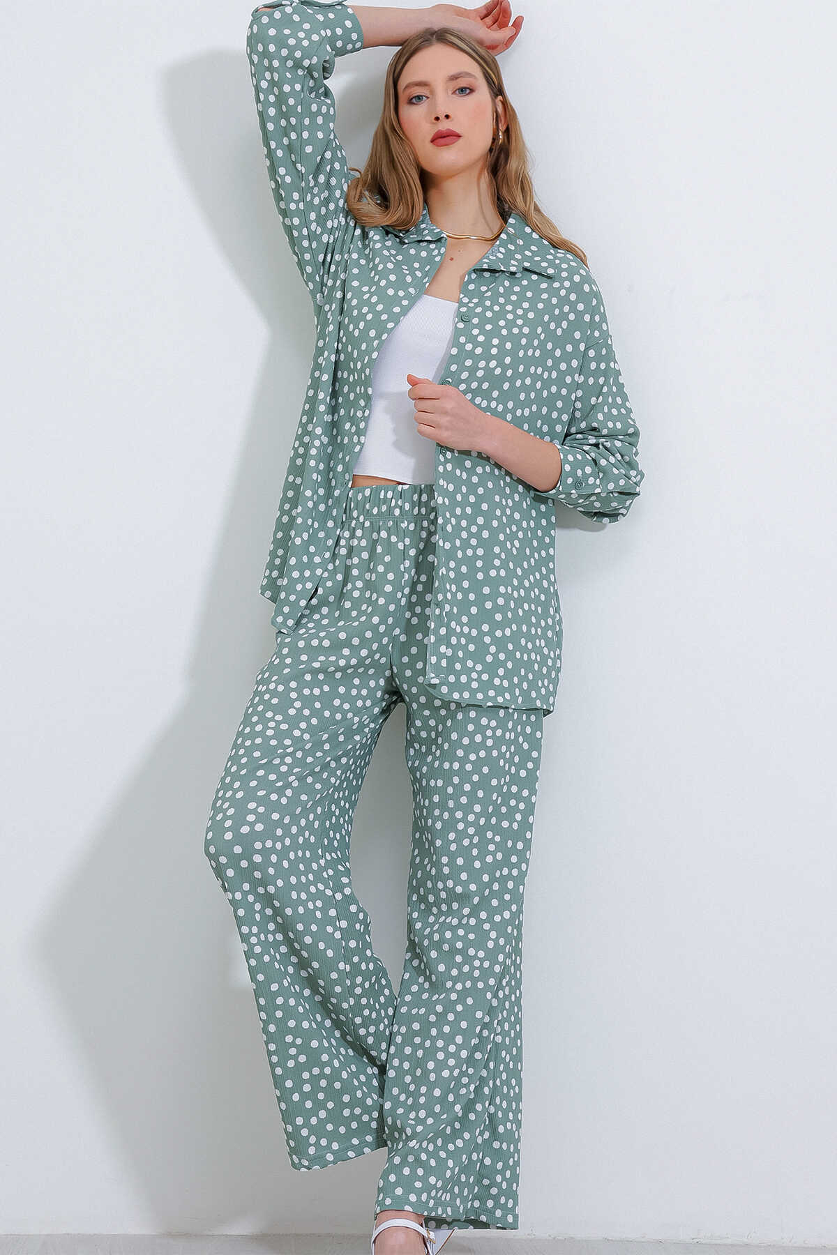 Kadın Puantiyeli Mint Ekru Örme İkili Takım 5858 - Kombin
