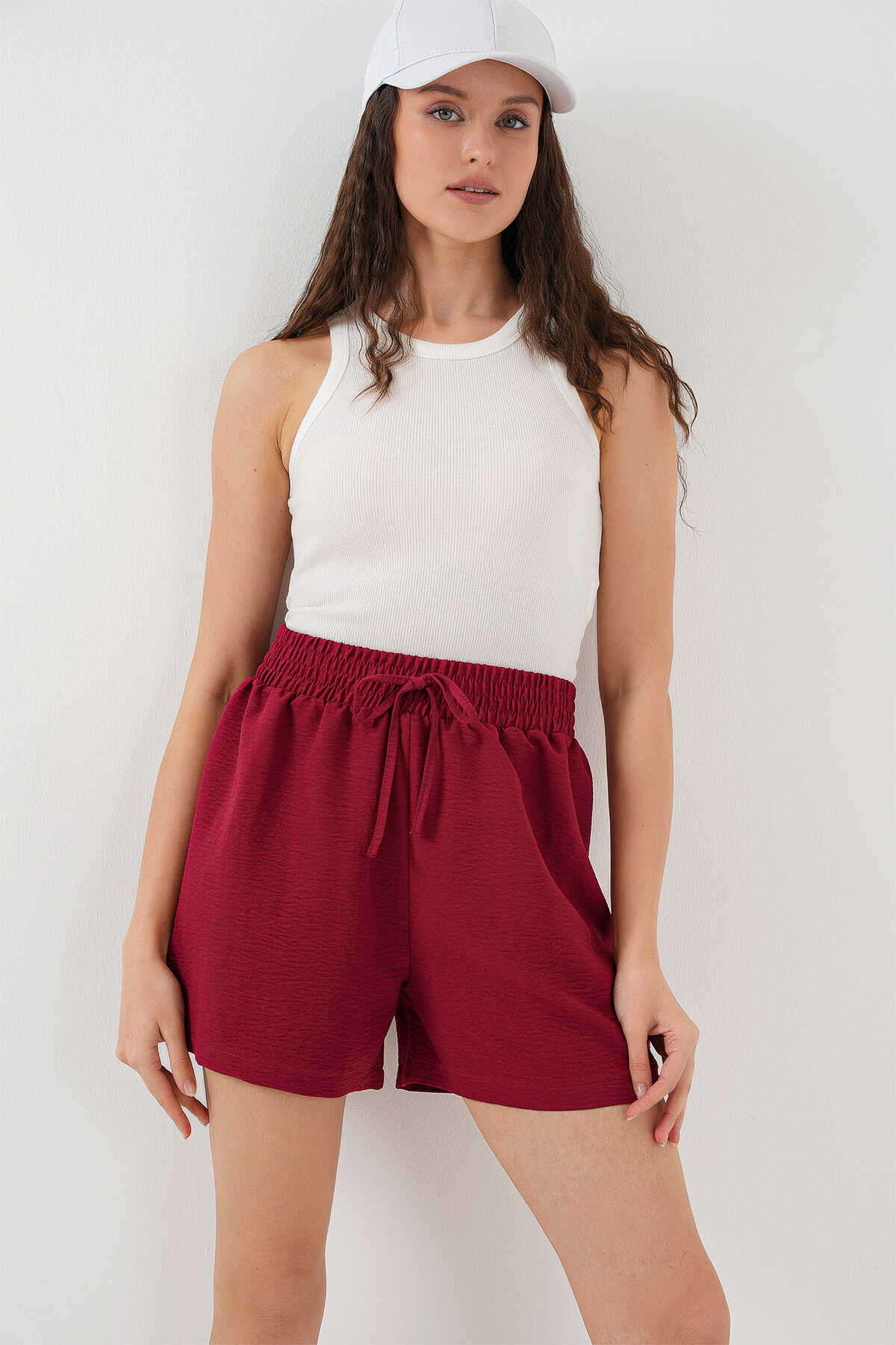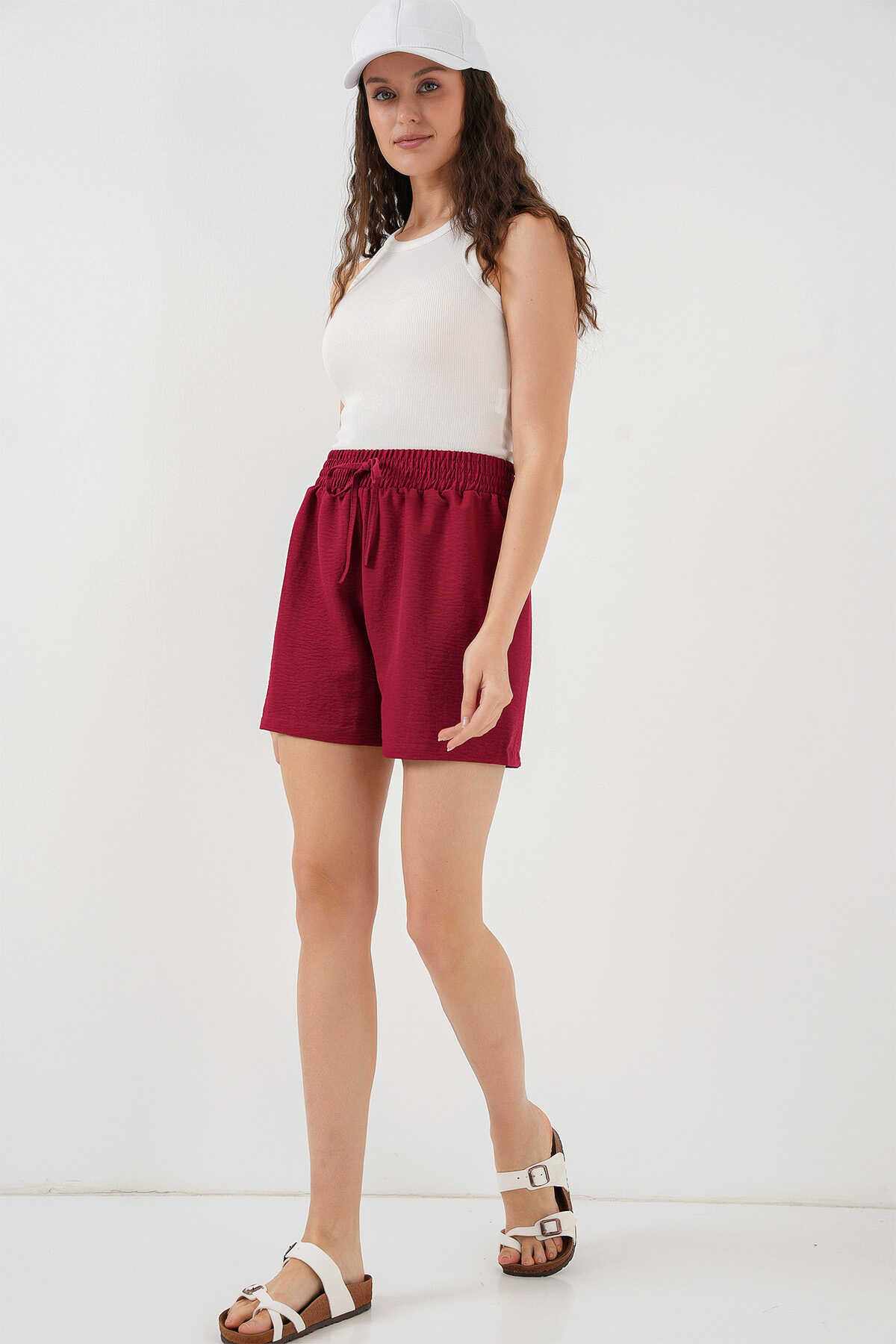 Kadın Rahat Kalıp Şort 5327 - Kırmızı - Kombin