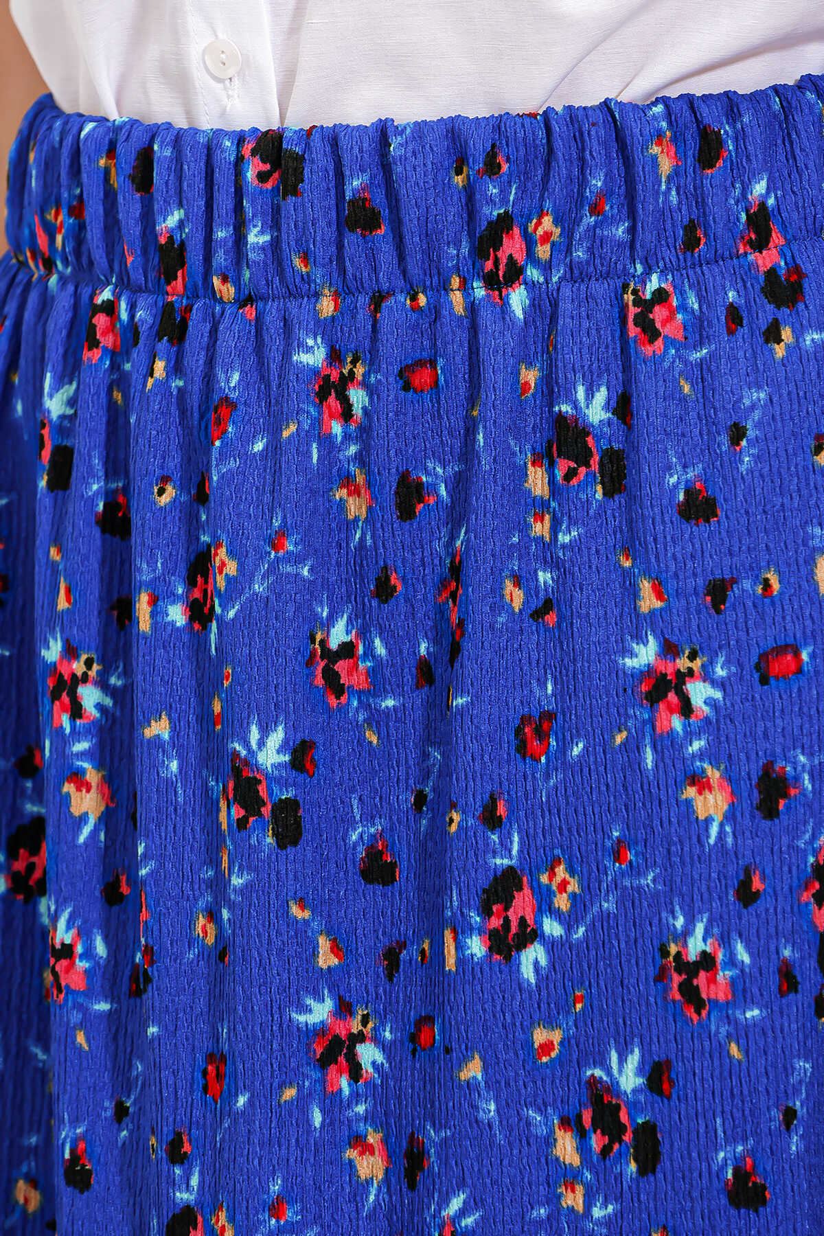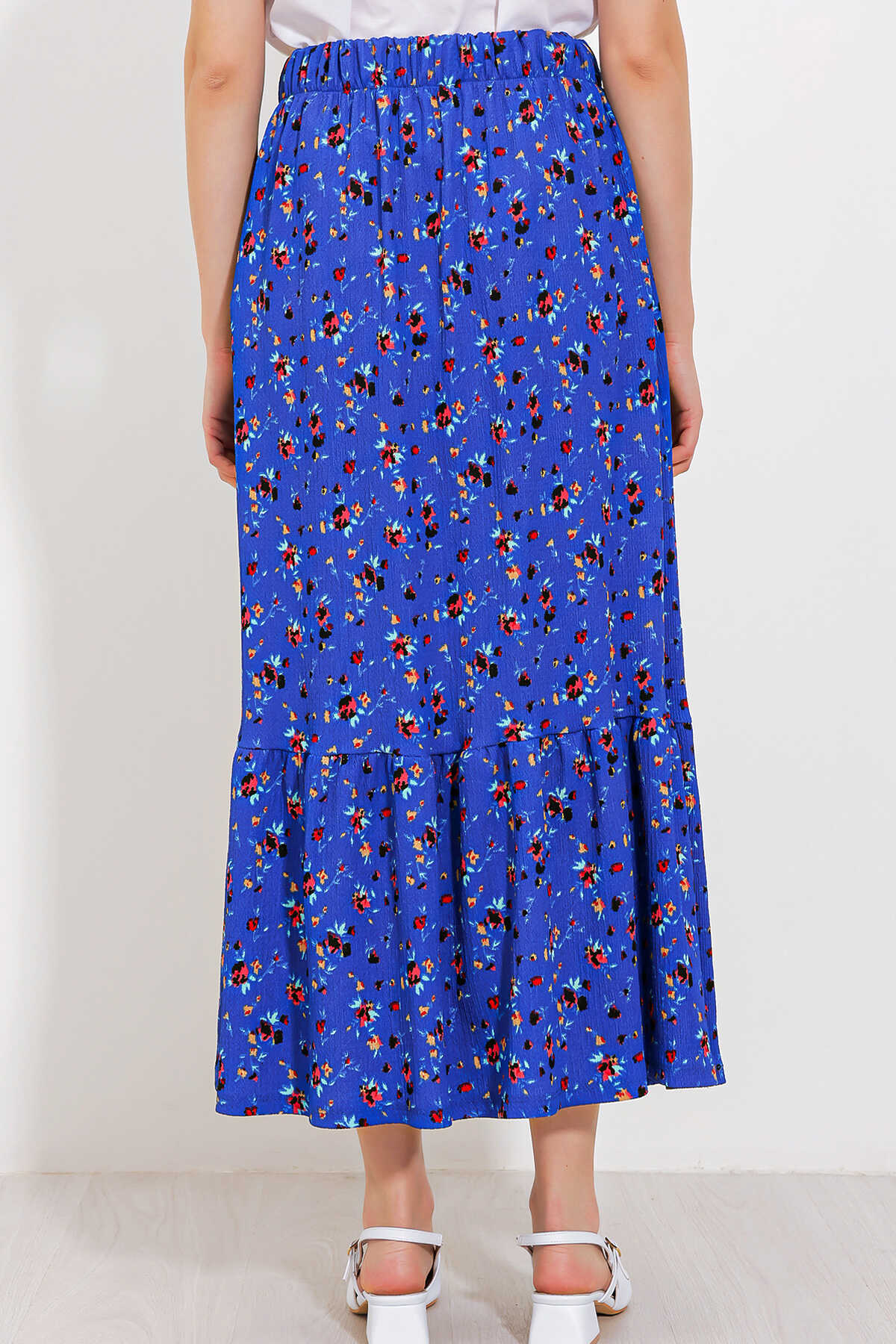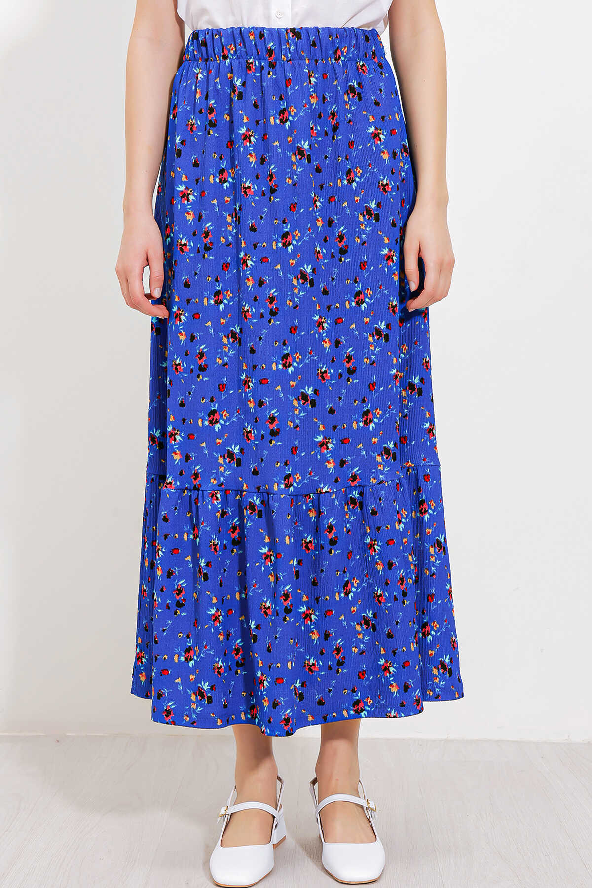 Kadın Saks Çiçek Desenli Uzun Örme Etek 1886 - Kombin