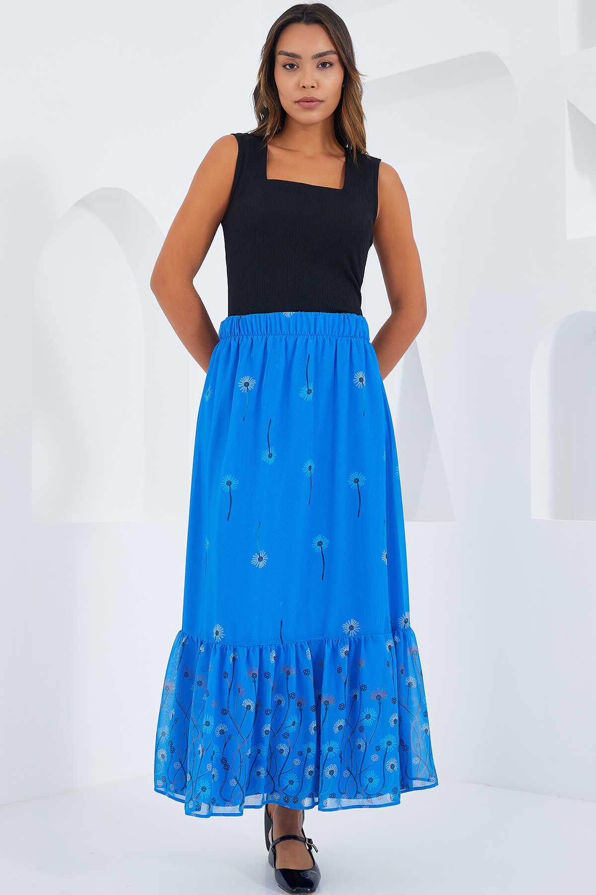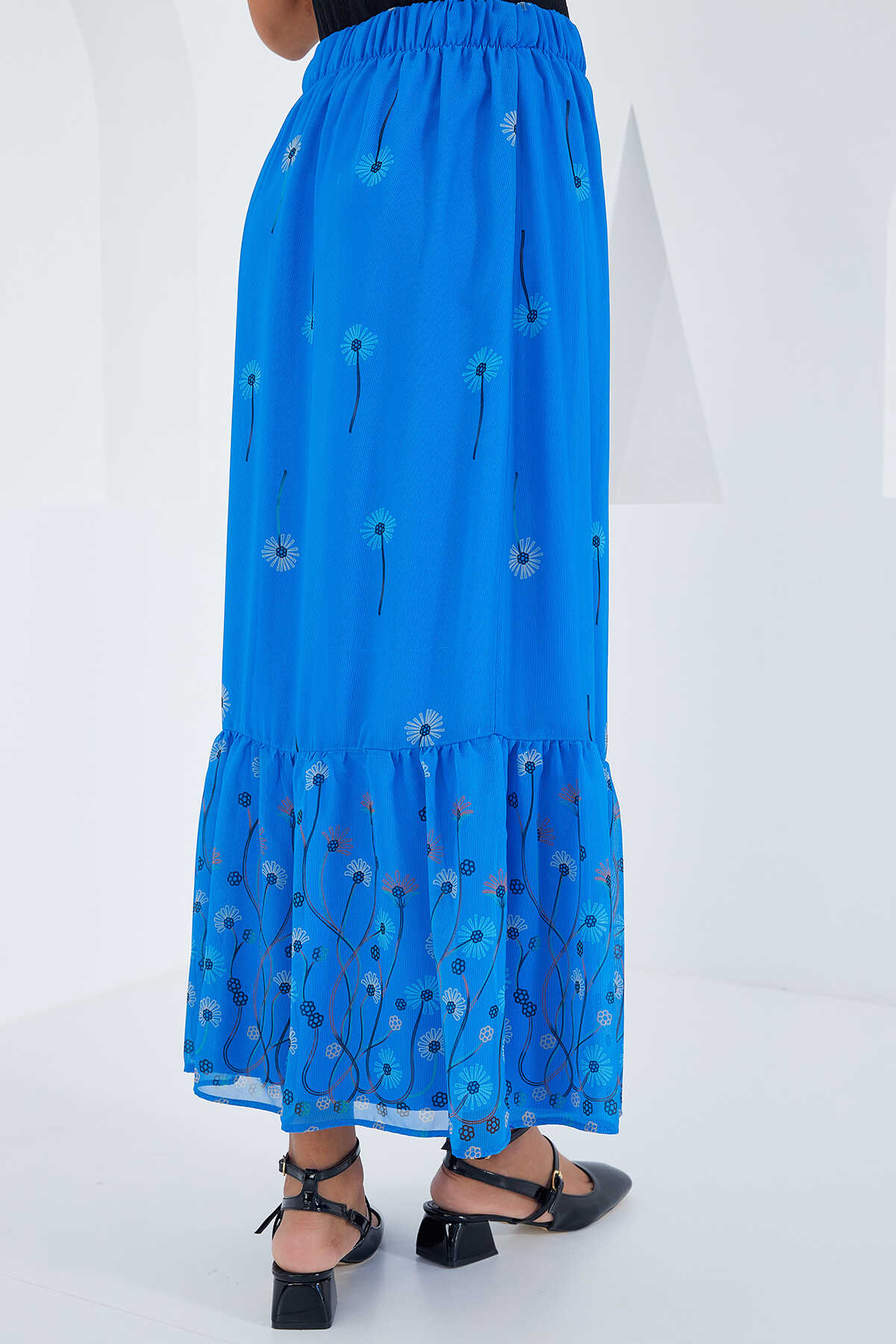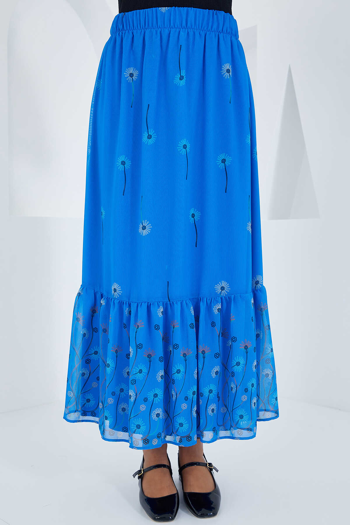 Kadın Saks Desenli Şifon Etek 8010 - Kombin