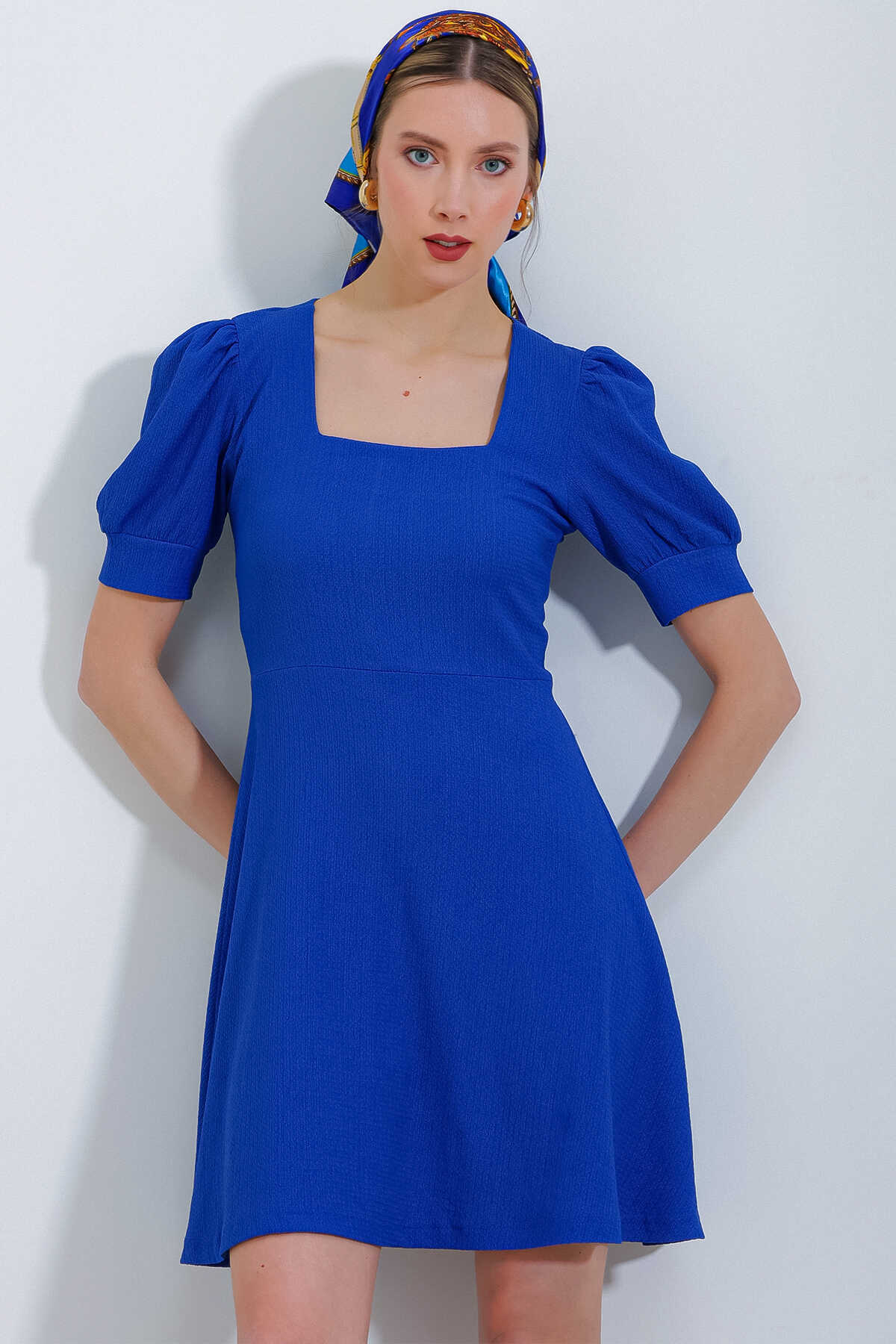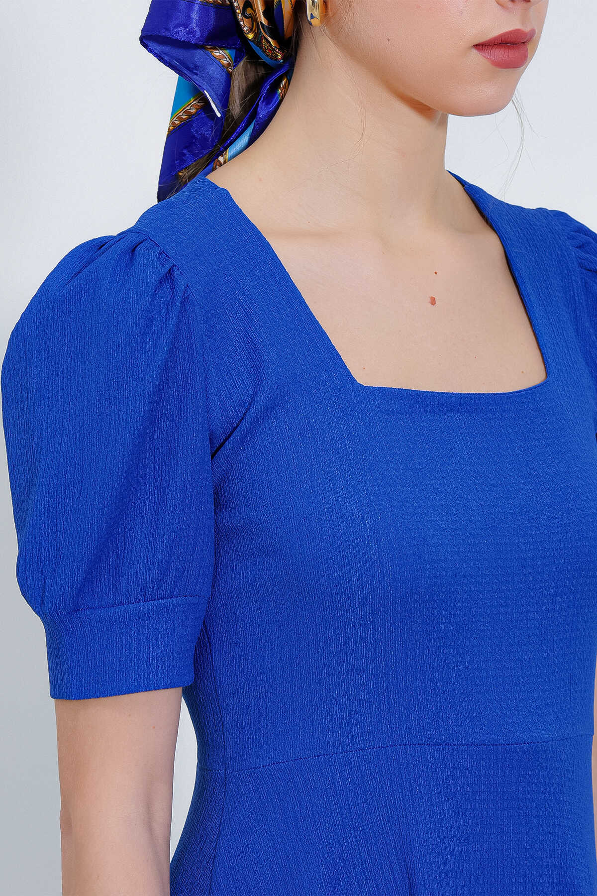 Kare Yaka Örme Elbise, Arkasi Fermuarli Elbise
