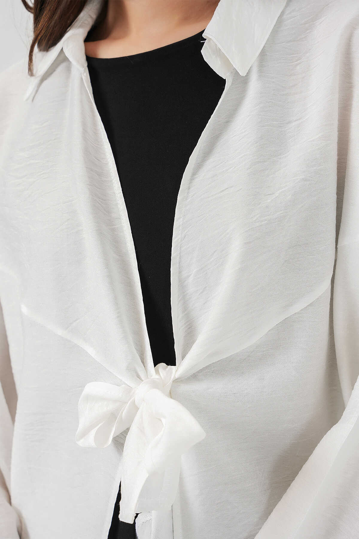 Kadın Salaş Bağcıklı Kimono 5981 - Beyaz - Kombin