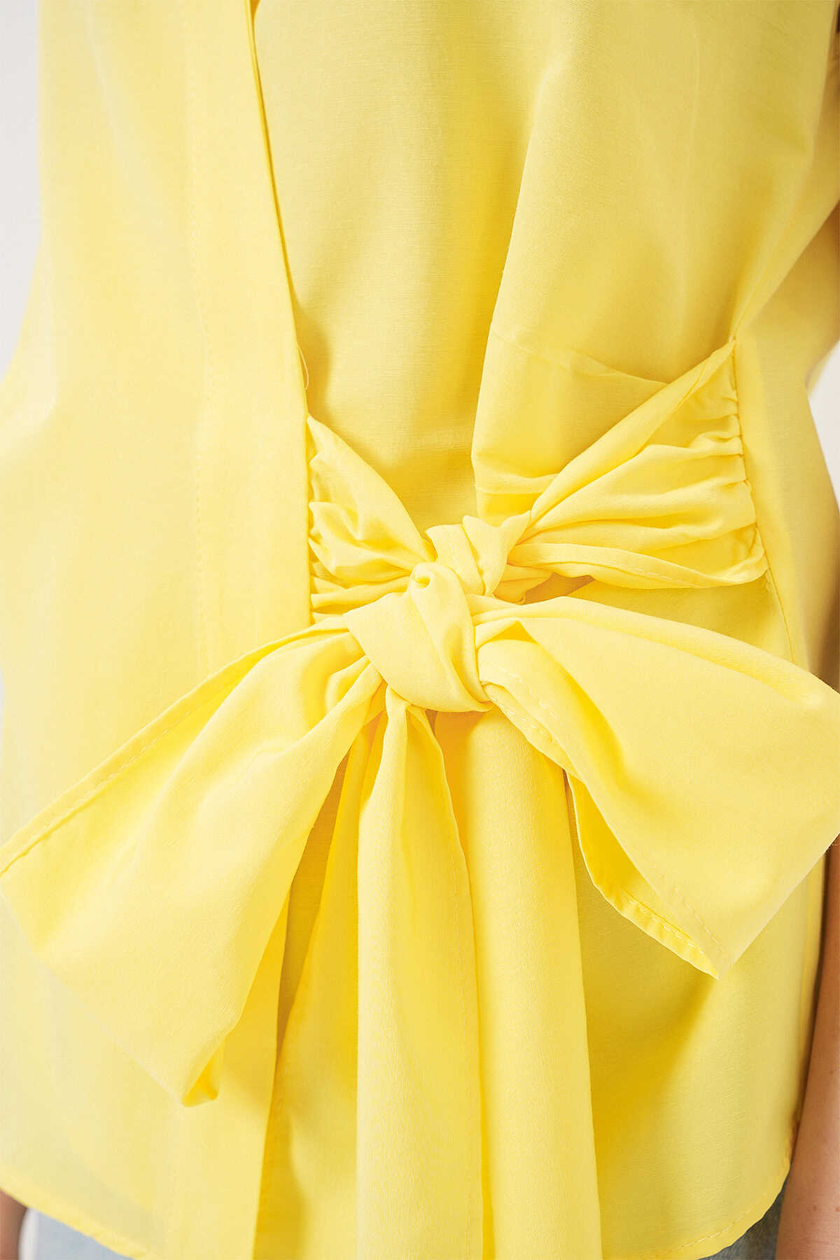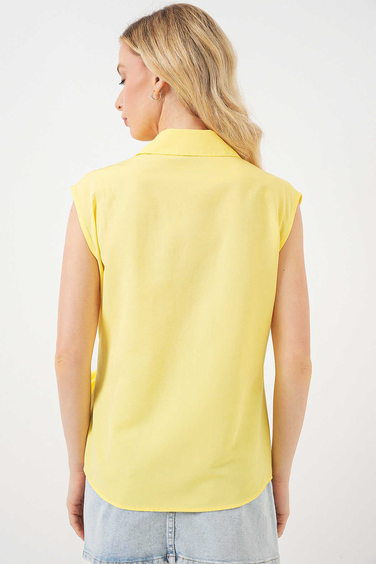 Kadın Sıfır Kol Anvelop Gömlek 20343 - Sarı - Kombin