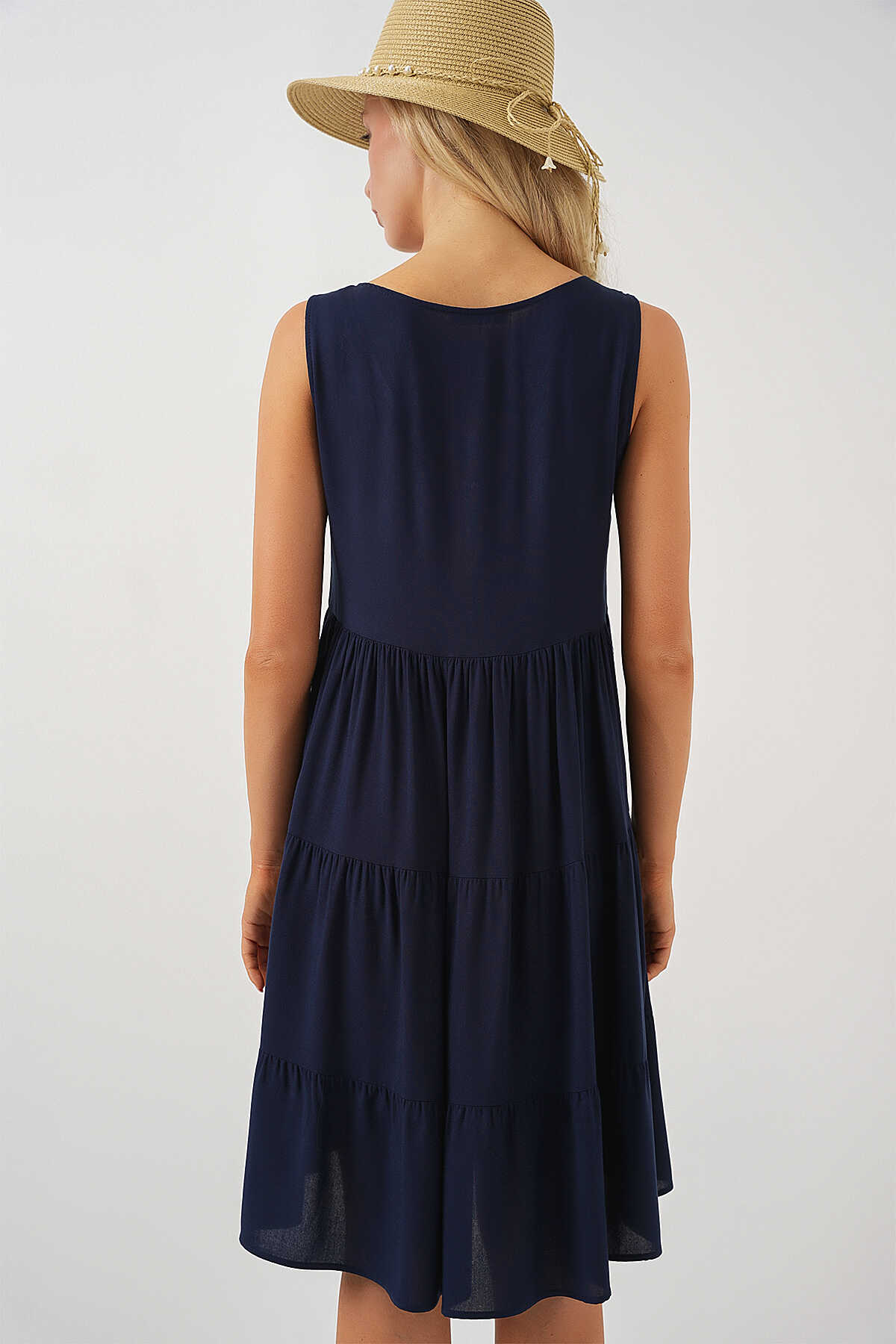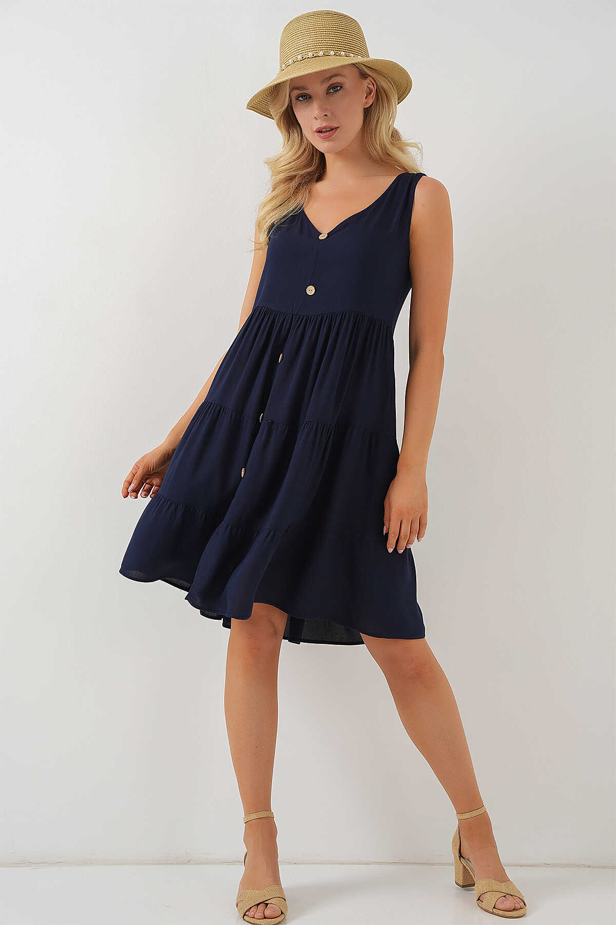 Kadin Sifir Kol Dügmeli Kisa Elbise