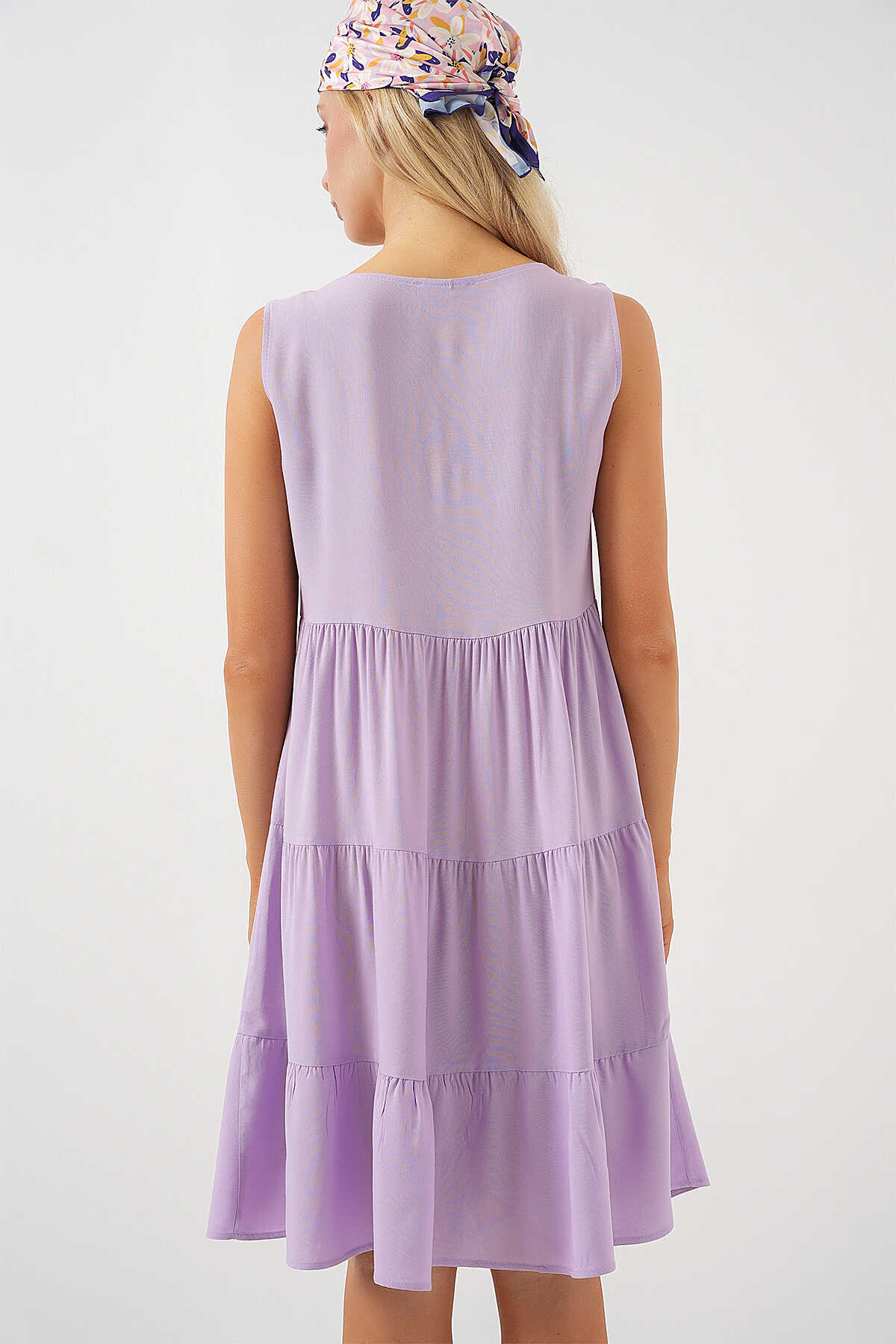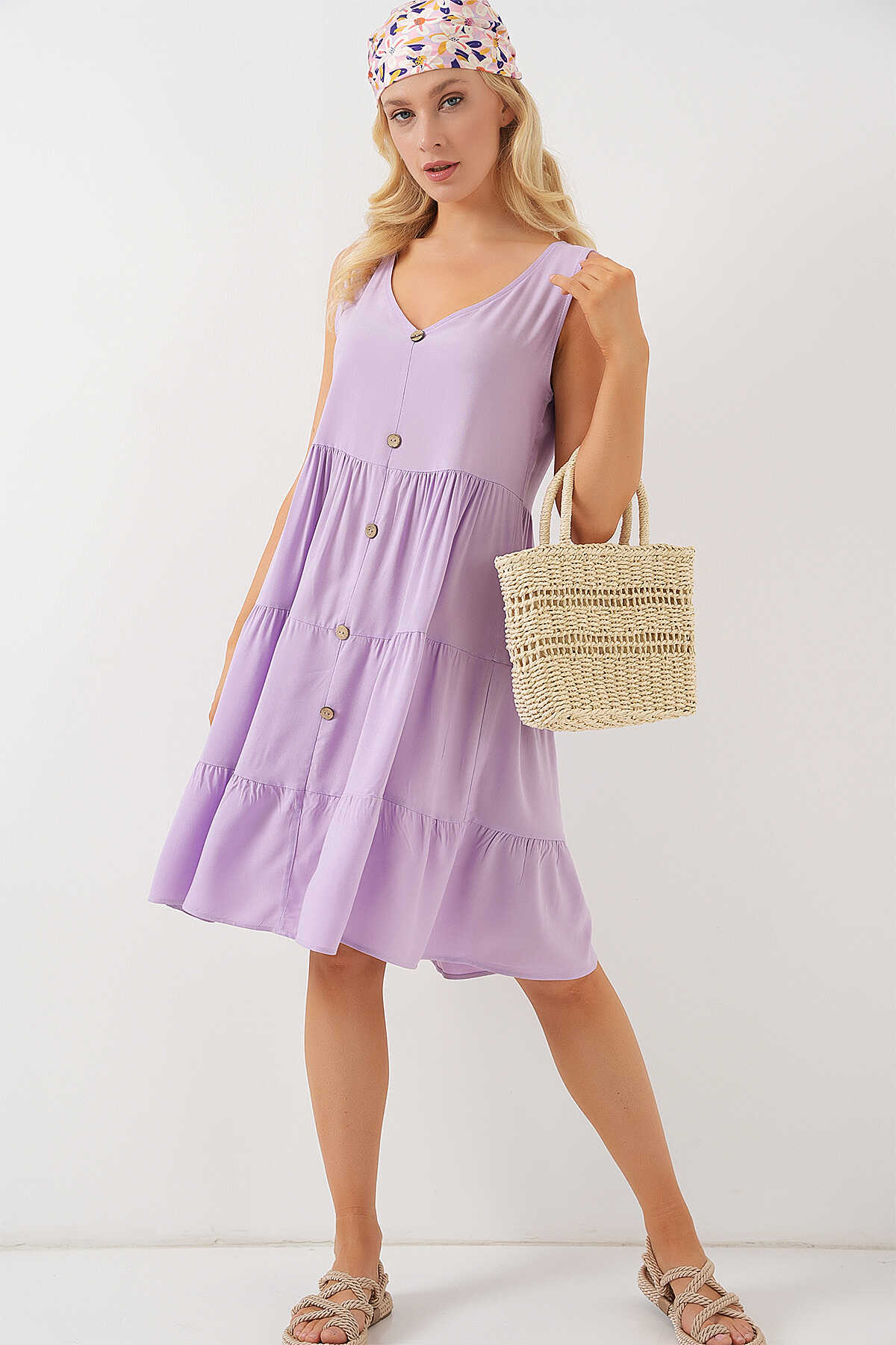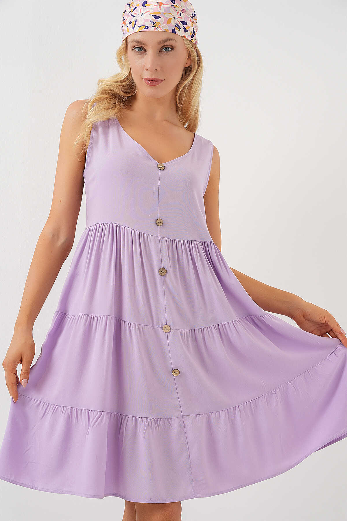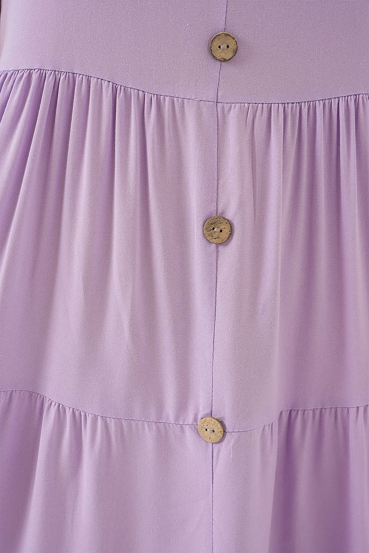 Kadın Sıfır Kol Düğmeli Kısa Elbise 2571 - Lila - Kombin