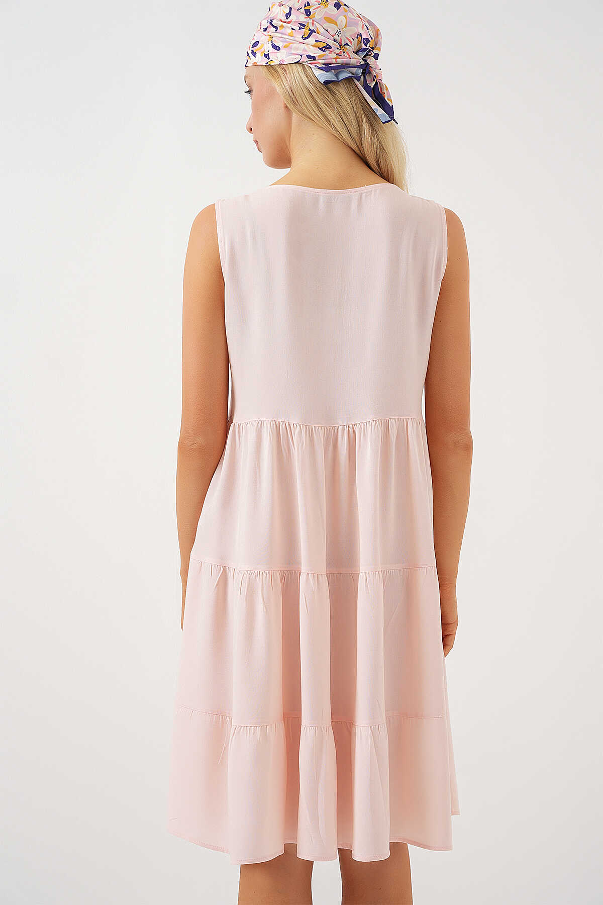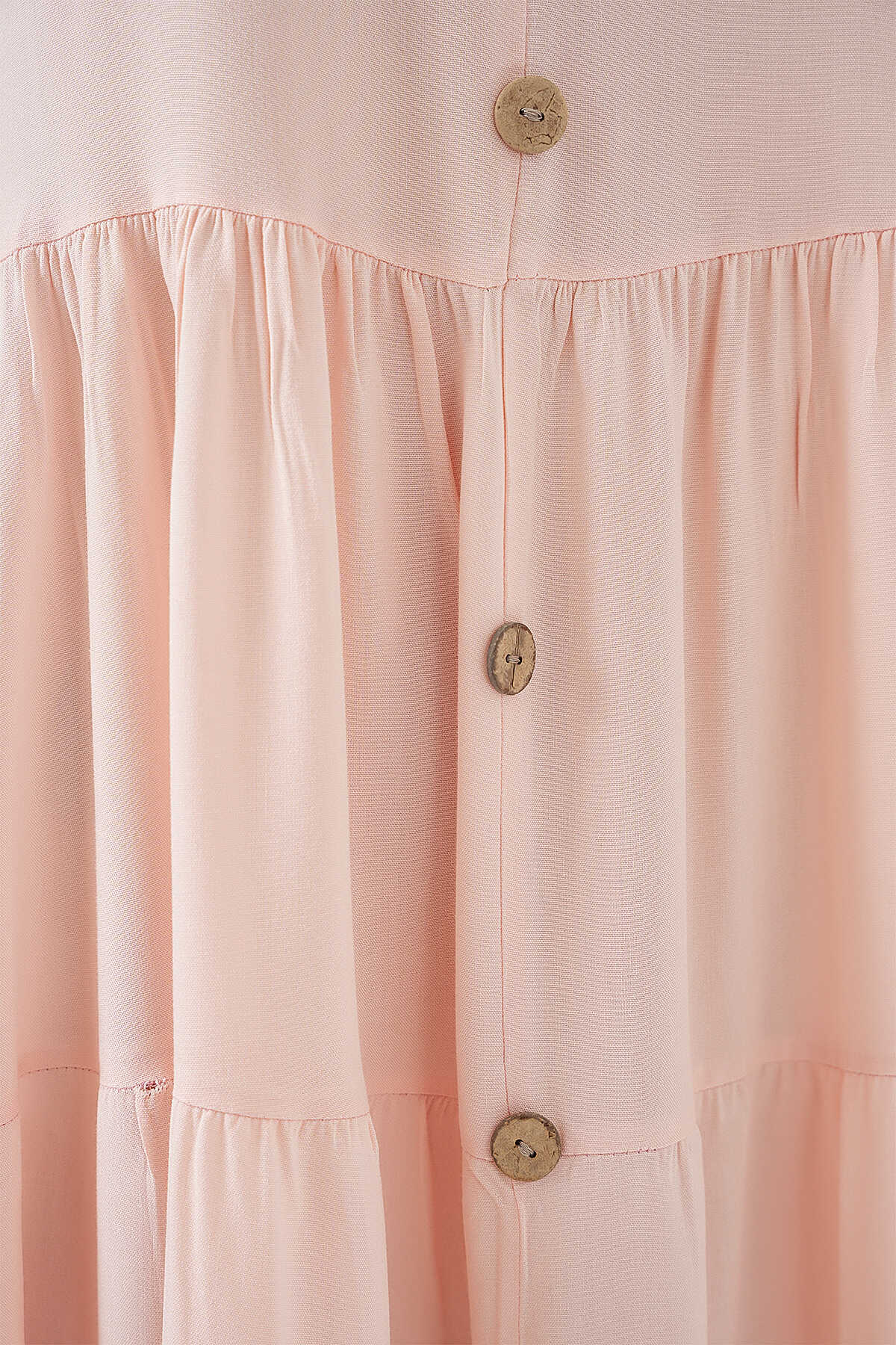 Kadın Sıfır Kol Düğmeli Kısa Elbise 2571 - Pudra - Kombin