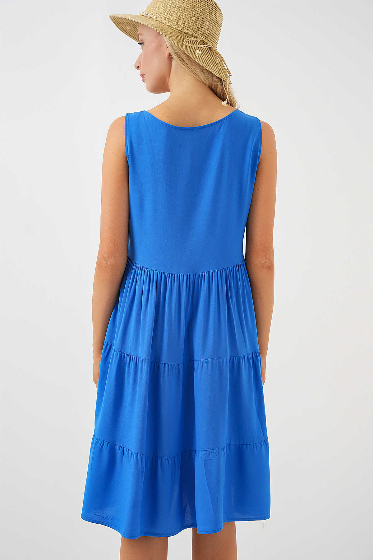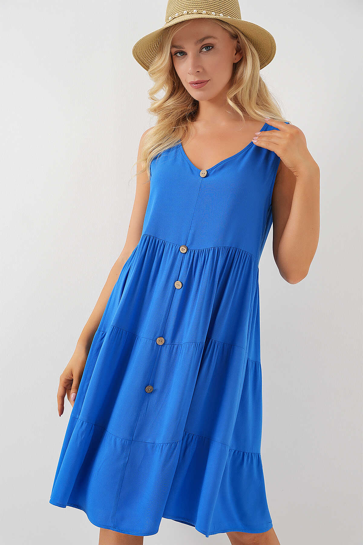 Kadin Sifir Kol Dügmeli Kisa Elbise