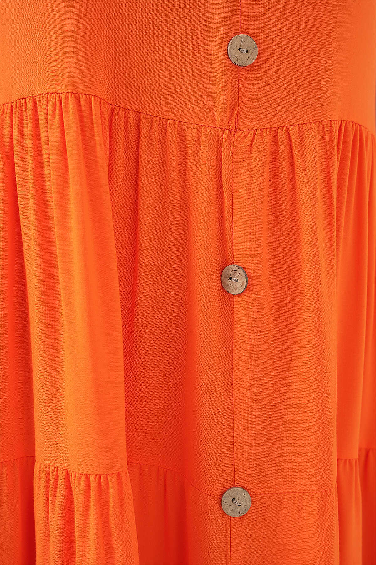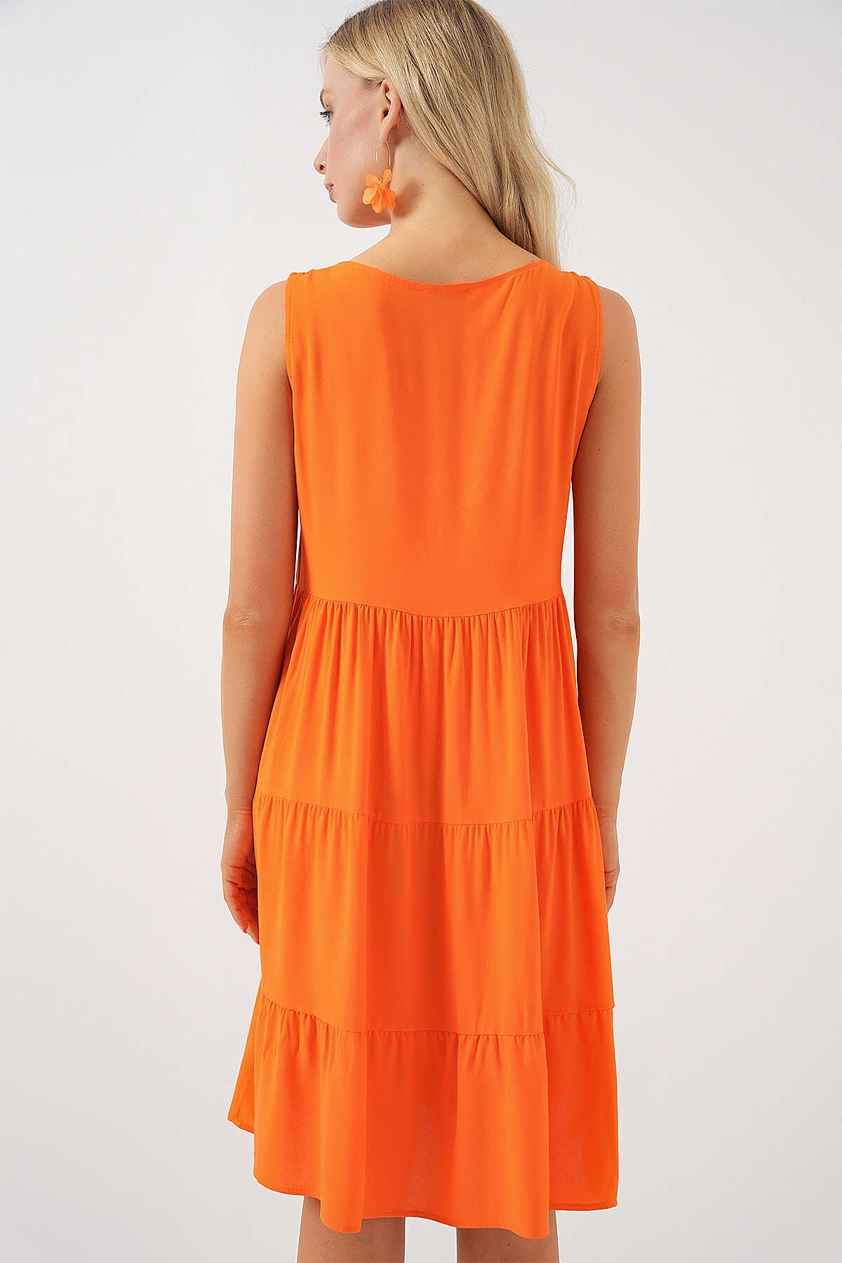 Kadın Sıfır Kol Düğmeli Kısa Elbise 2571 - Turuncu - Kombin