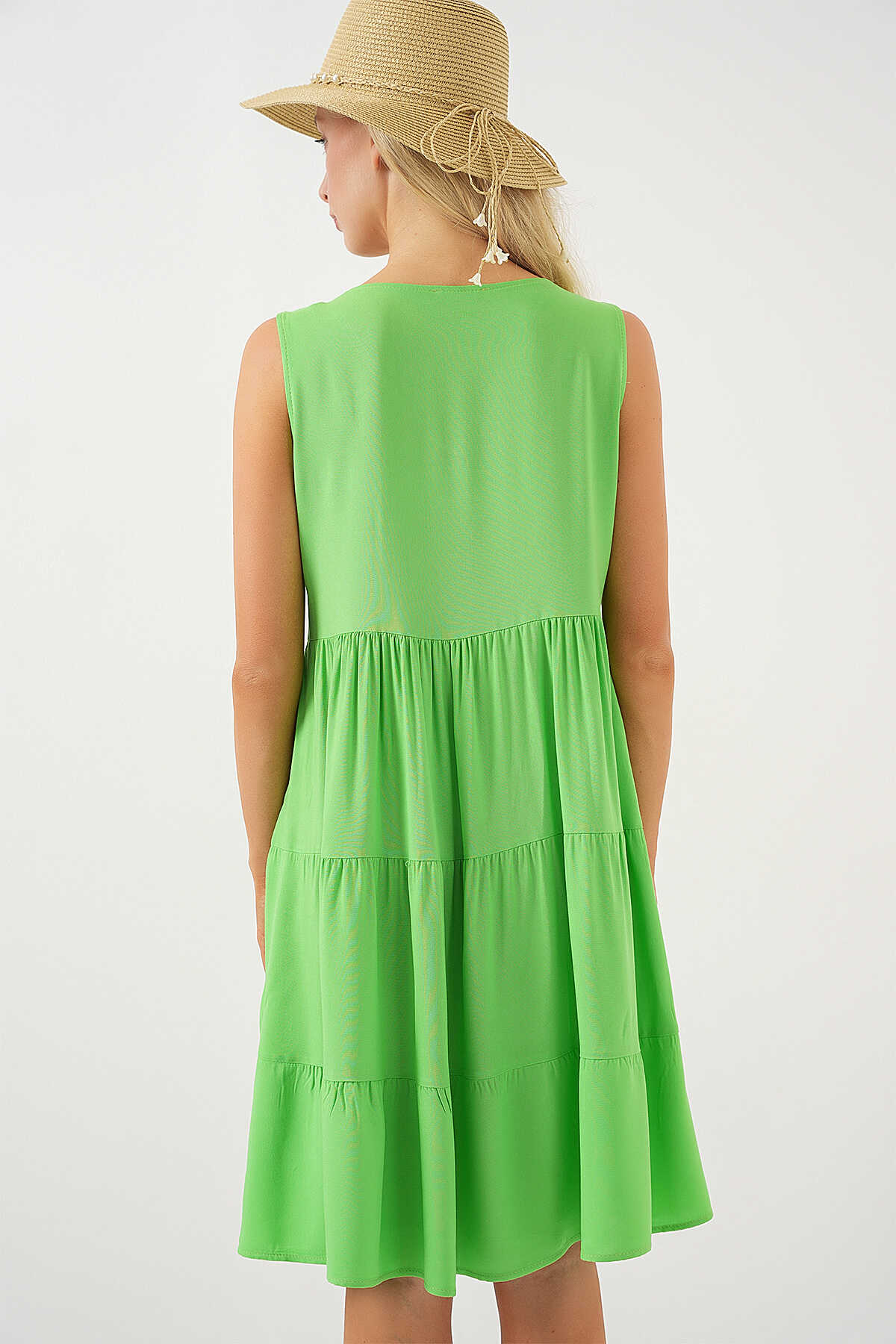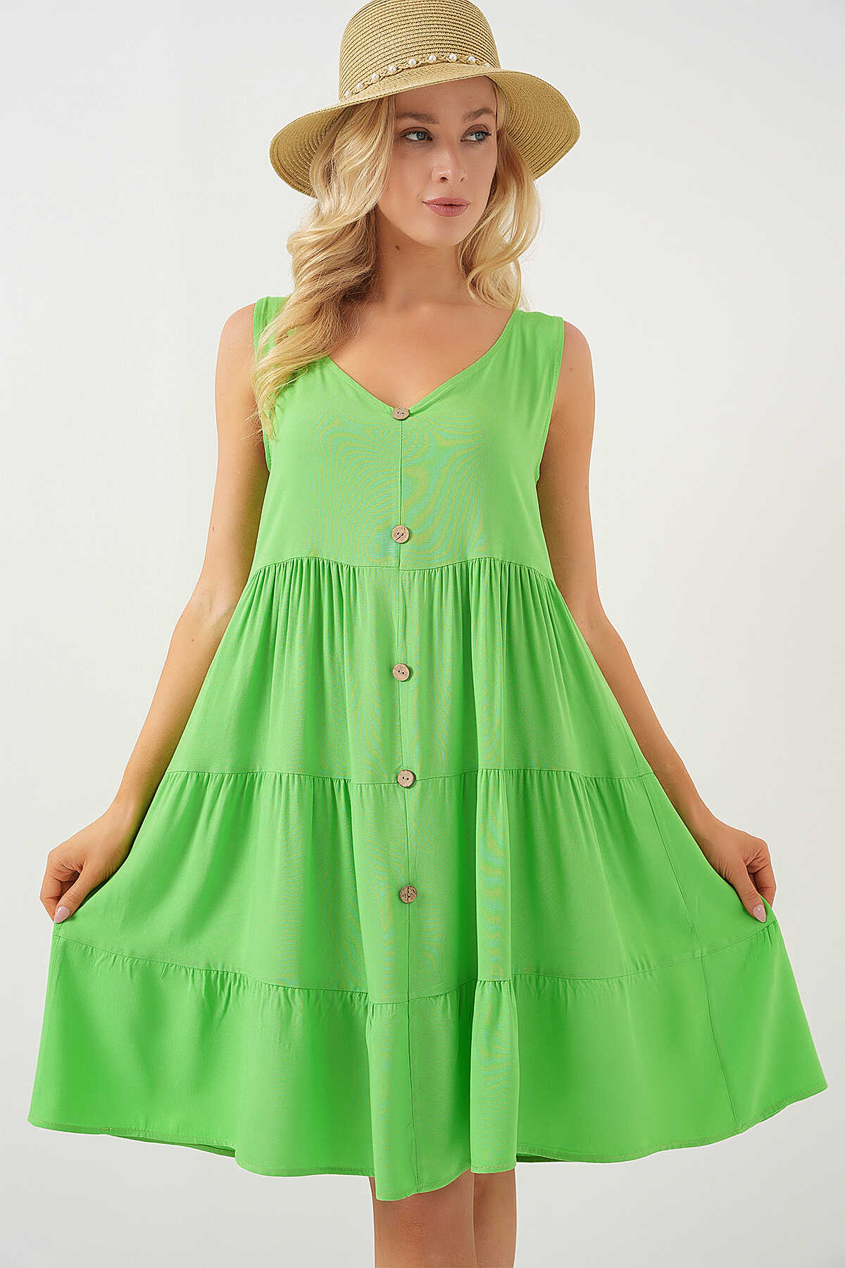 Kadin Sifir Kol Dügmeli Kisa Elbise