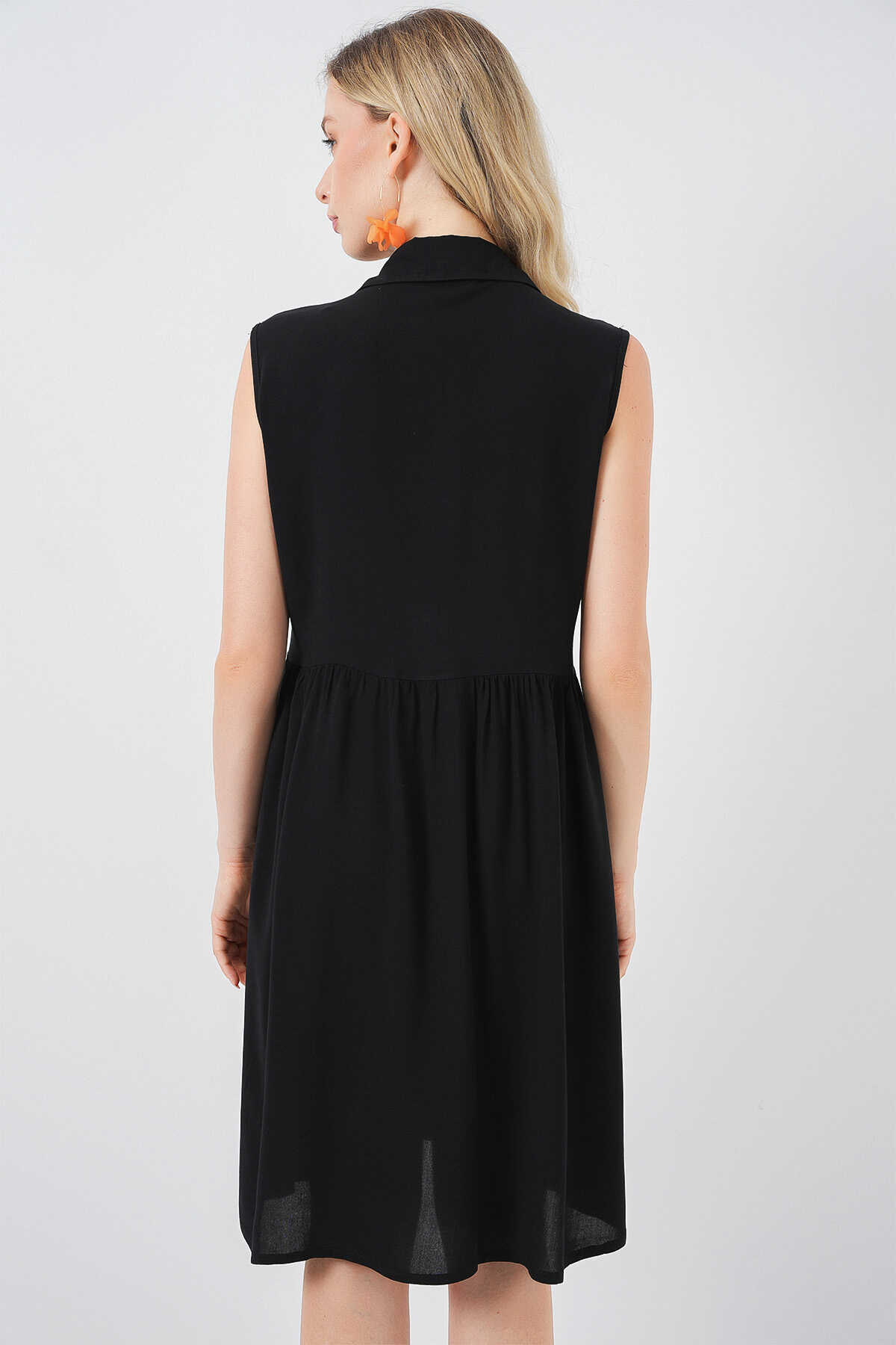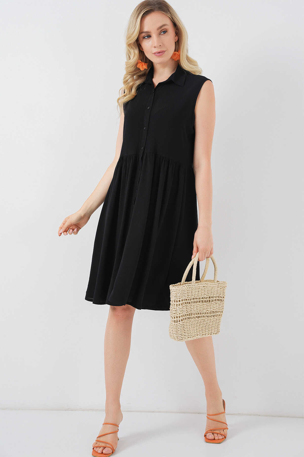 Kadın Sıfır Kol Midi Elbise 2563 - Siyah - Kombin