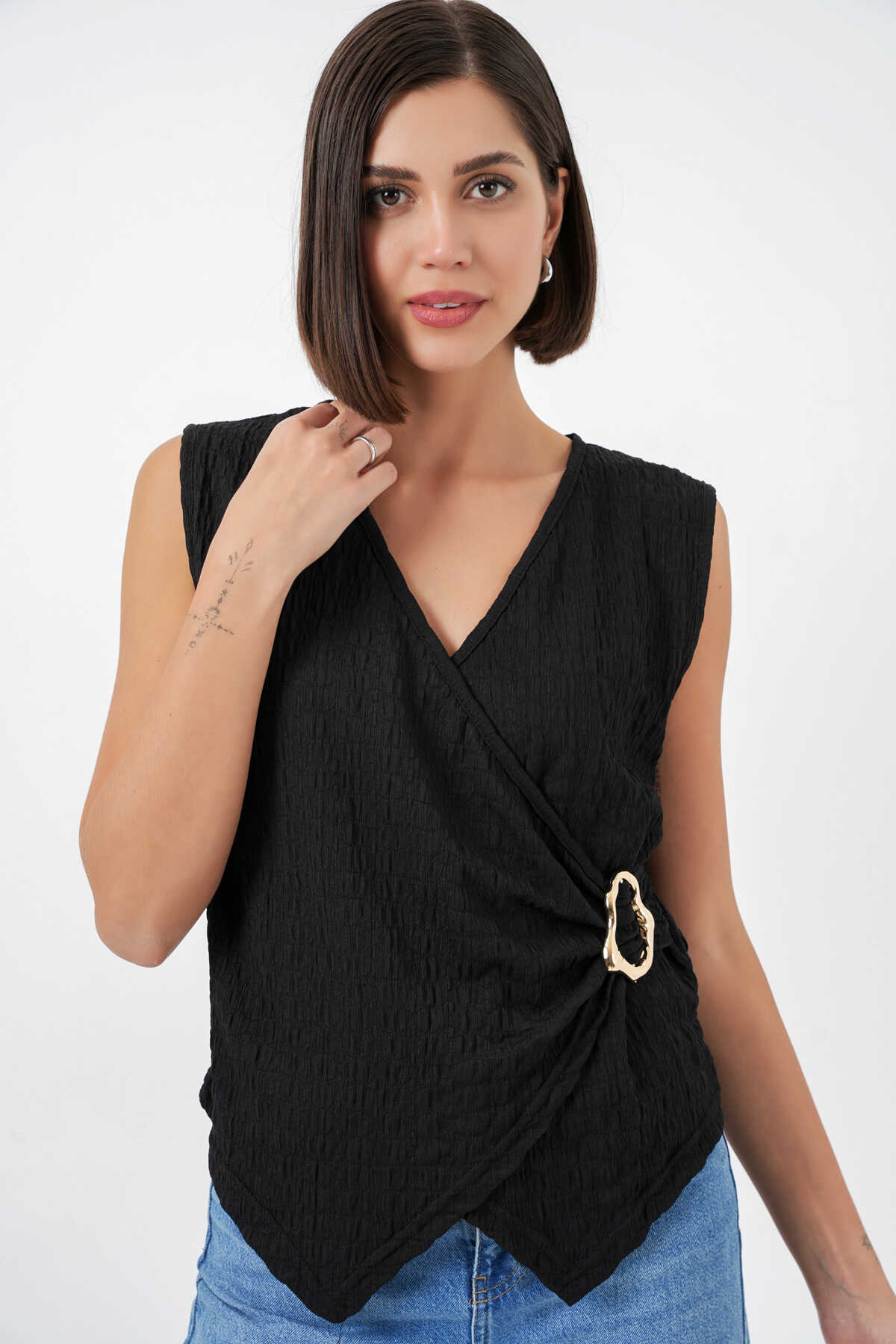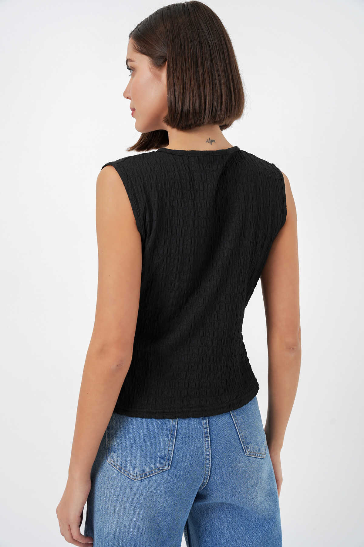 Kadın Sıfır Kol Örme Bluz 988 - Siyah - Kombin