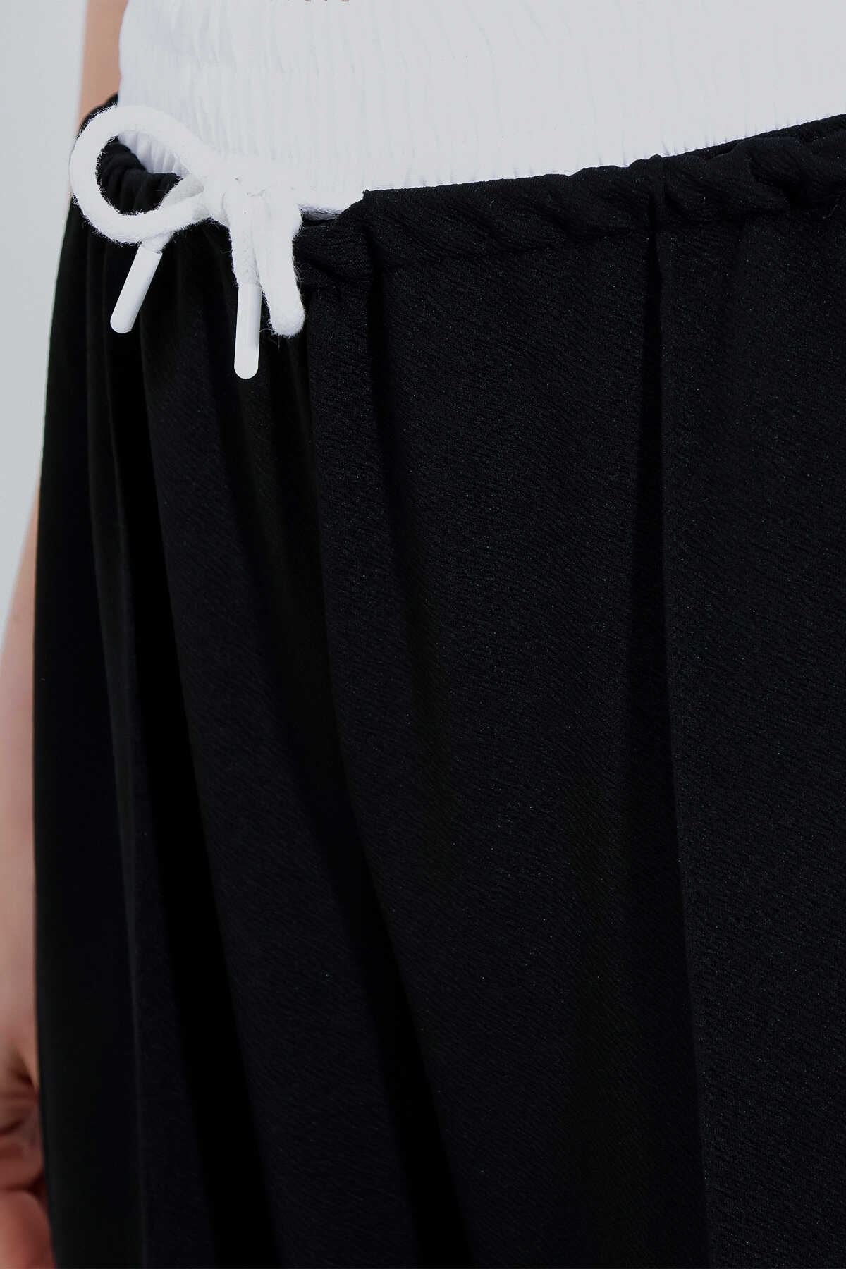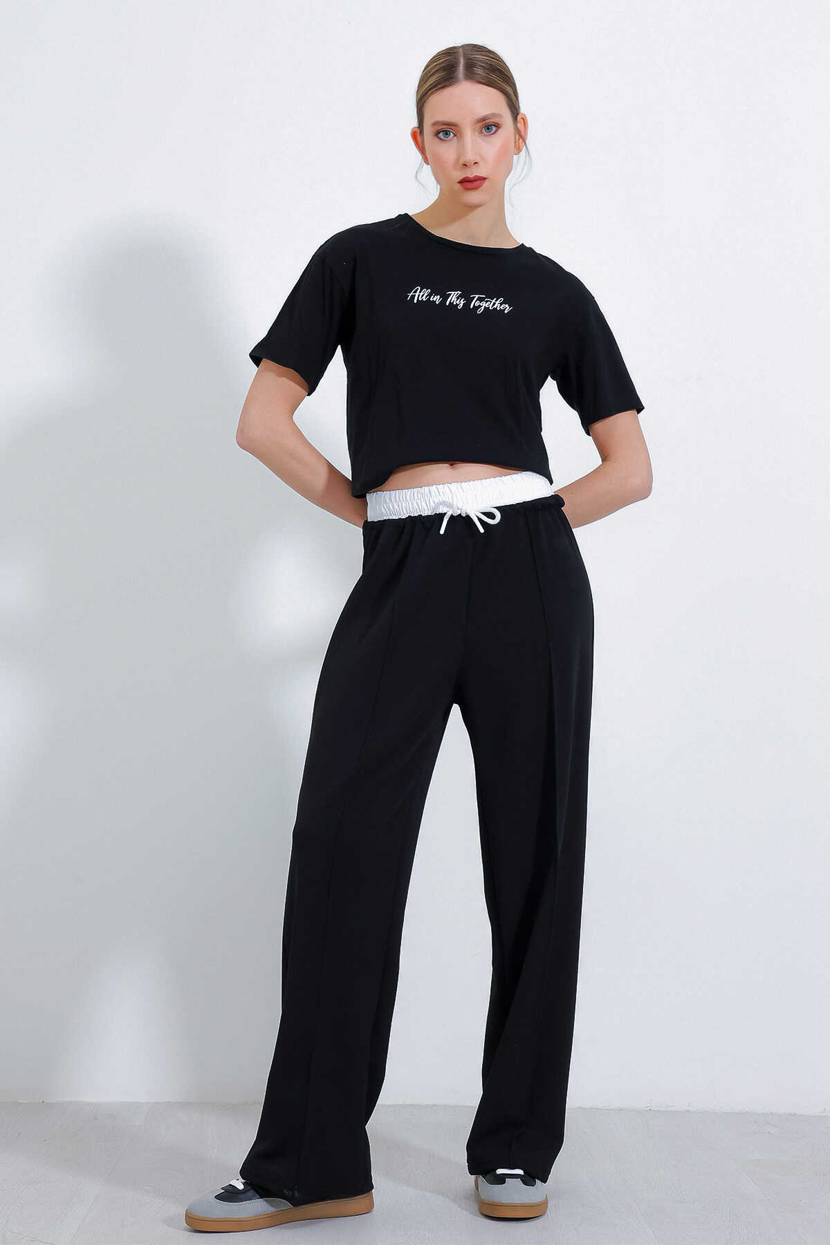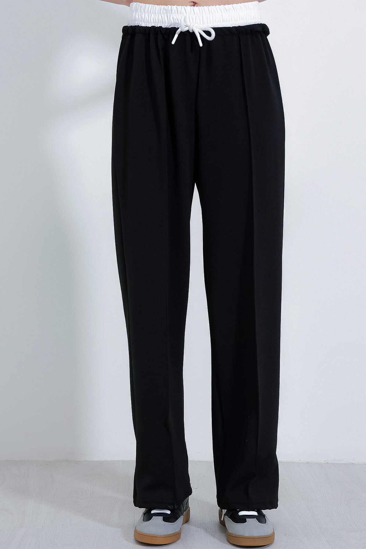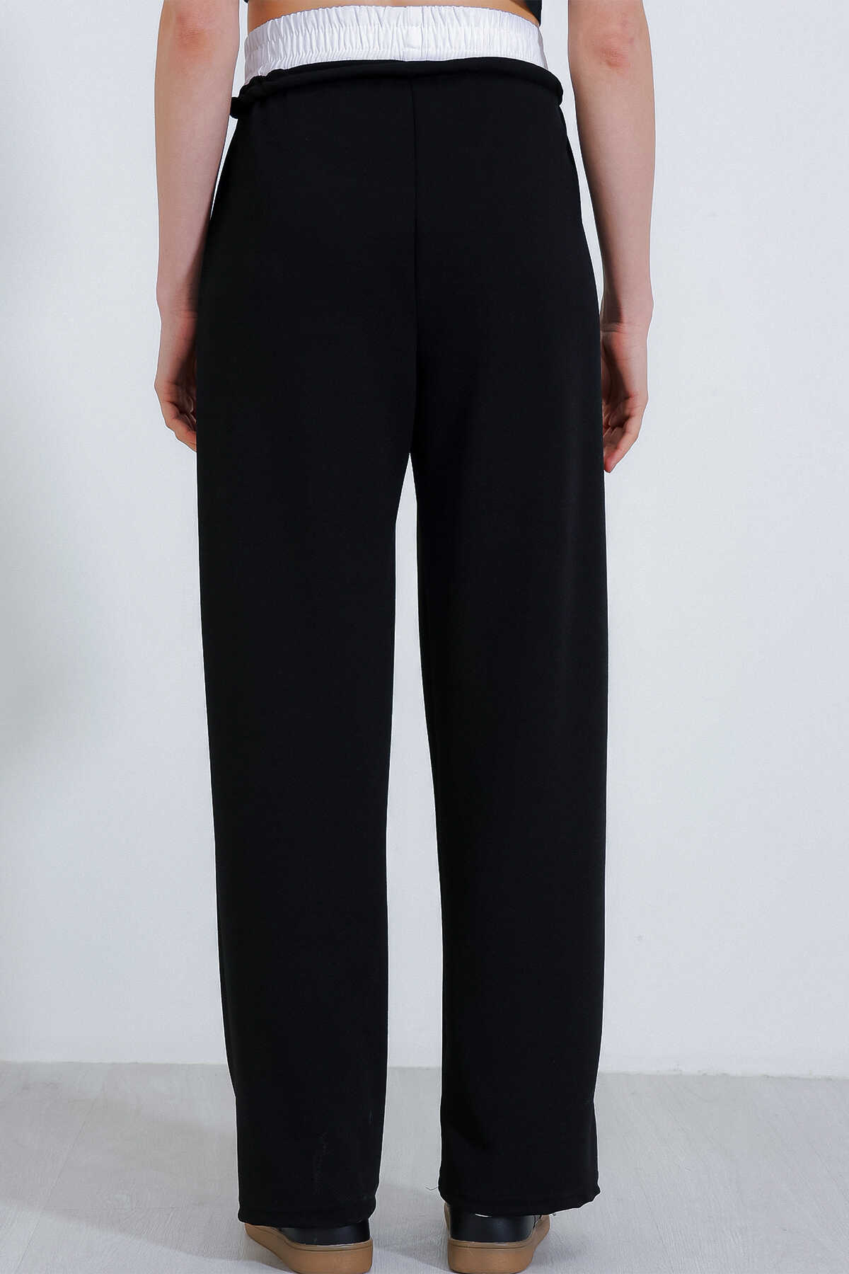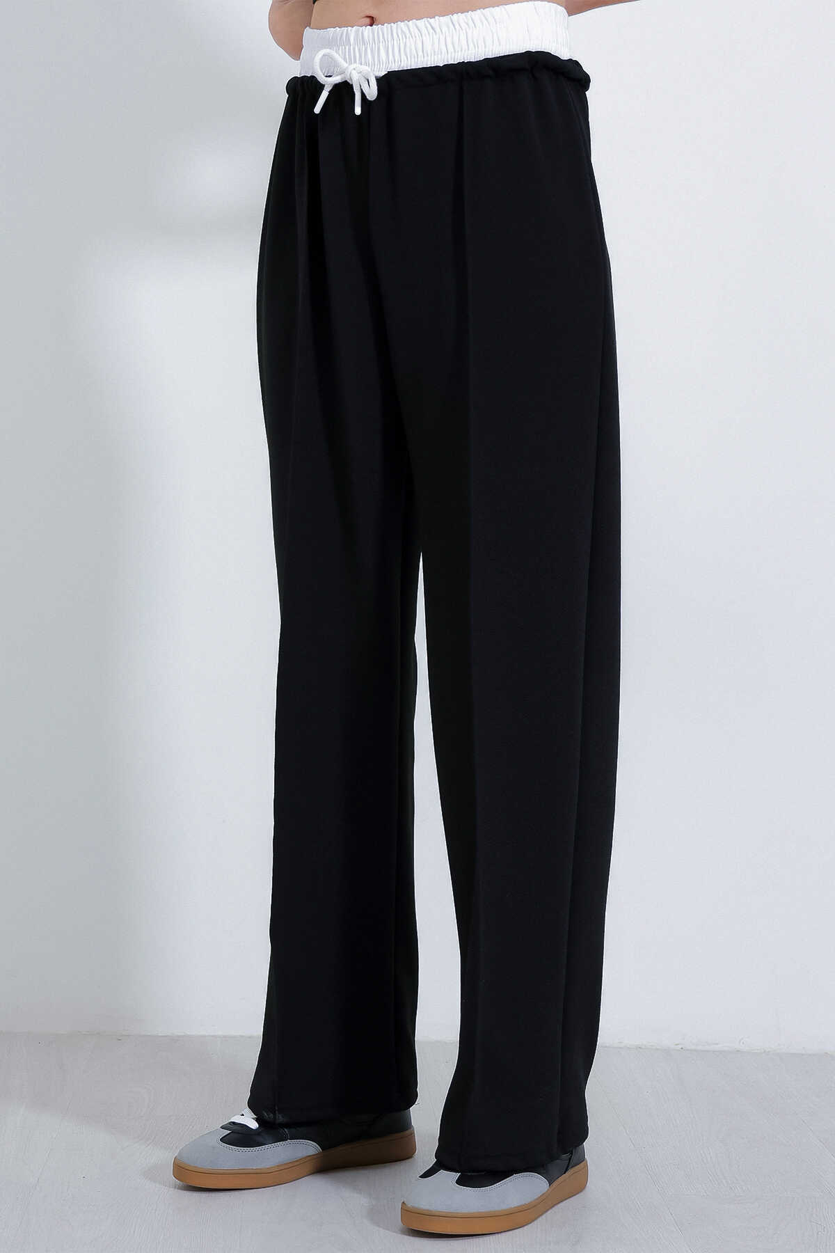 Kadın Siyah Bol Paça Çımalı Pantolon 6662 - Kombin