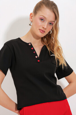 Dügme Detayli Kisa Kol Tisört