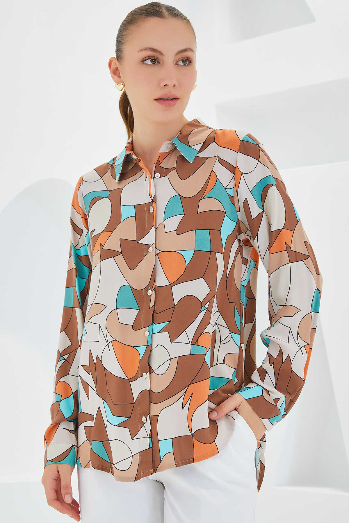 Kadin Grafik Desenli Gömlek 3721