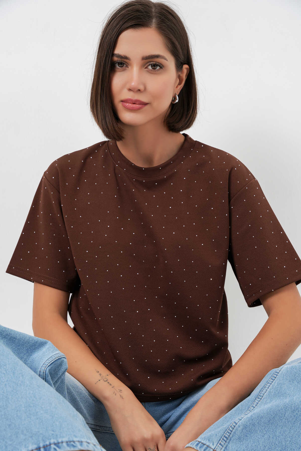 Kadin Tas Detayli Tisört 990