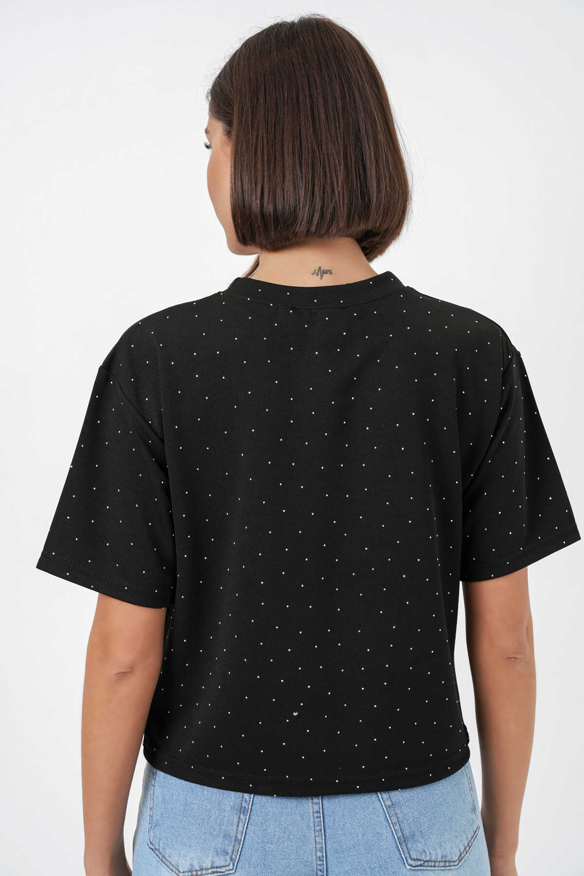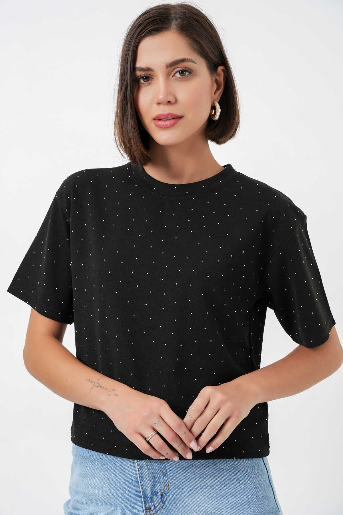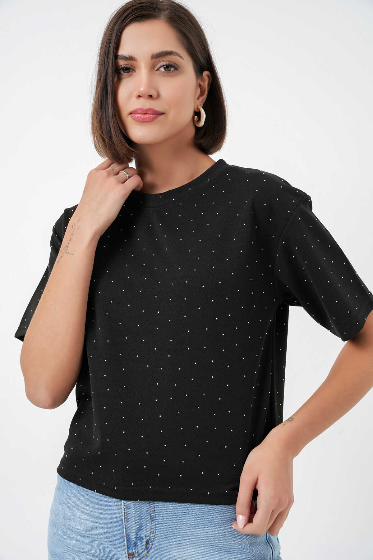 Kadın Taş Detaylı Tişört 990 - Siyah