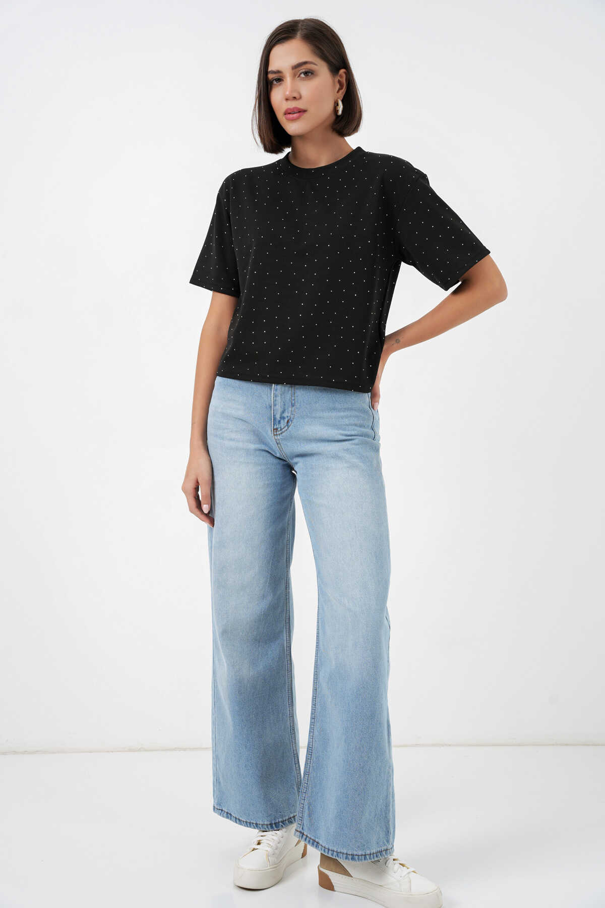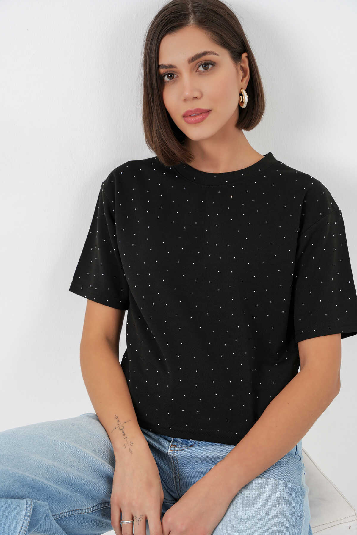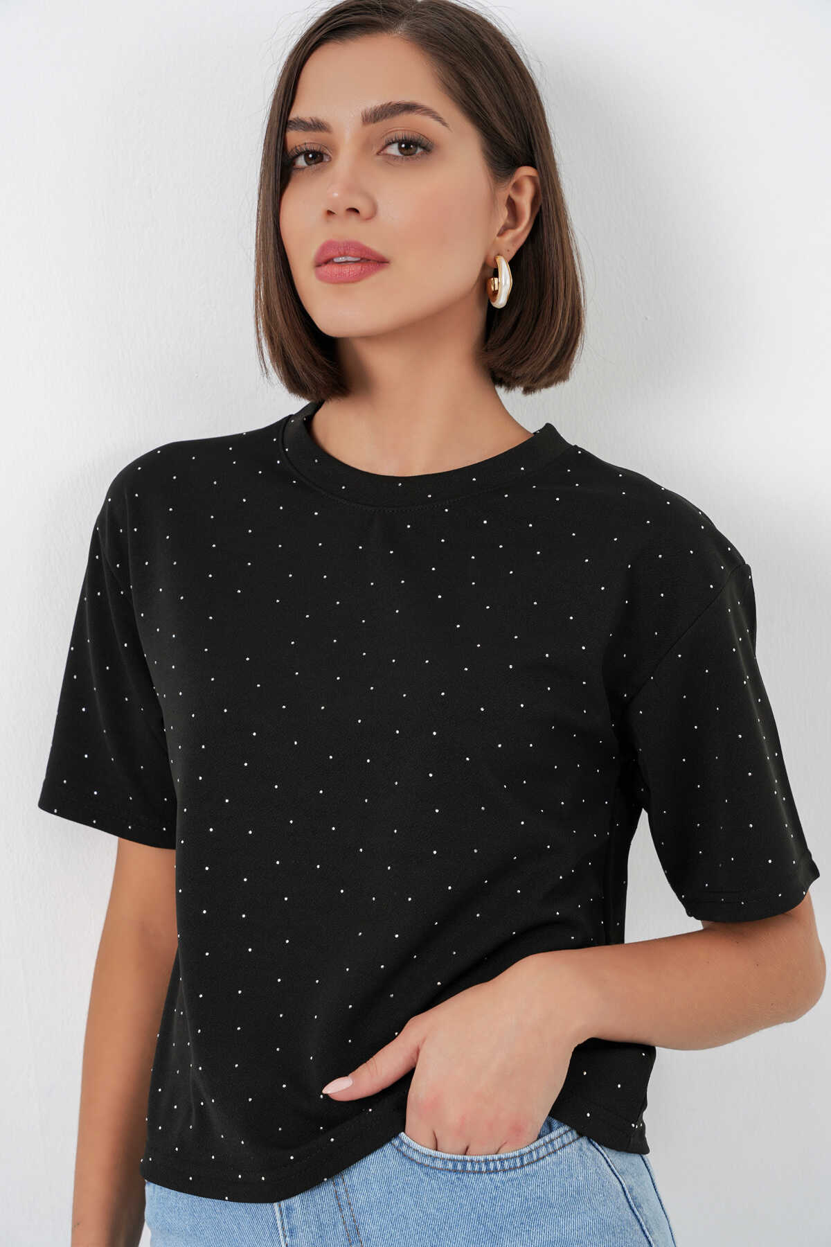 Kadın Taş Detaylı Tişört 990 - Siyah - Kombin