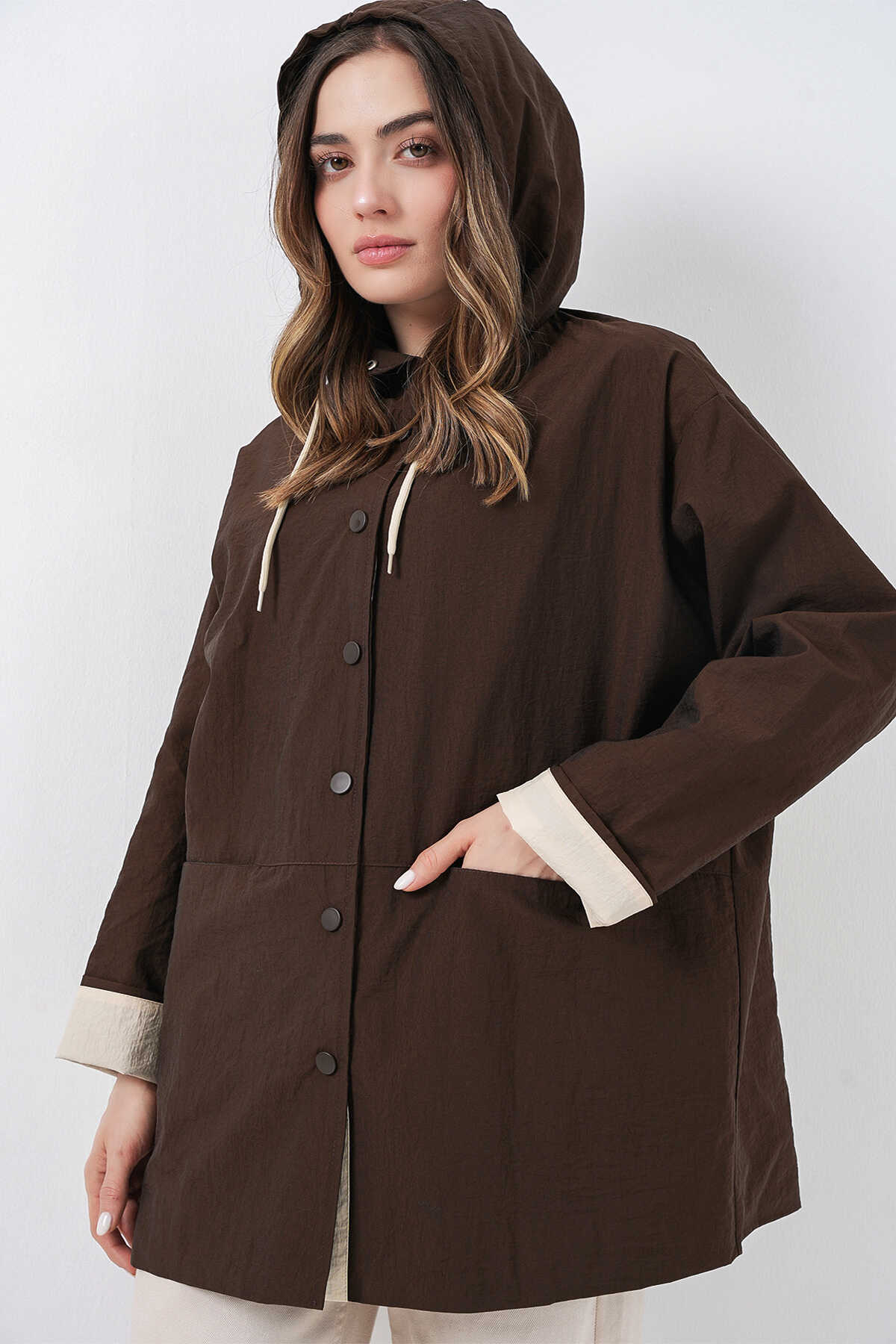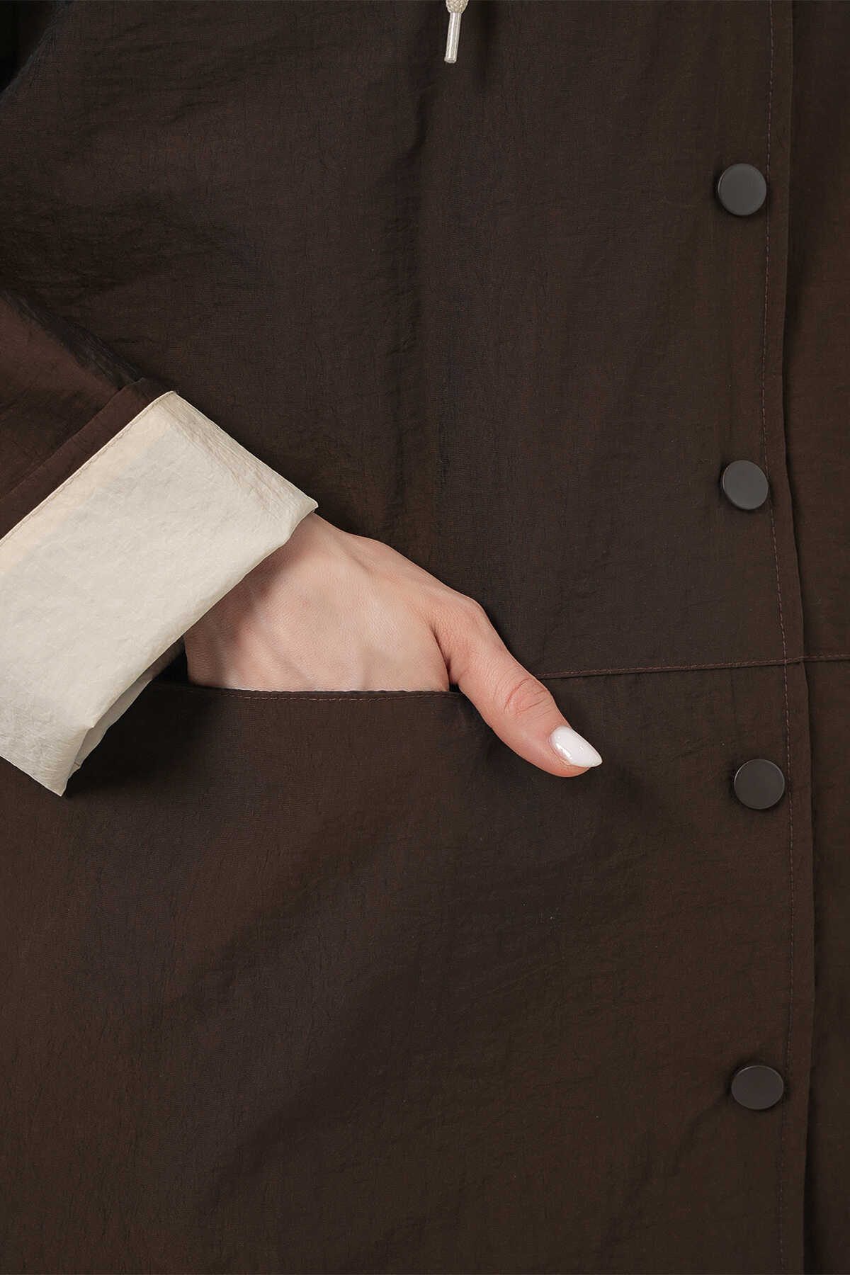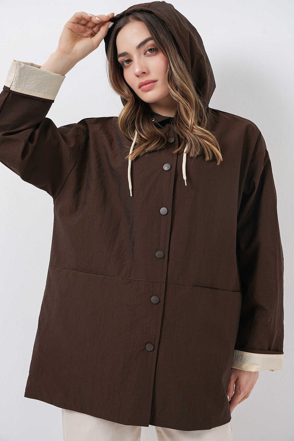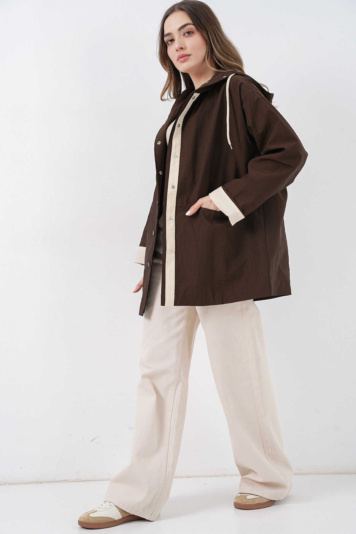 Kadin Teknik Kumas Parasüt Kumas Kapüsonlu Trençkot
