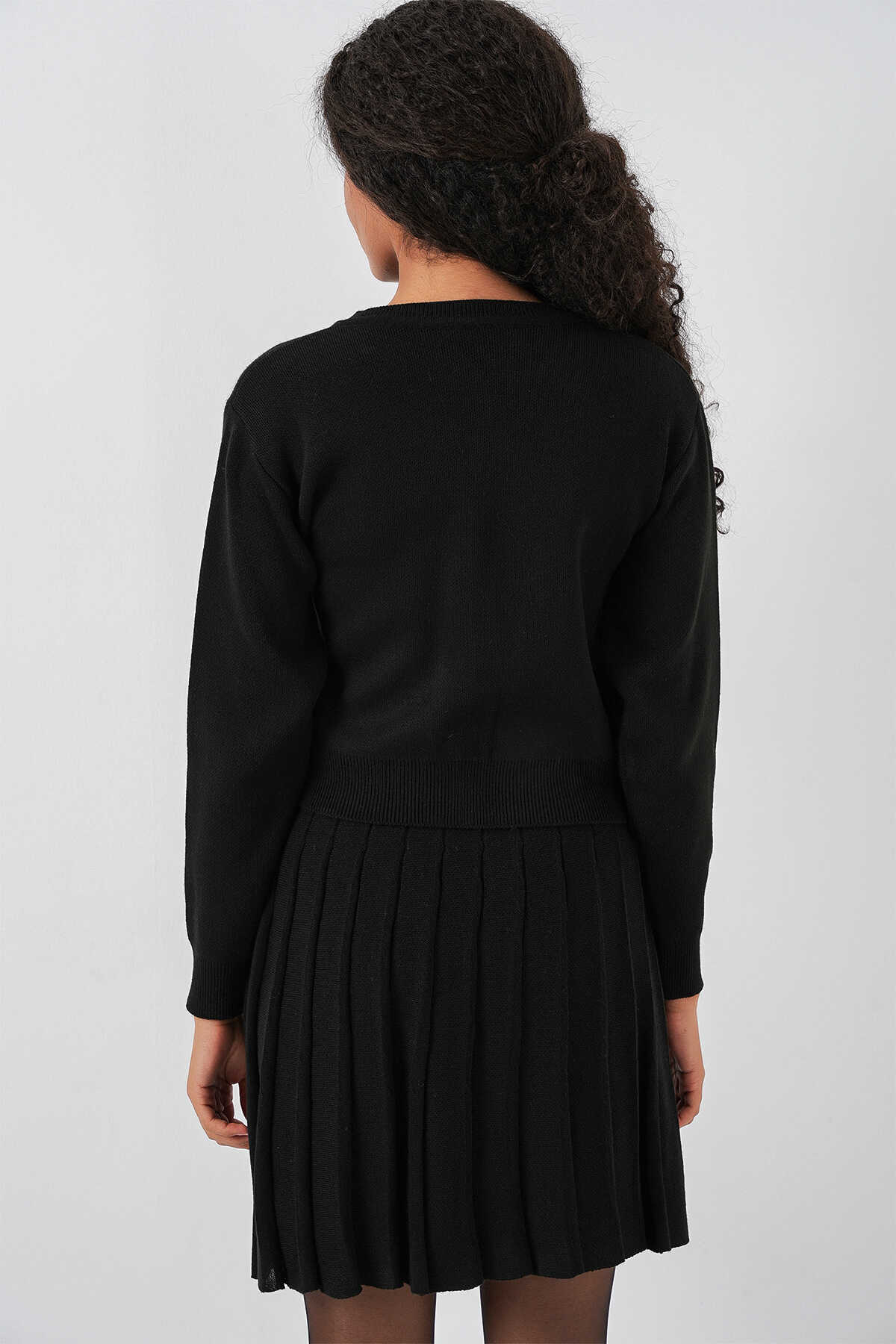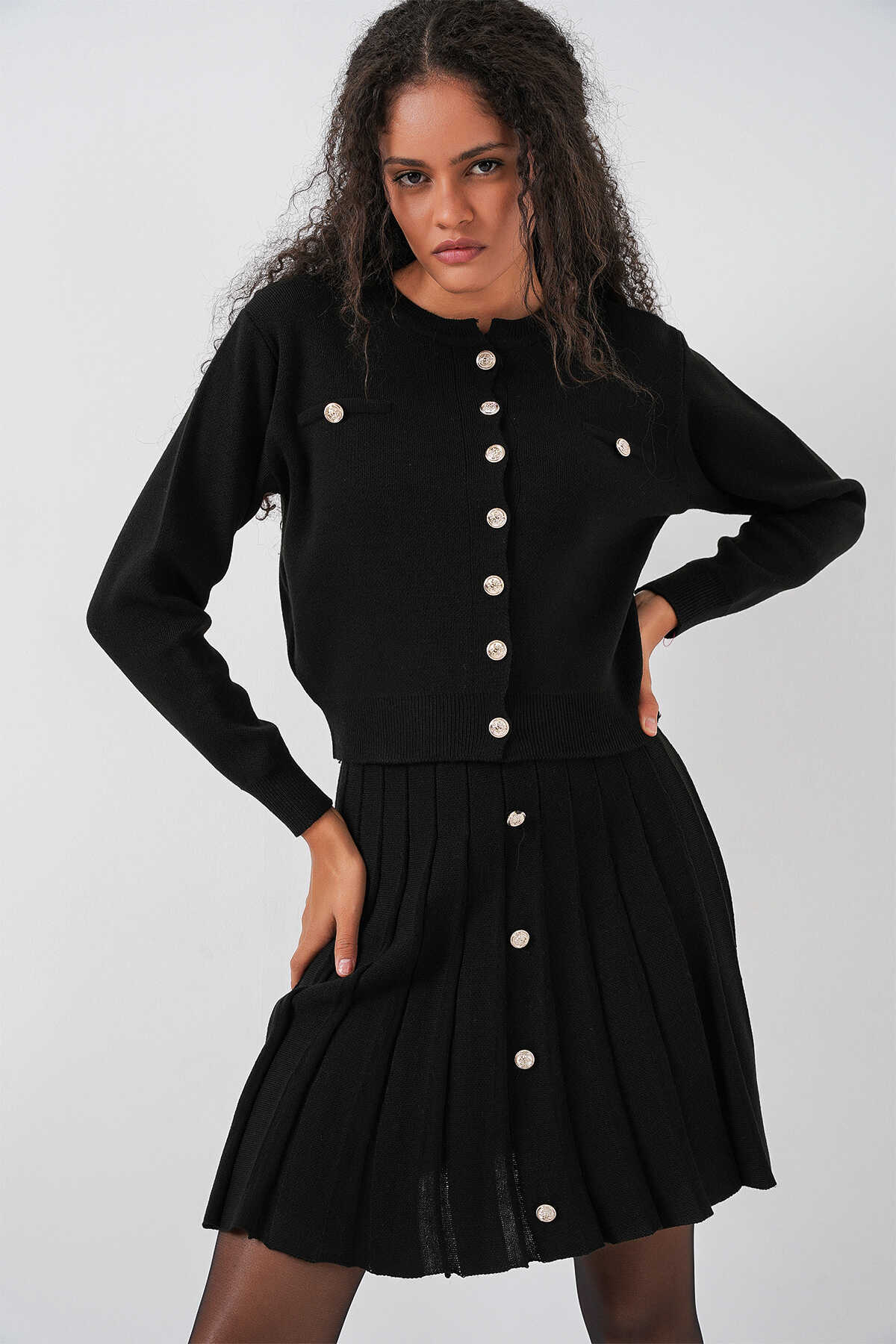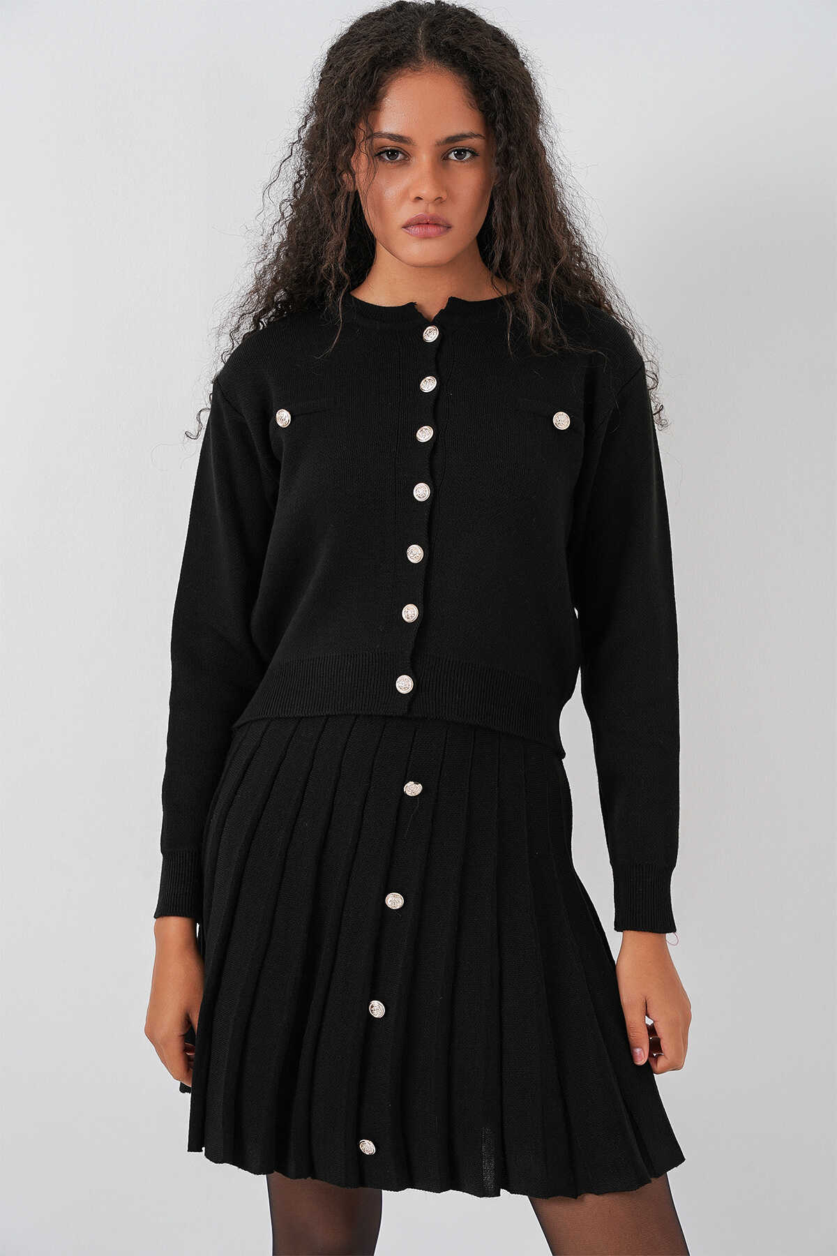 Kadın Triko Hırka Etek İkili Takım 15942 - Siyah - Kombin