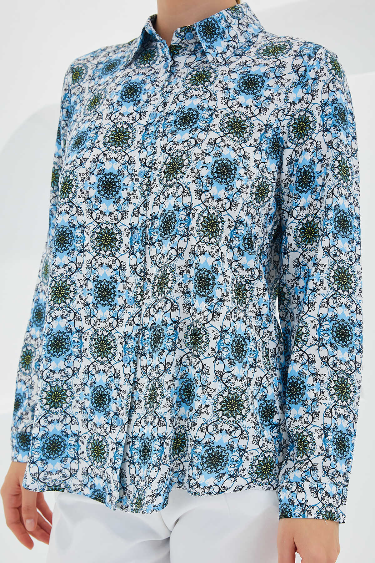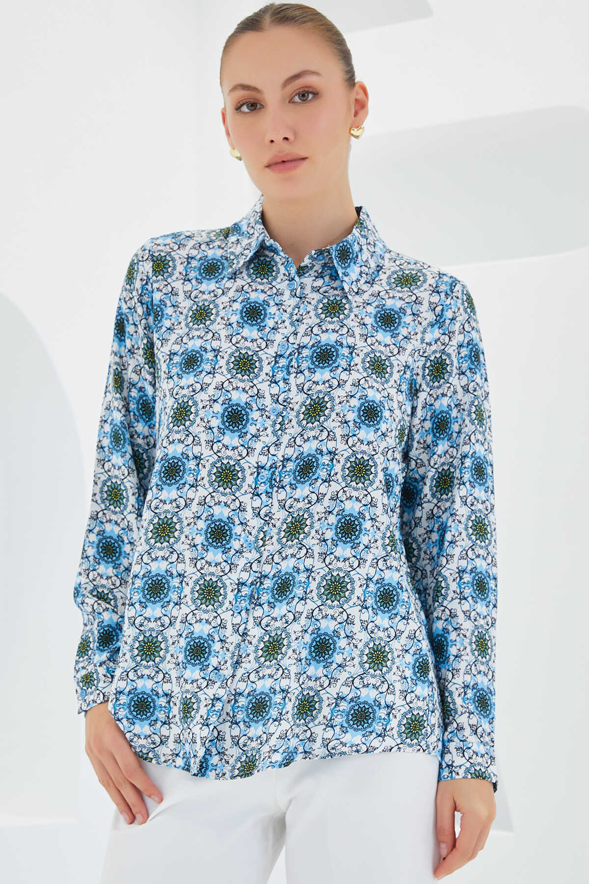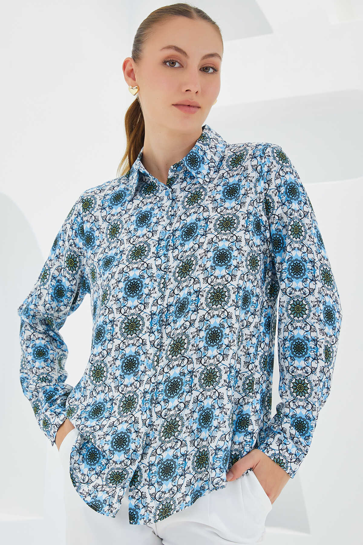 3721 Grafik Desenli Gömlek - Turkuaz - Kombin