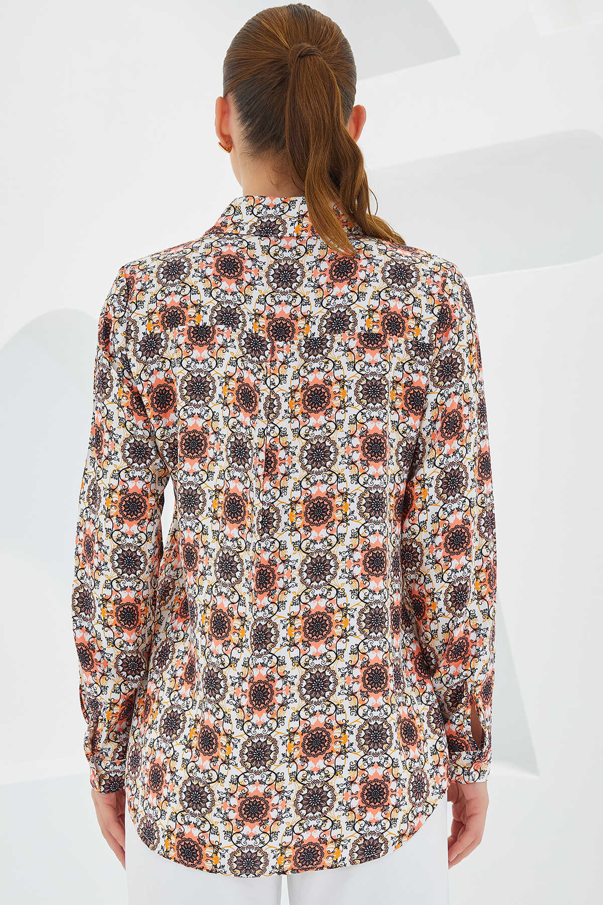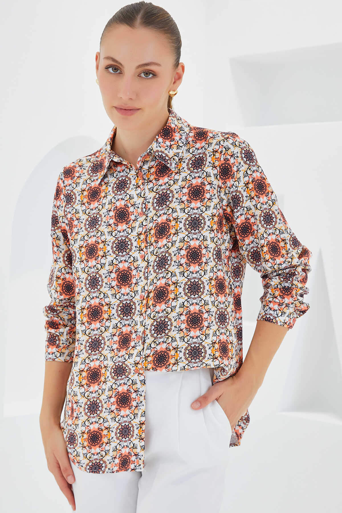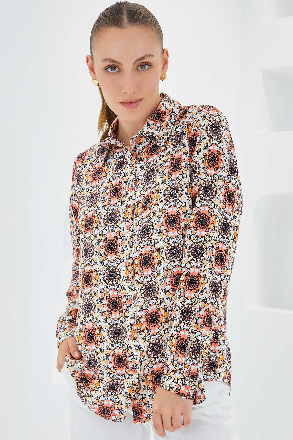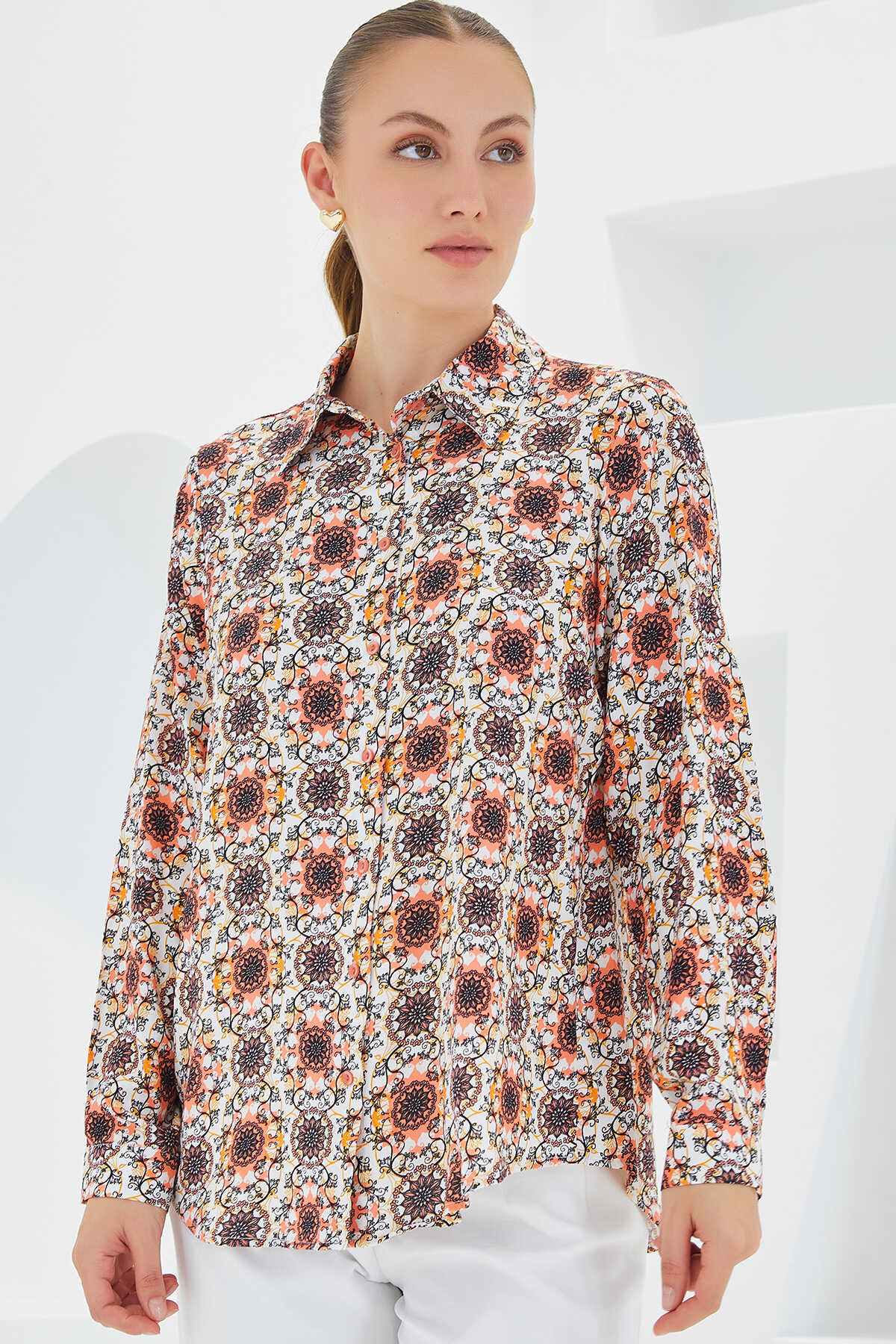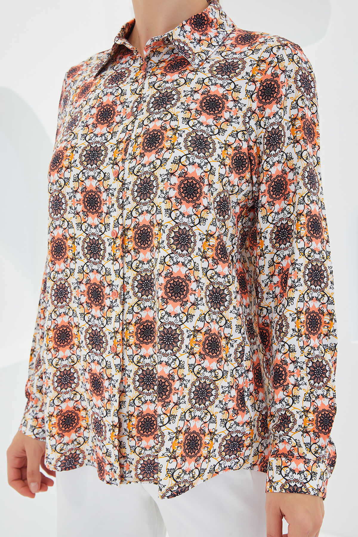3721 Grafik Desenli Gömlek - Turuncu