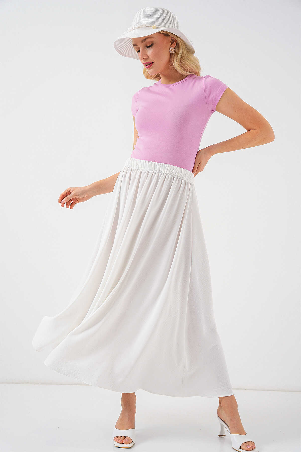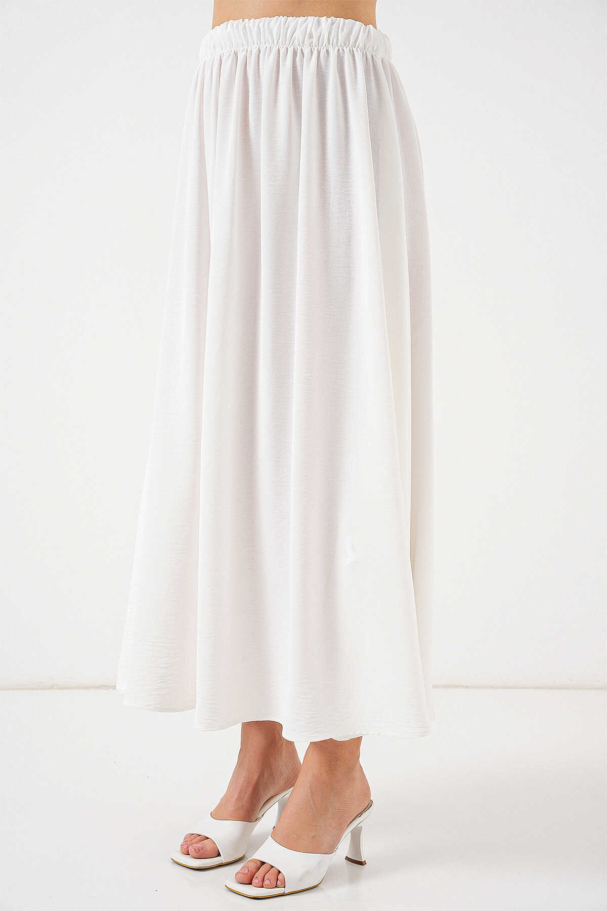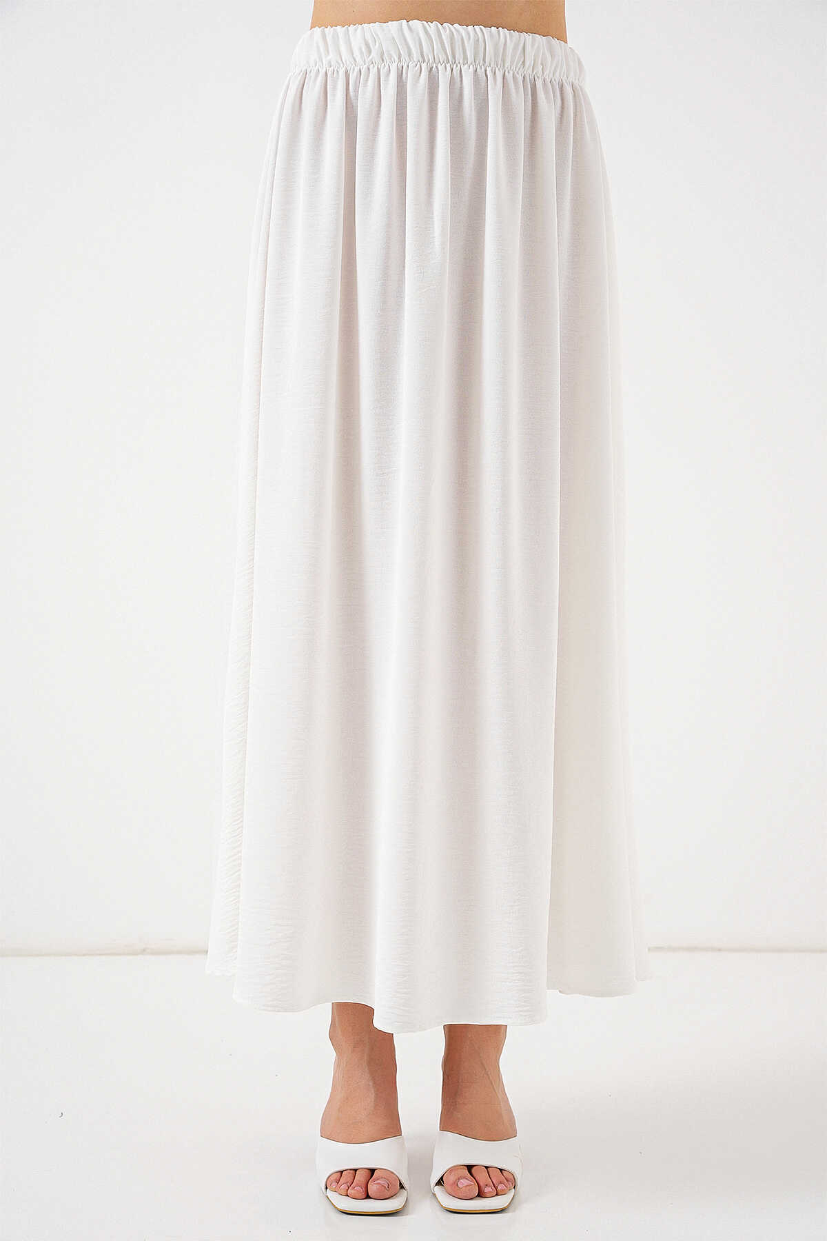 Kadın Uzun Ayrobin Etek 8050 - Beyaz - Kombin