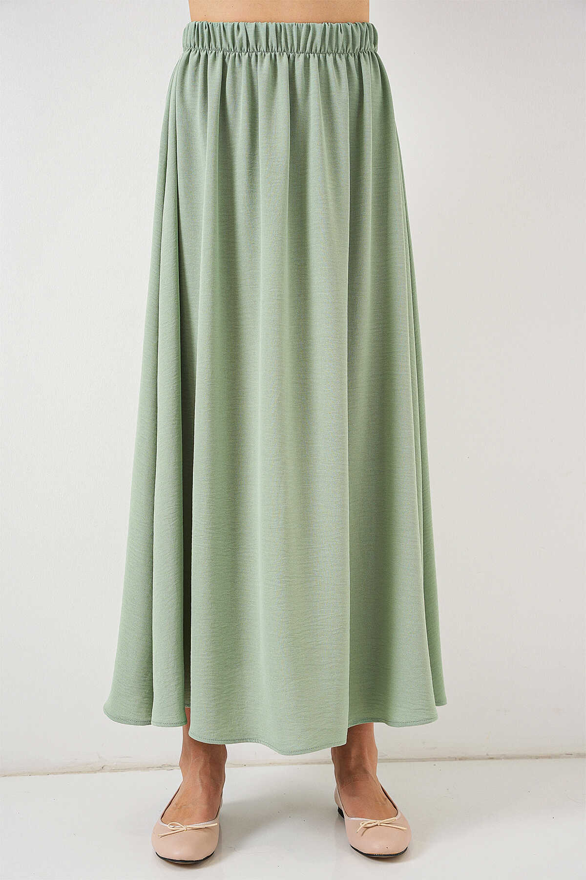 Kadın Uzun Ayrobin Etek 8050 - E.Yeşil - Kombin