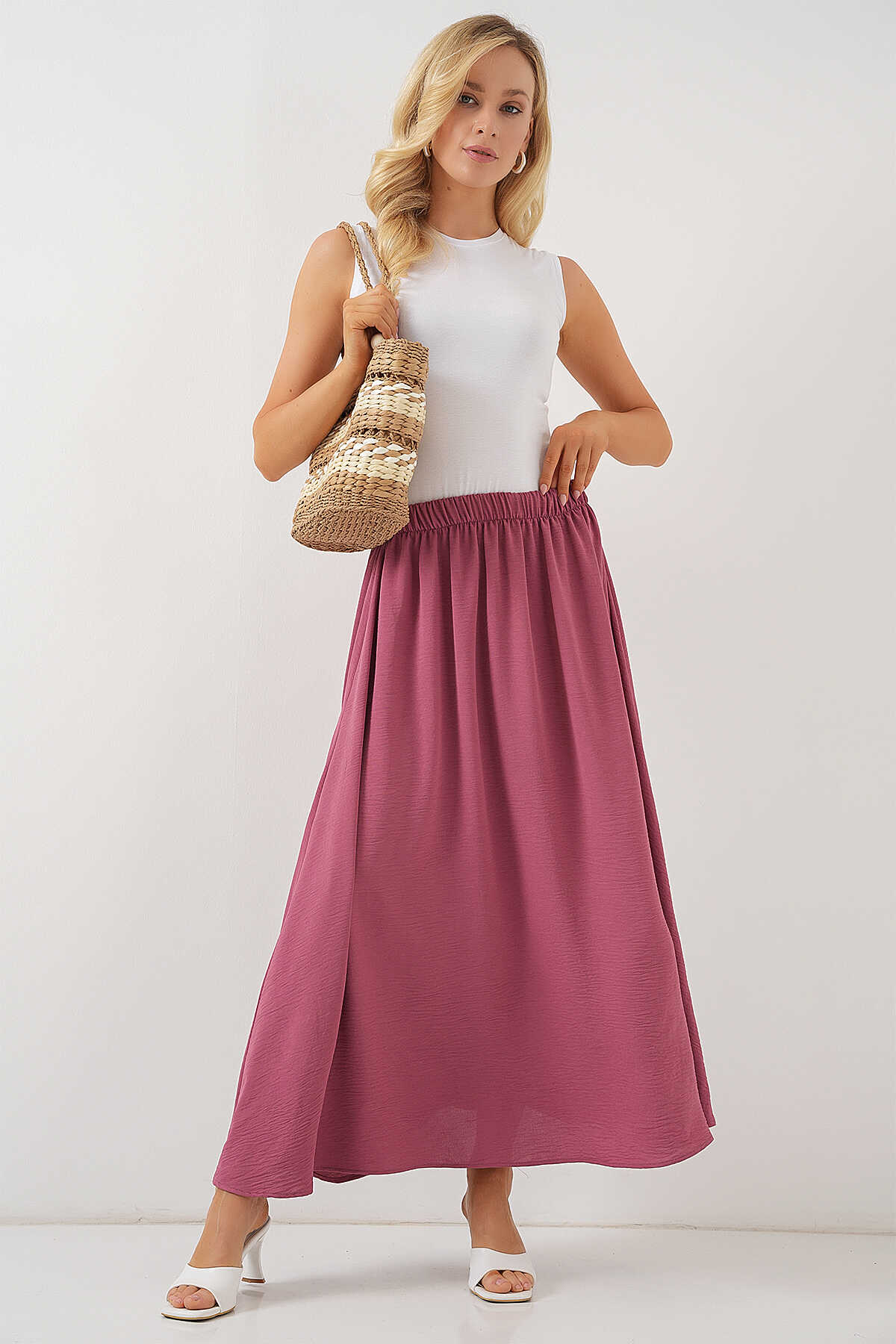 Kadın Uzun Ayrobin Etek 8050 - Gül Kurusu - Kombin