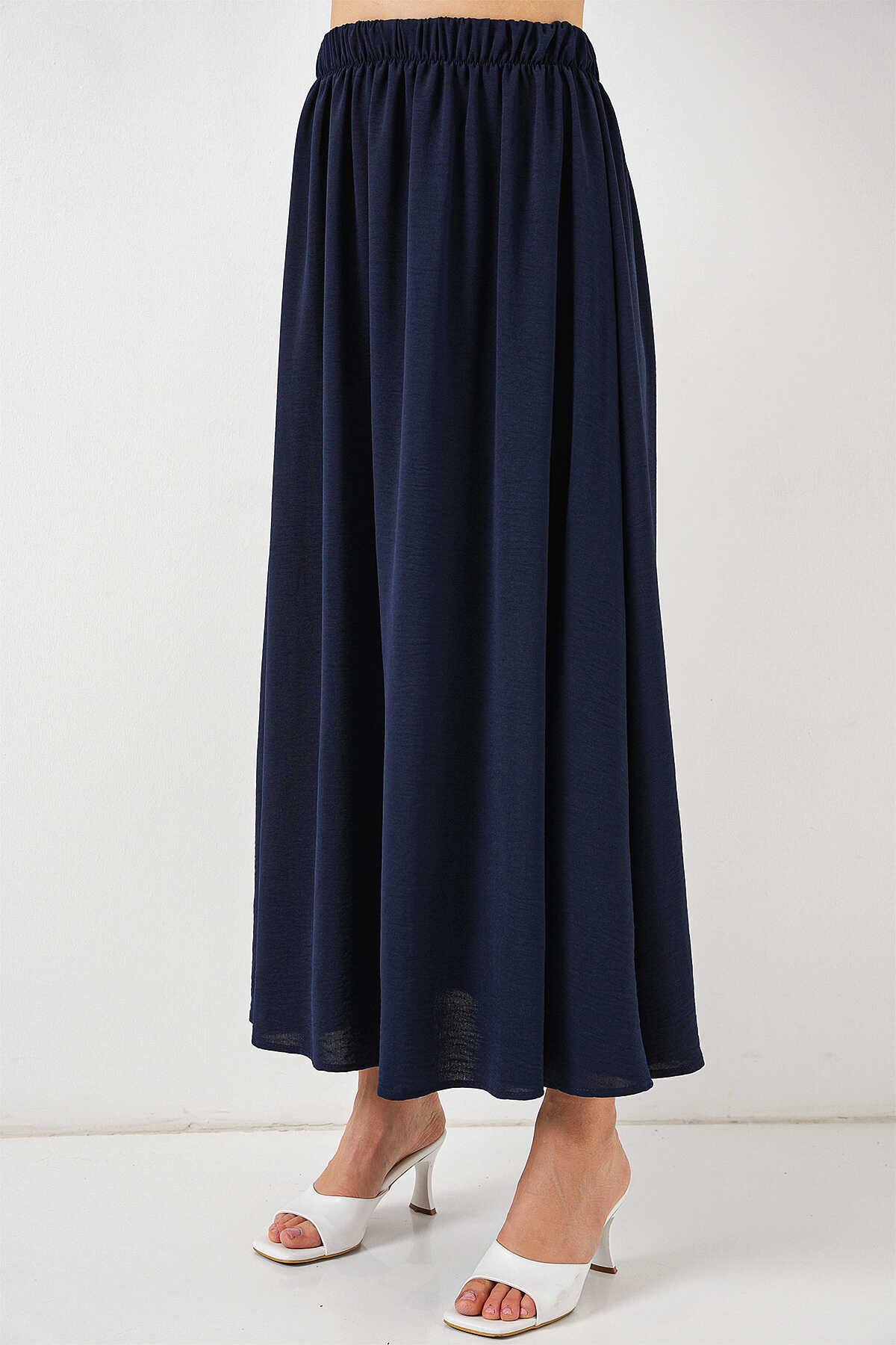 Kadın Uzun Ayrobin Etek 8050 - Lacivert - Kombin