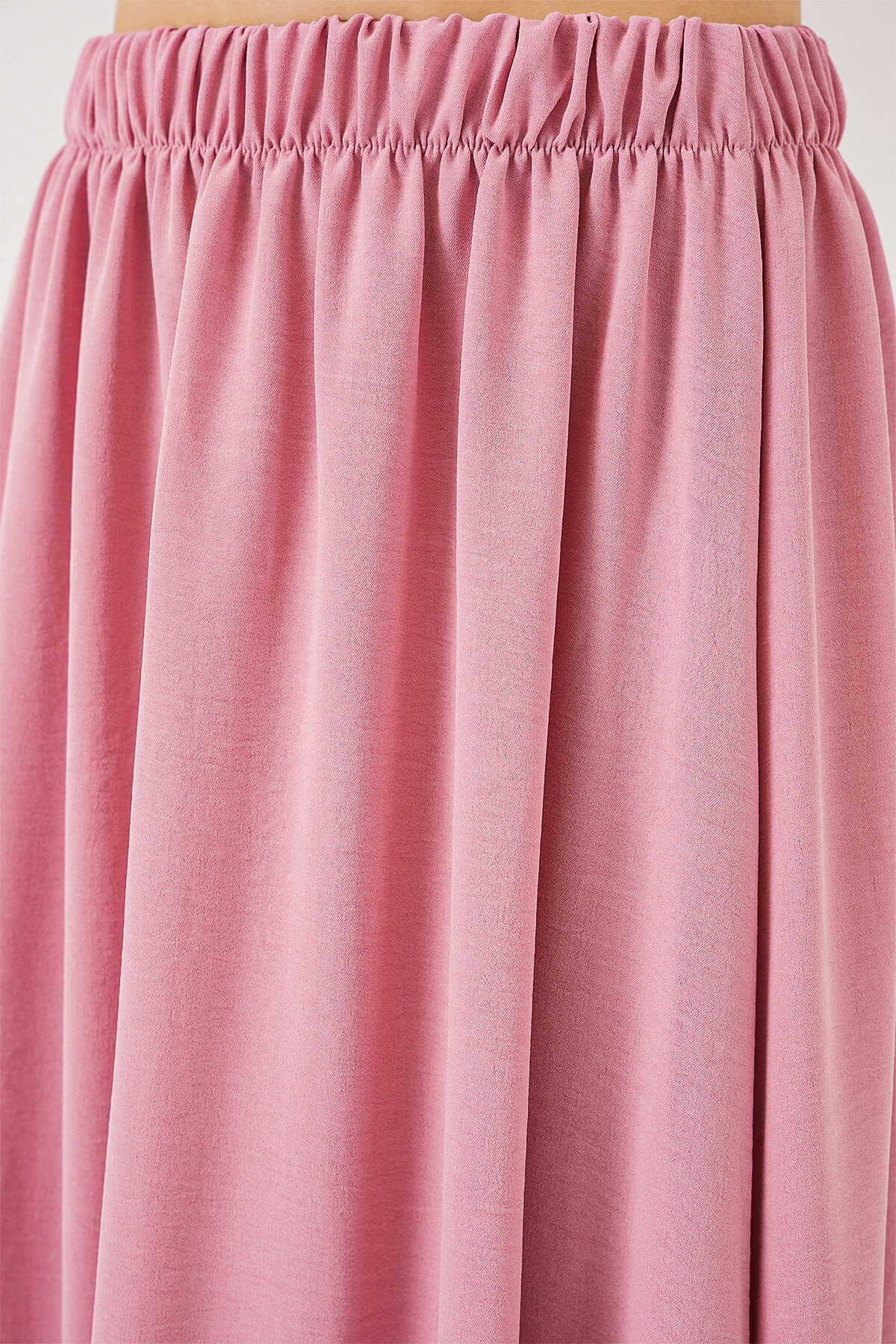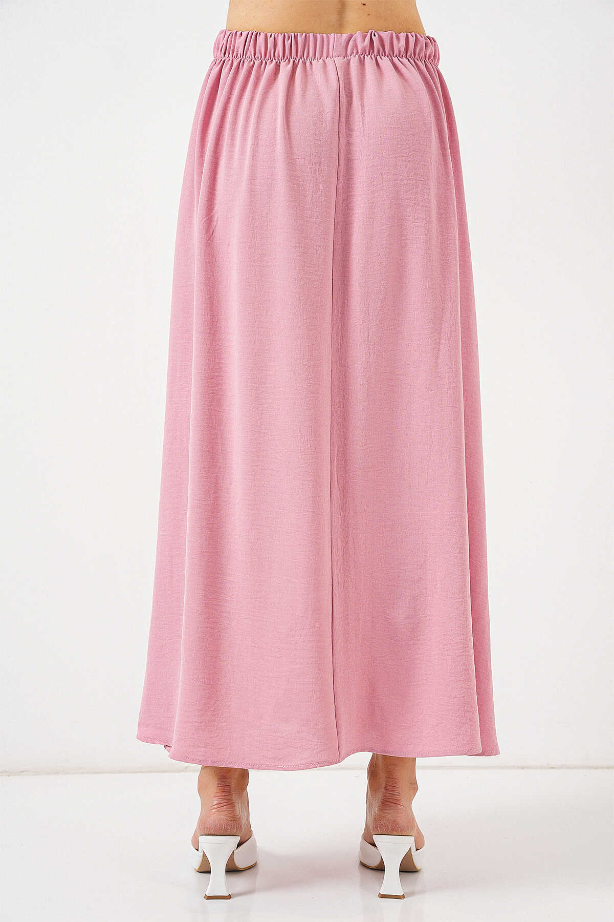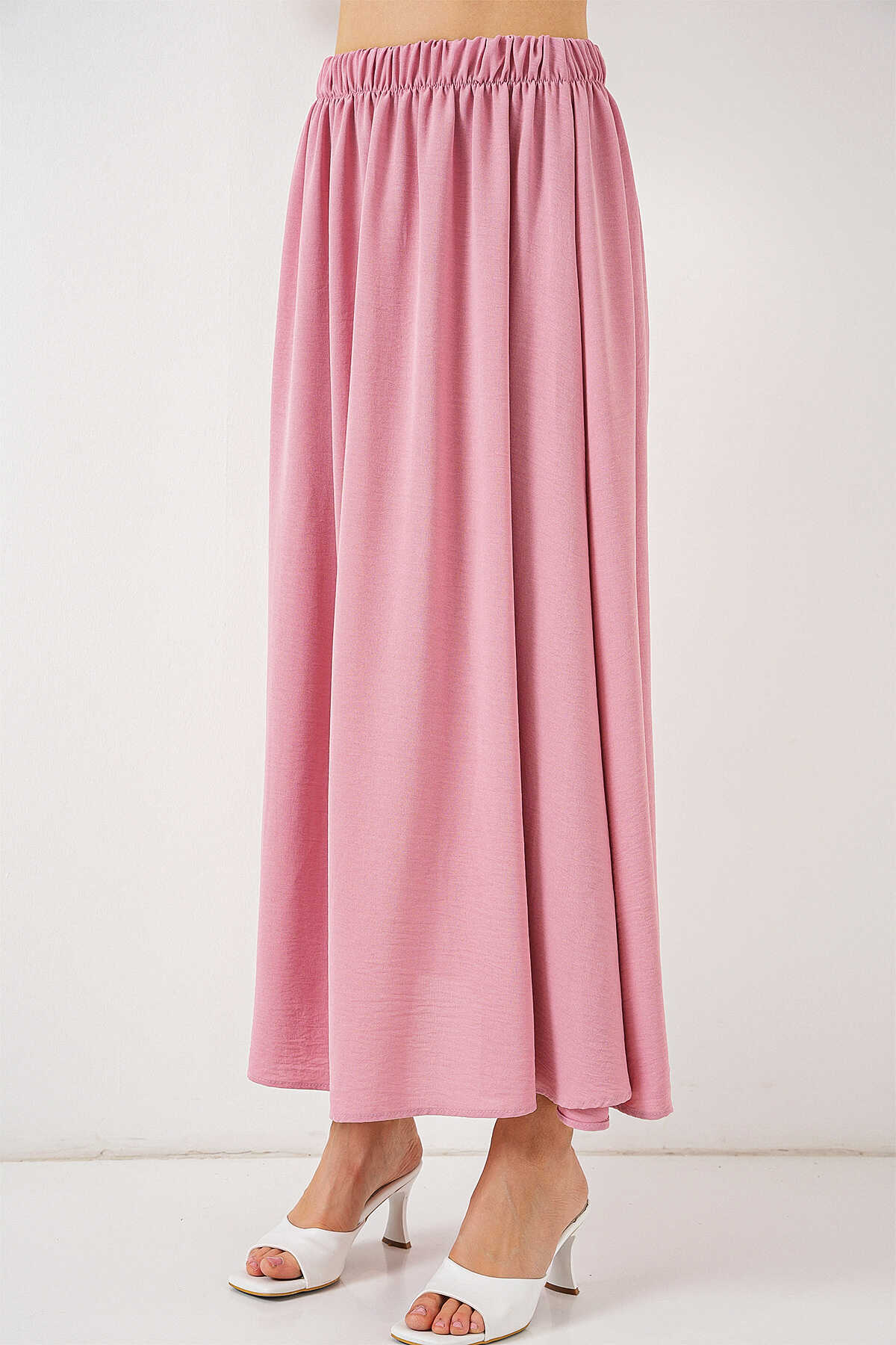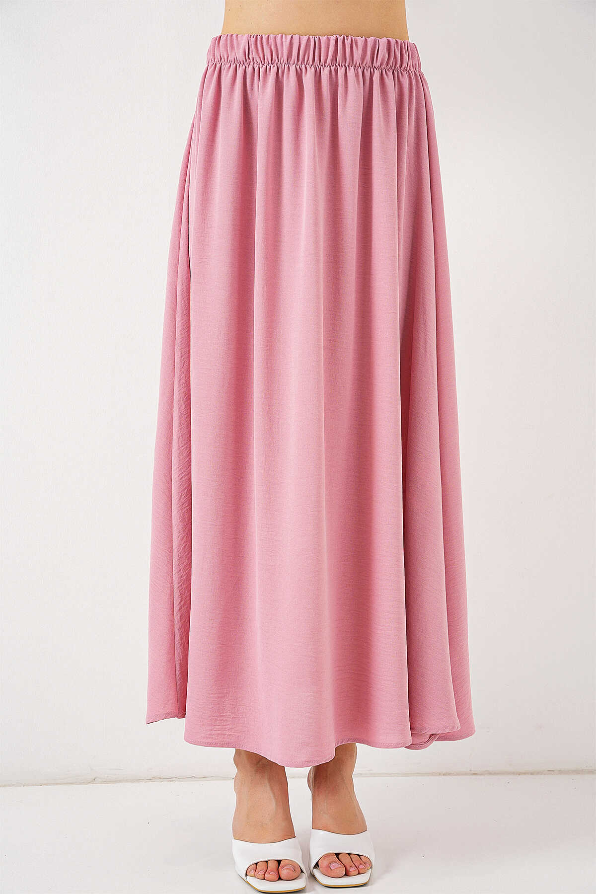 Kadın Uzun Ayrobin Etek 8050 - Pudra - Kombin