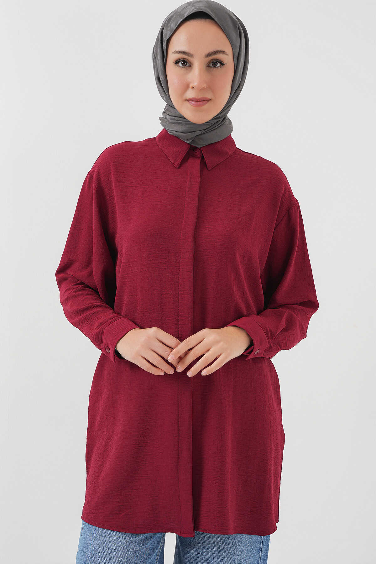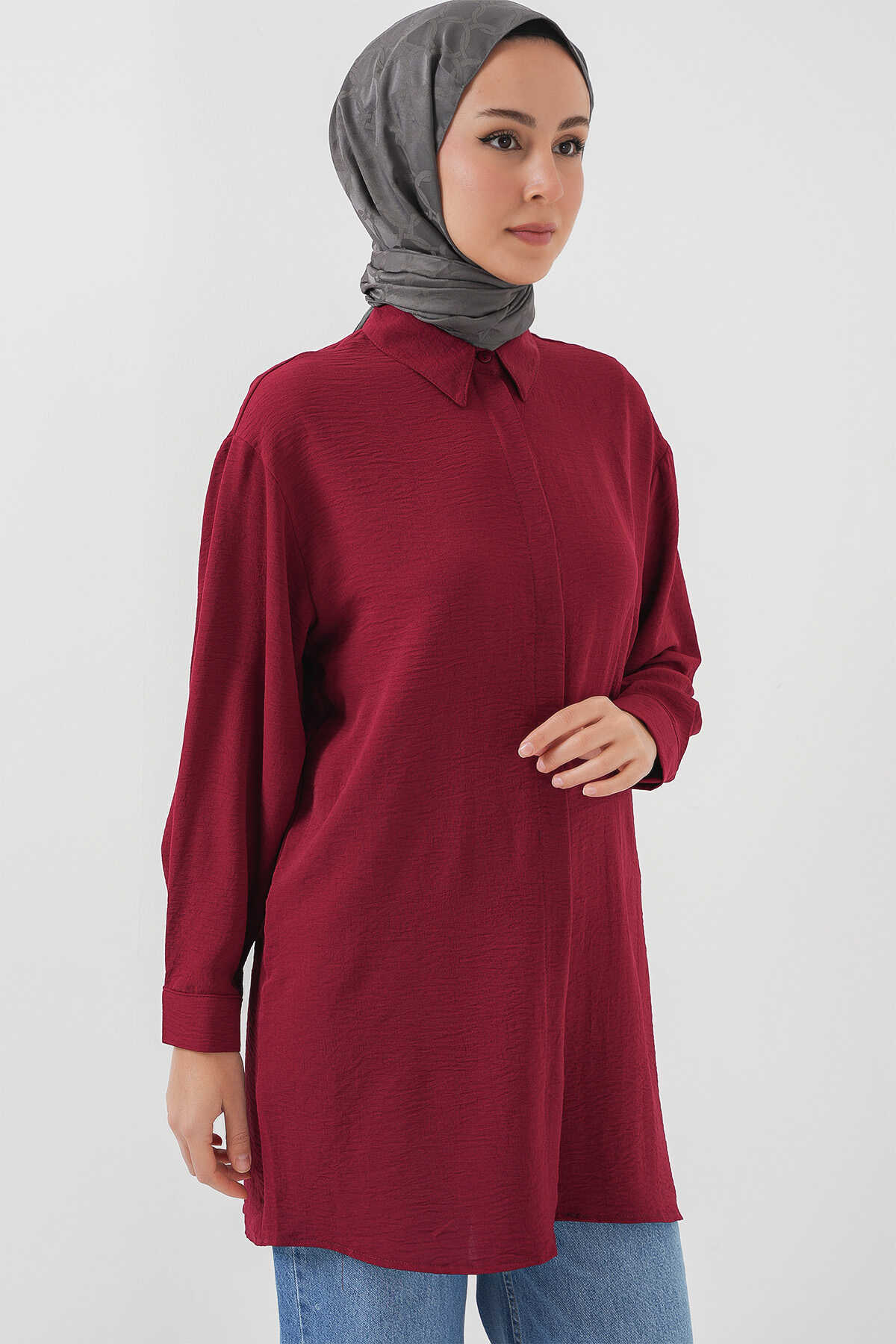 Kadın Uzun Gömlek Tunik 5945 - Bordo