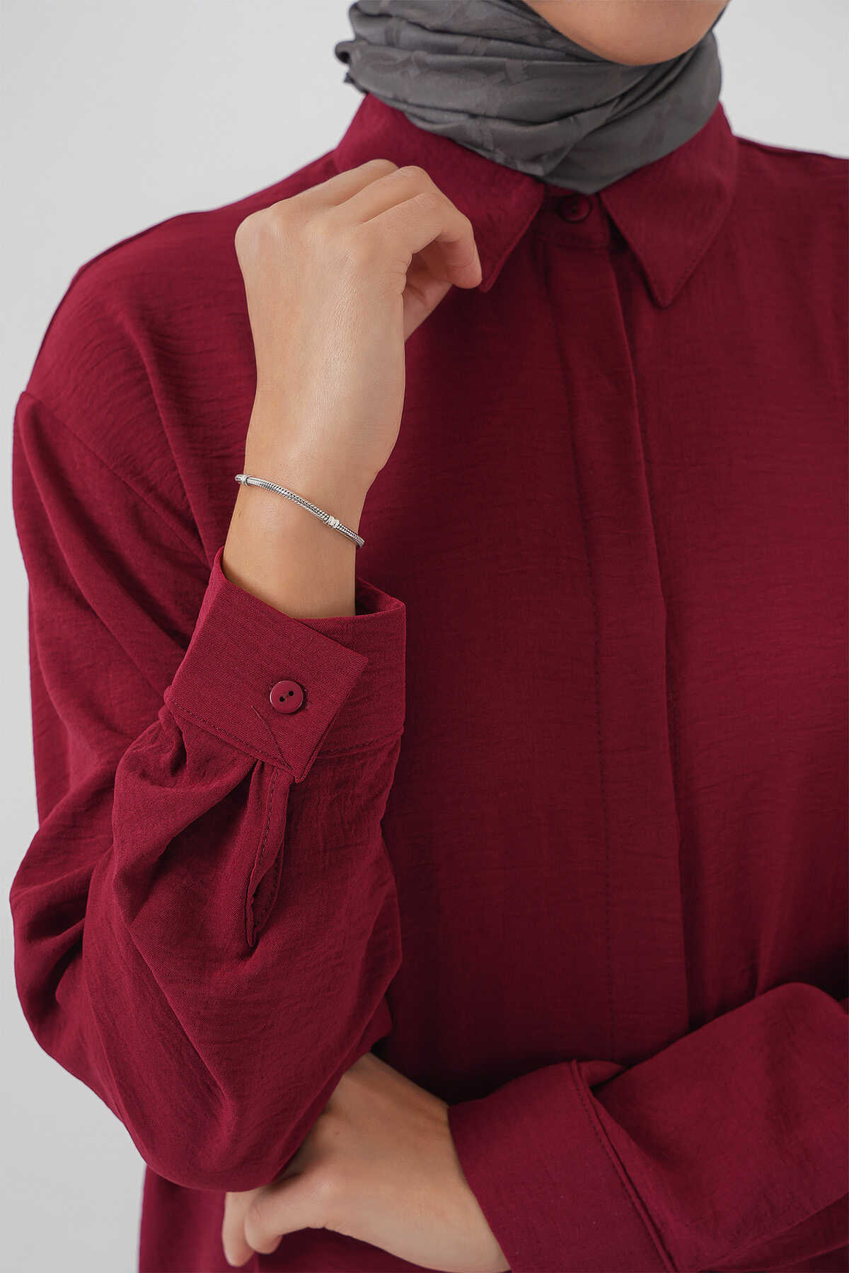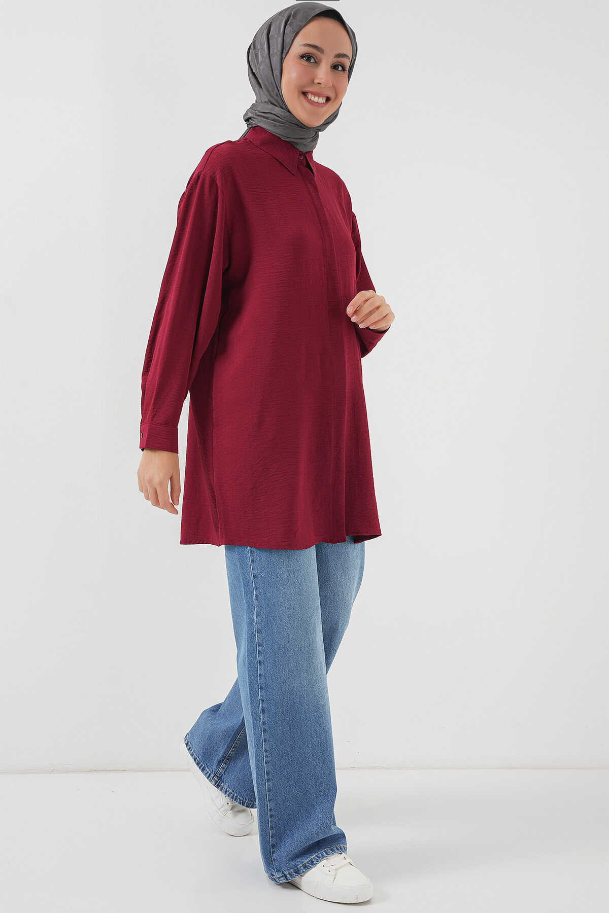 Kadın Uzun Gömlek Tunik 5945 - Bordo - Kombin