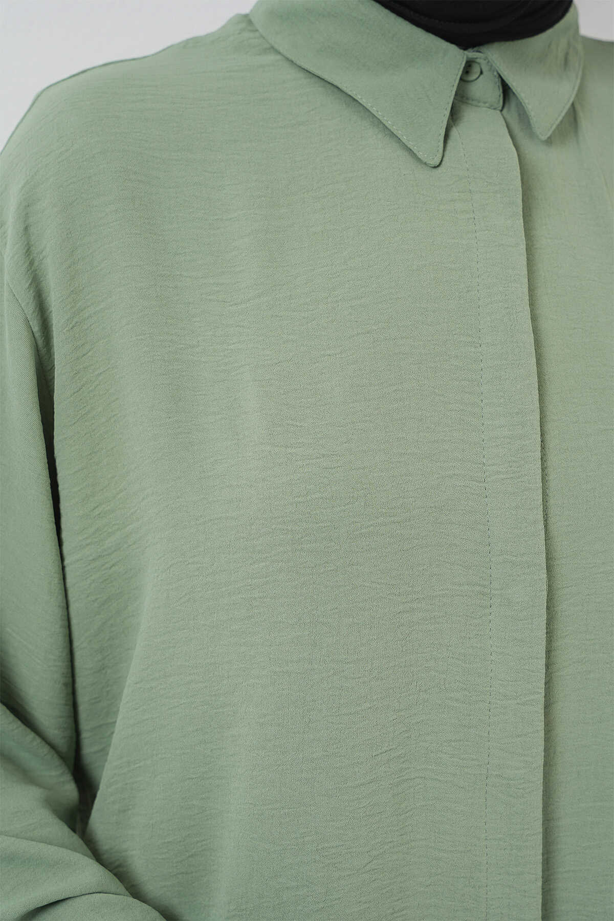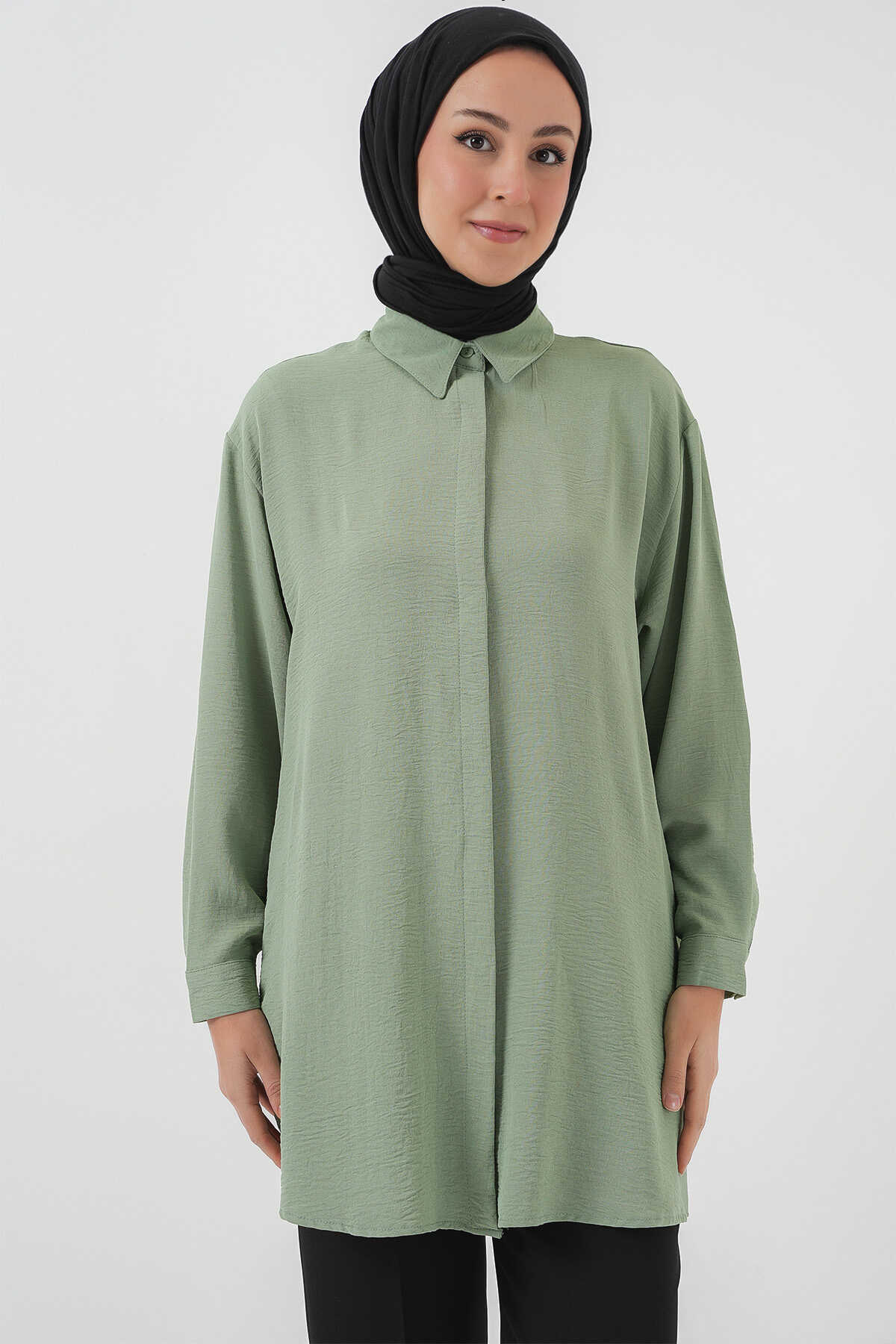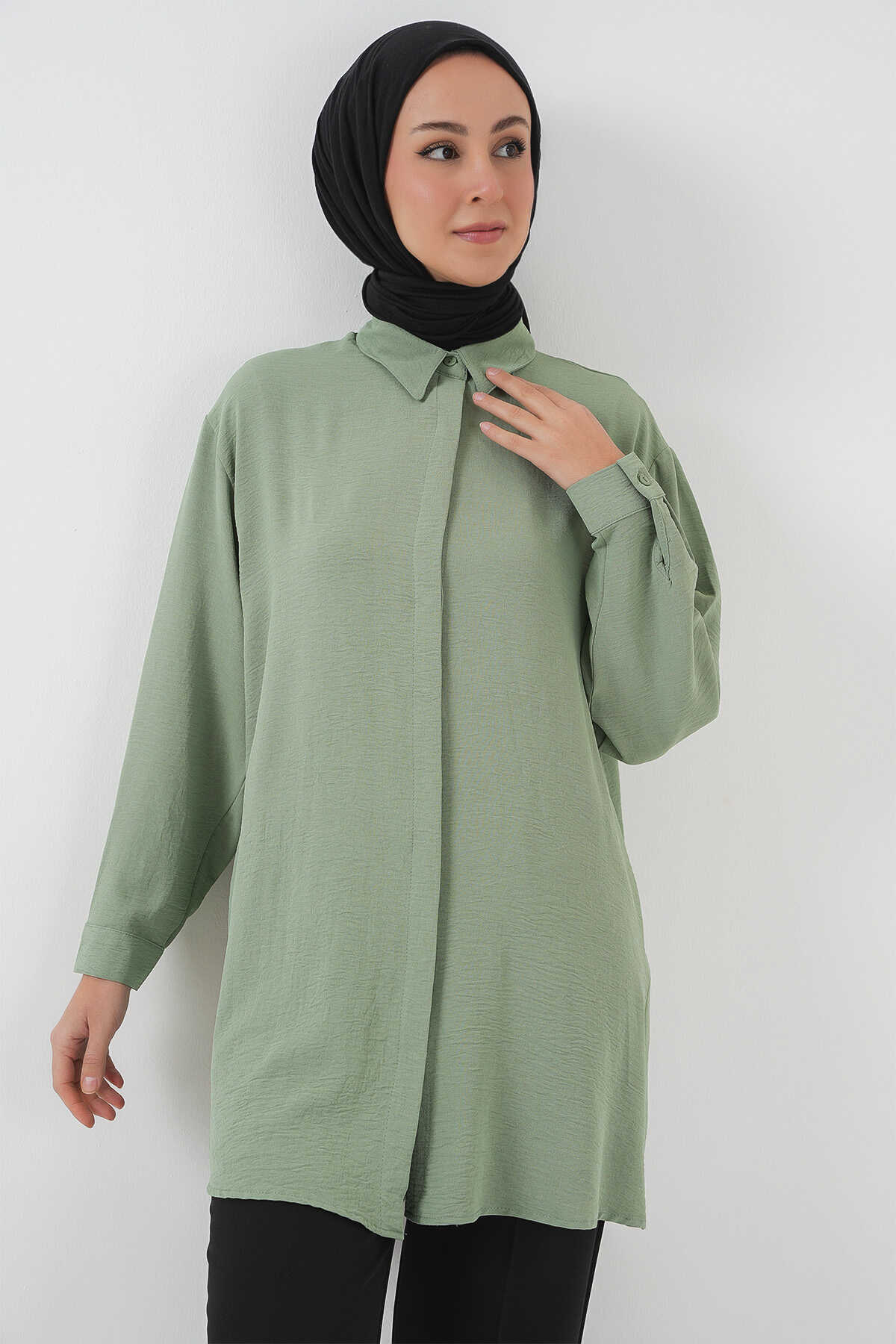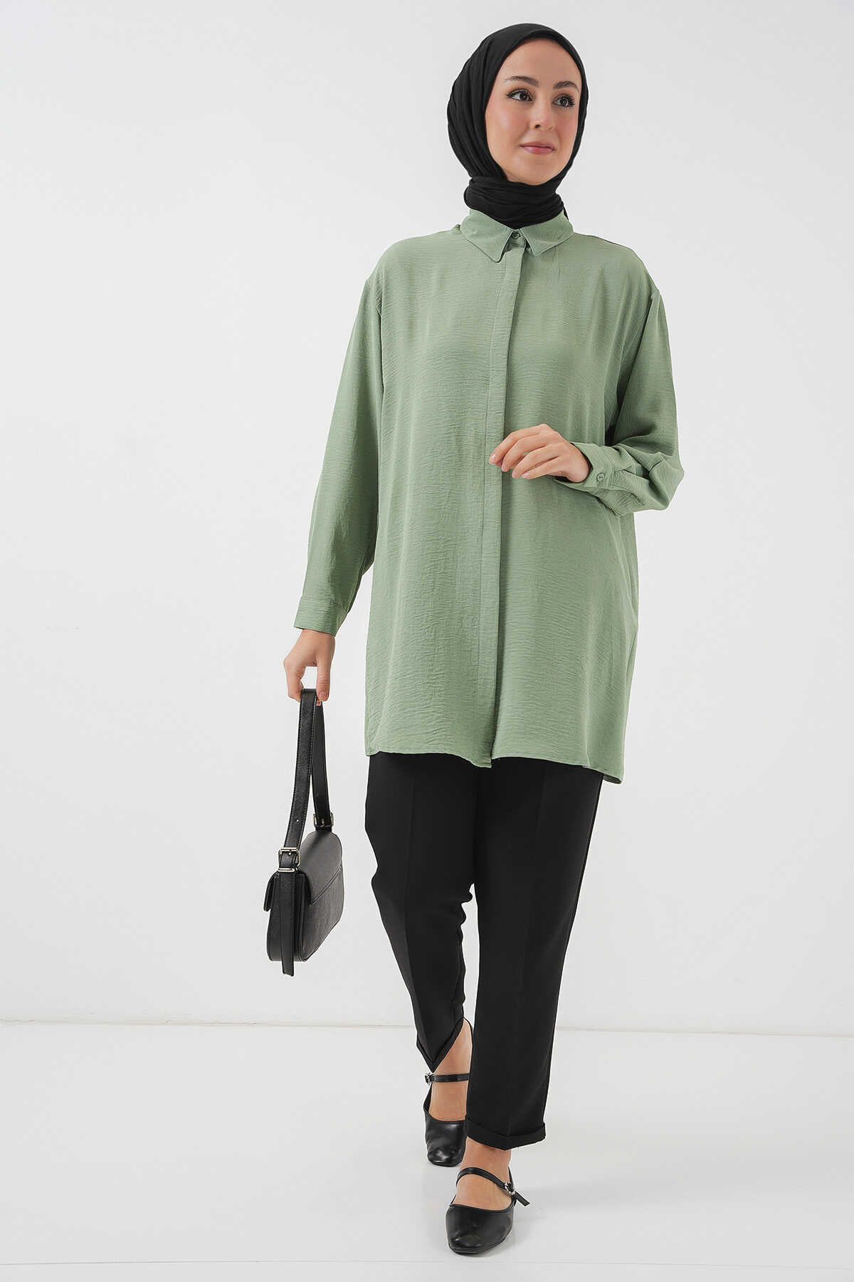 Kadın Uzun Gömlek Tunik 5945 - Çağla - Kombin