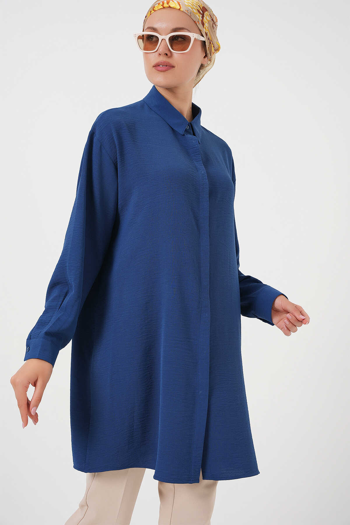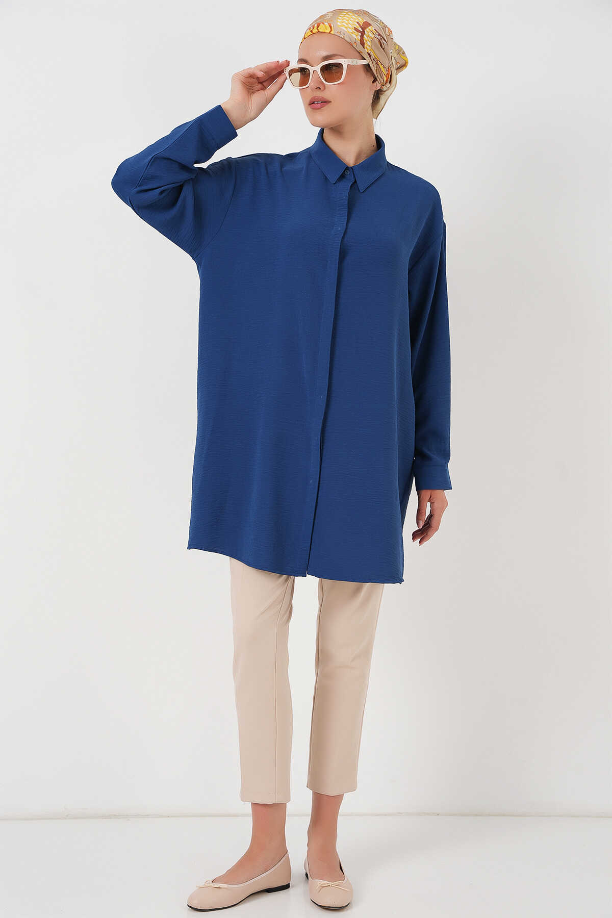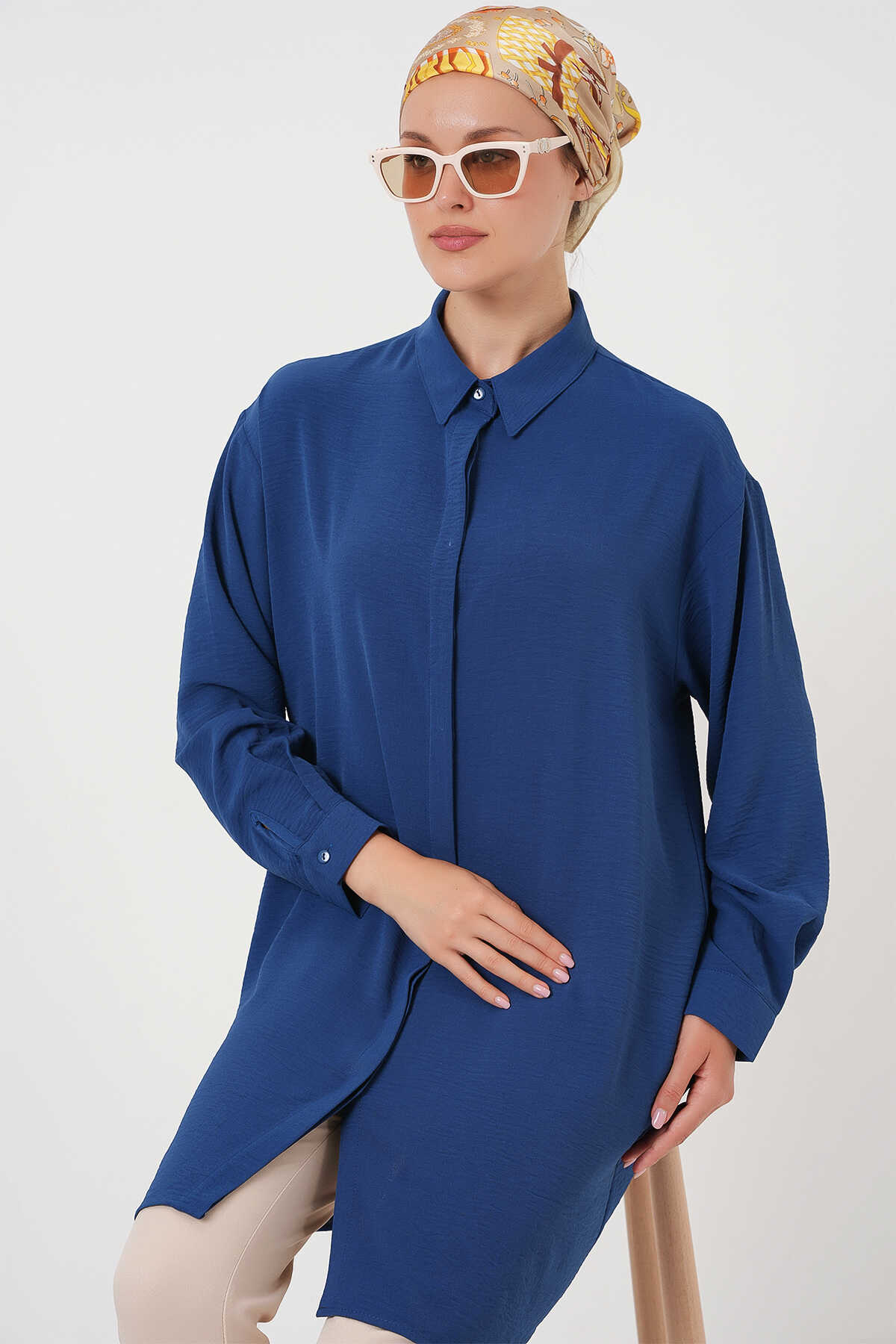 Kadın Uzun Gömlek Tunik 5945 - İndigo - Kombin
