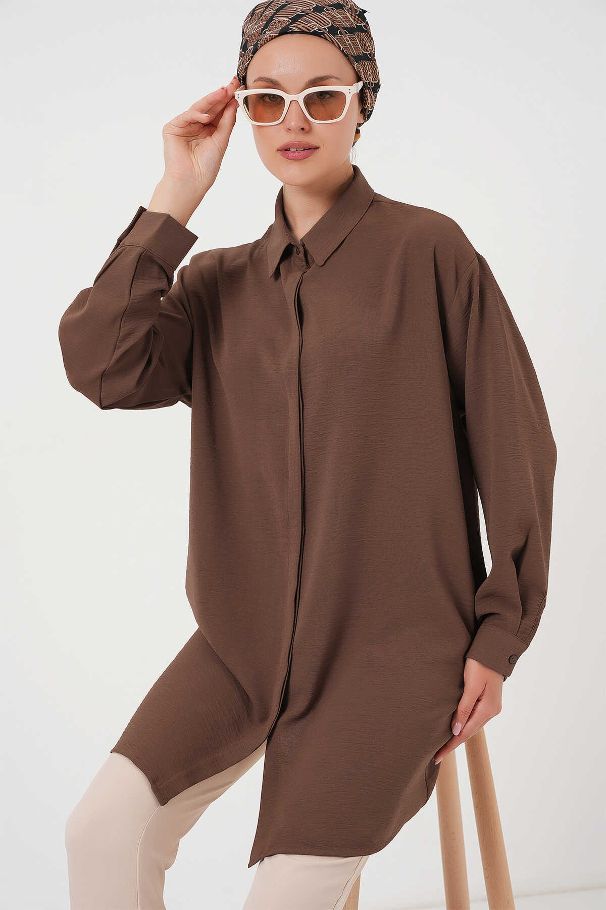 Kadın Uzun Gömlek Tunik 5945 - Kahverengi - Kombin