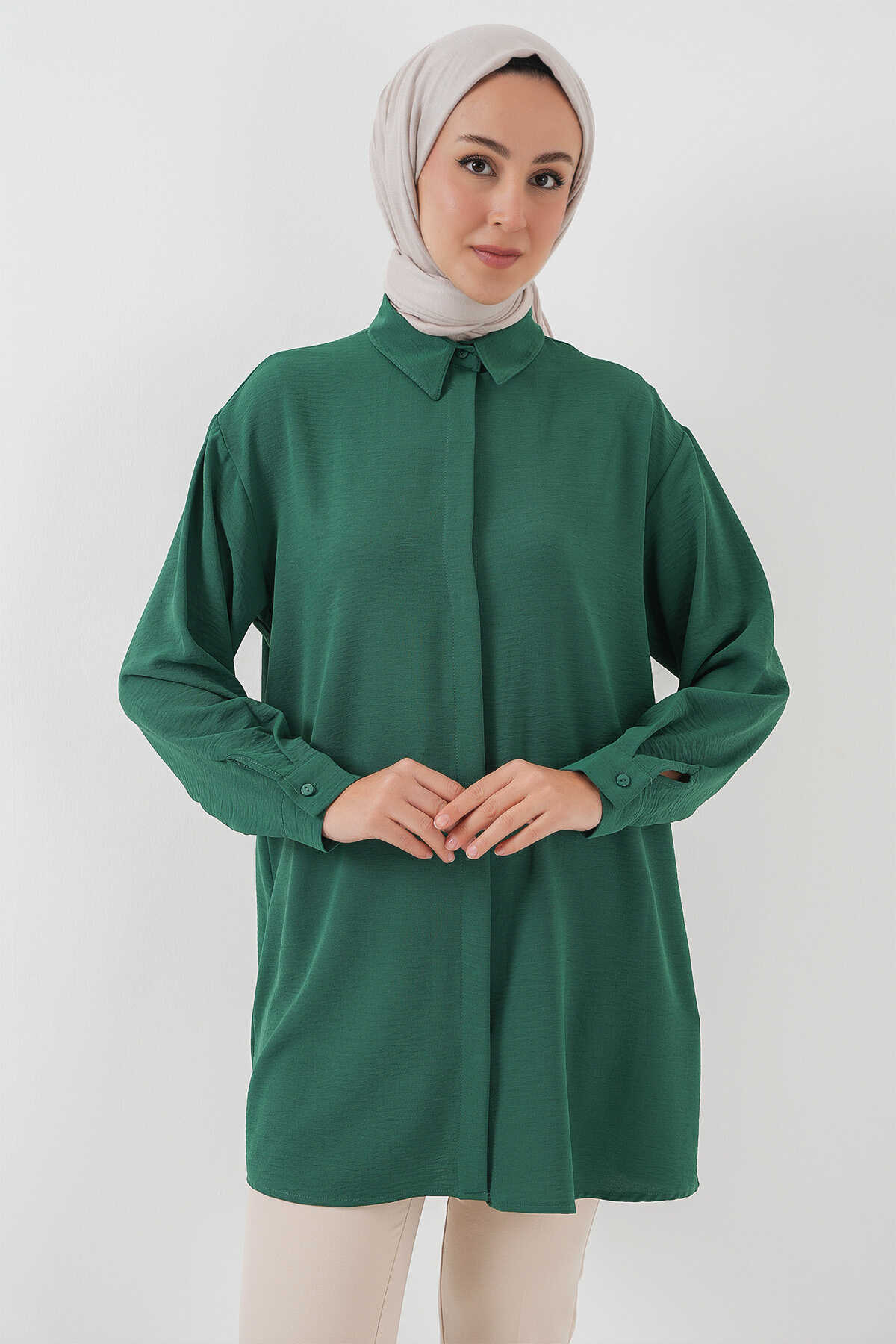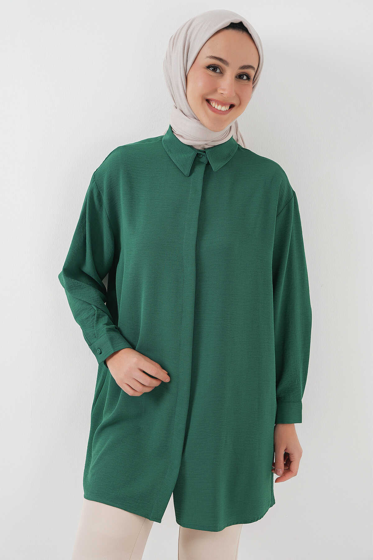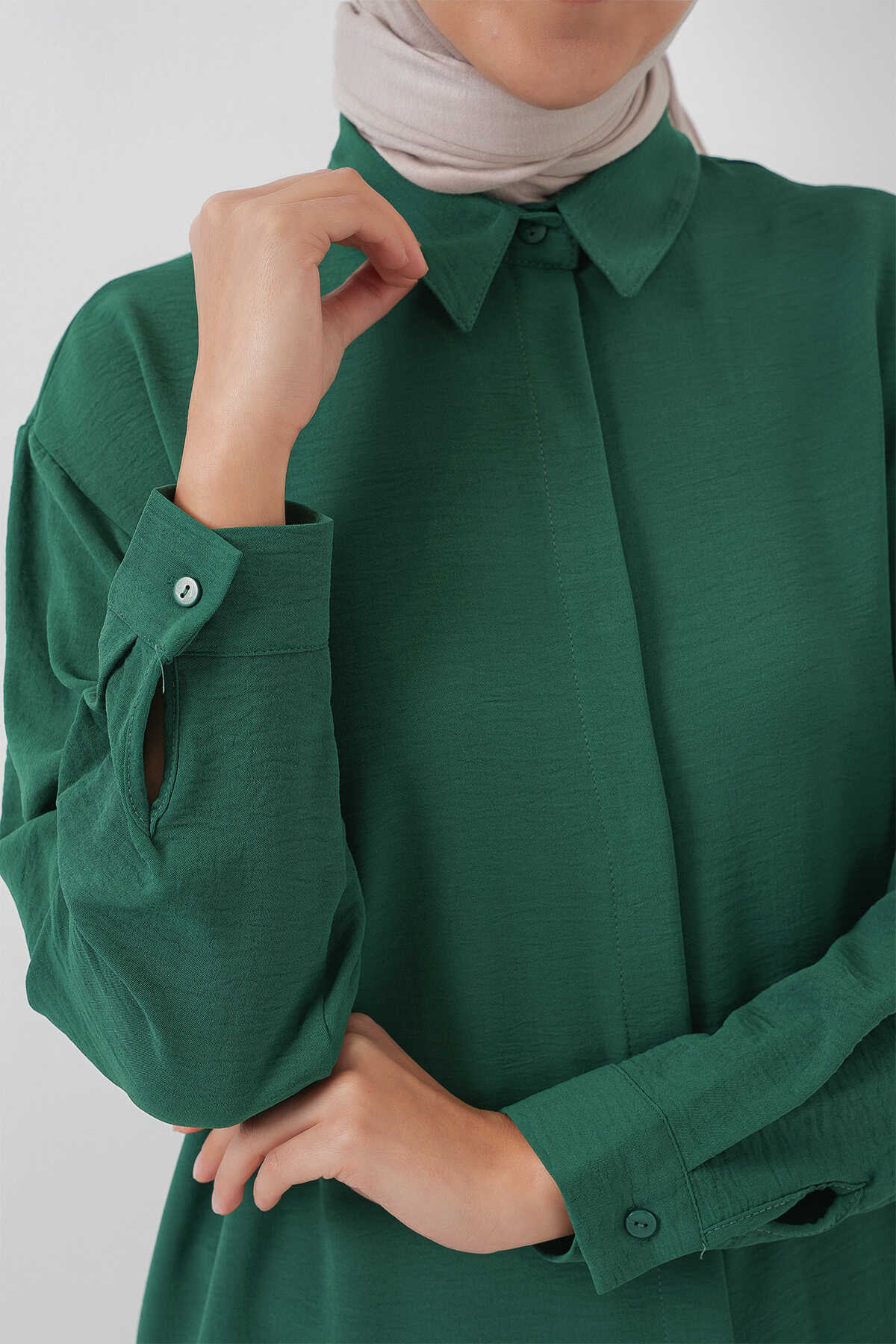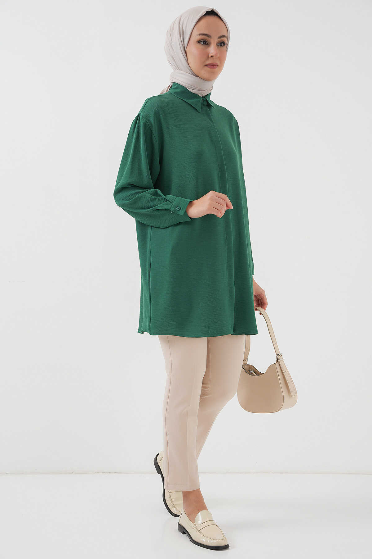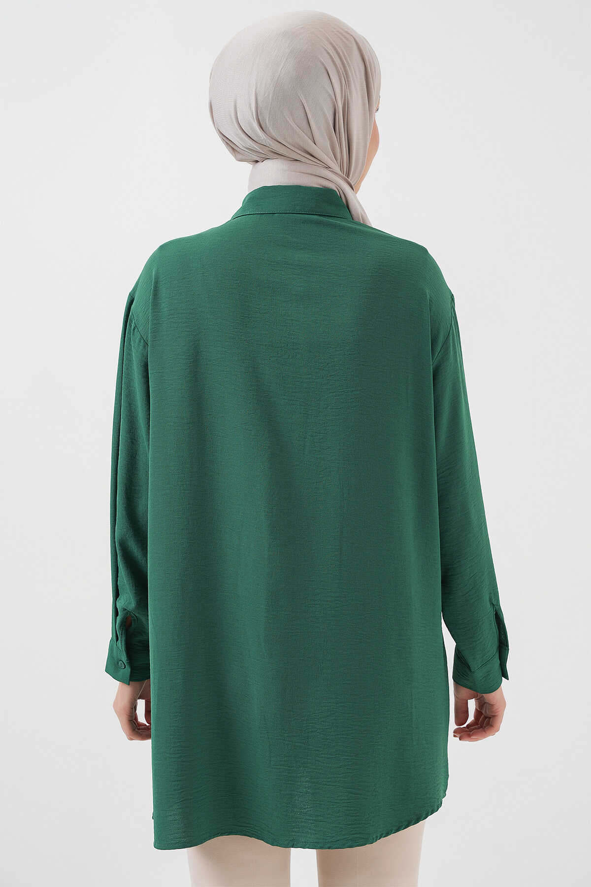 Kadın Uzun Gömlek Tunik 5945 - Zümrüt Yeşili