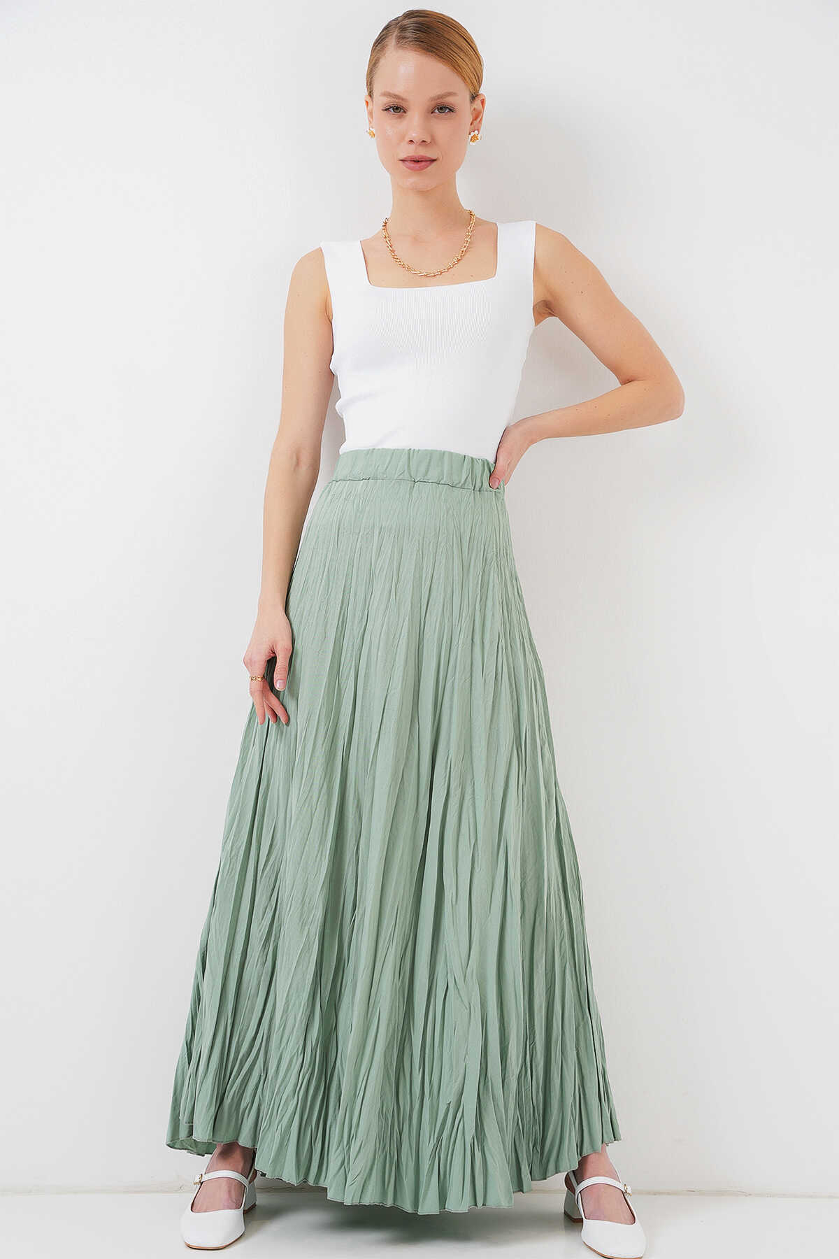 Kadın Uzun Kırışık Etek 8042 - Çağla - Kombin