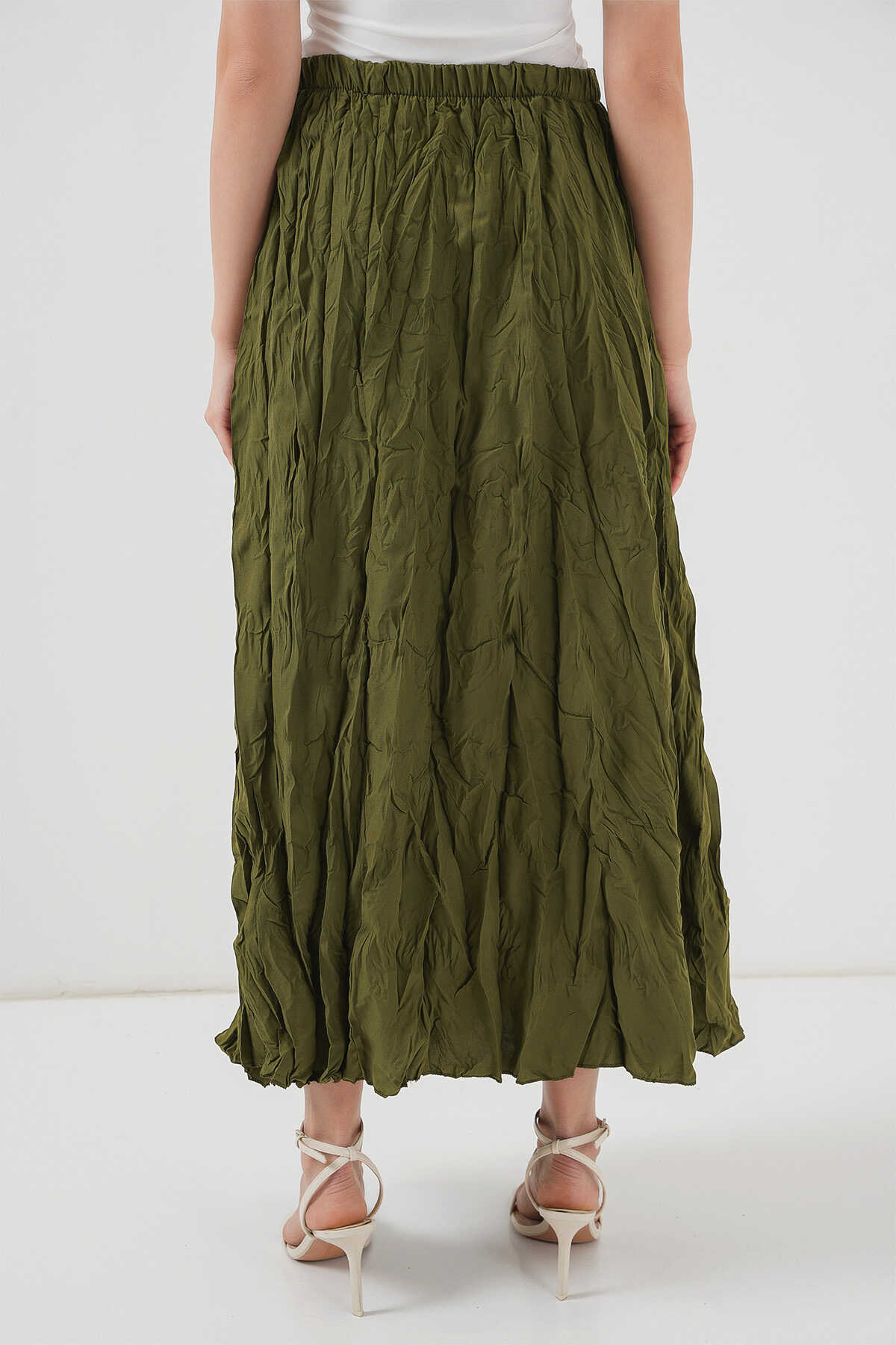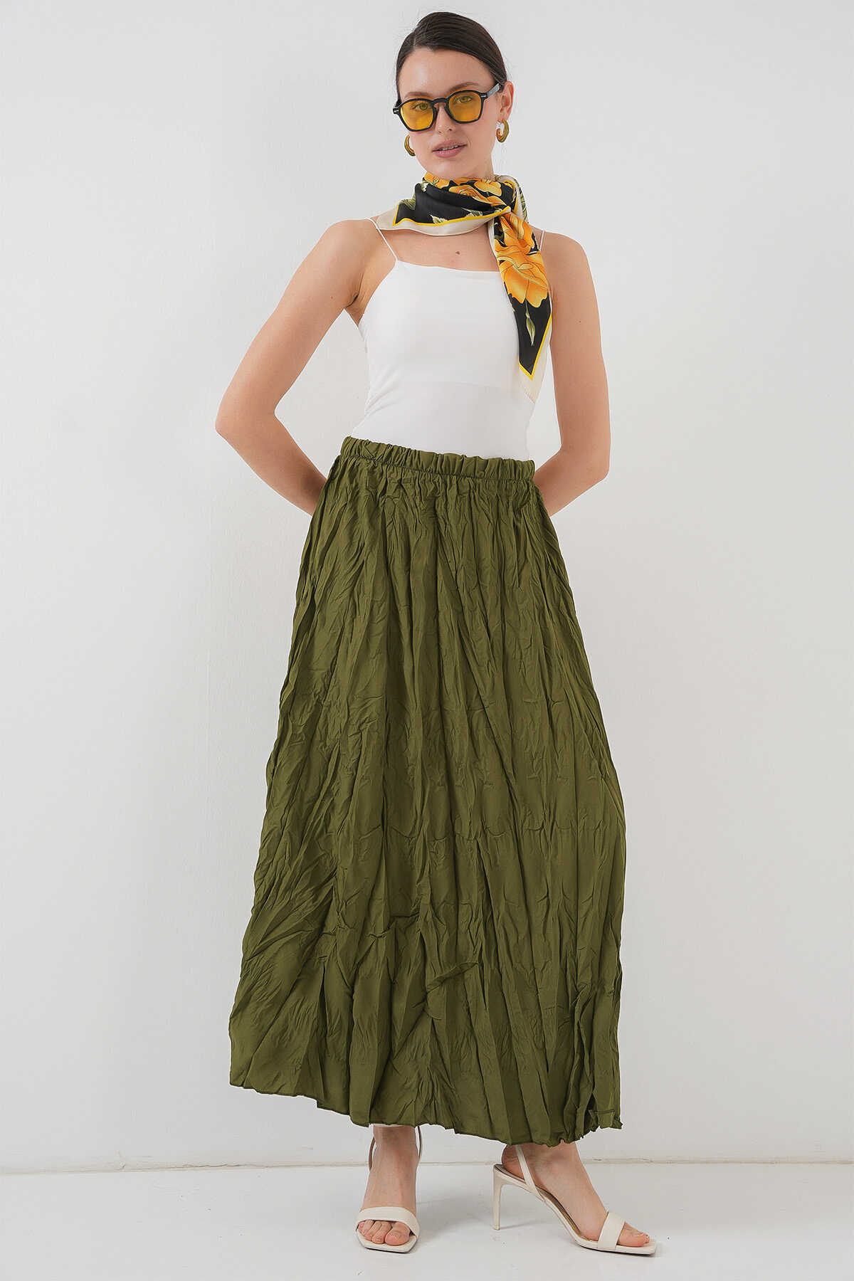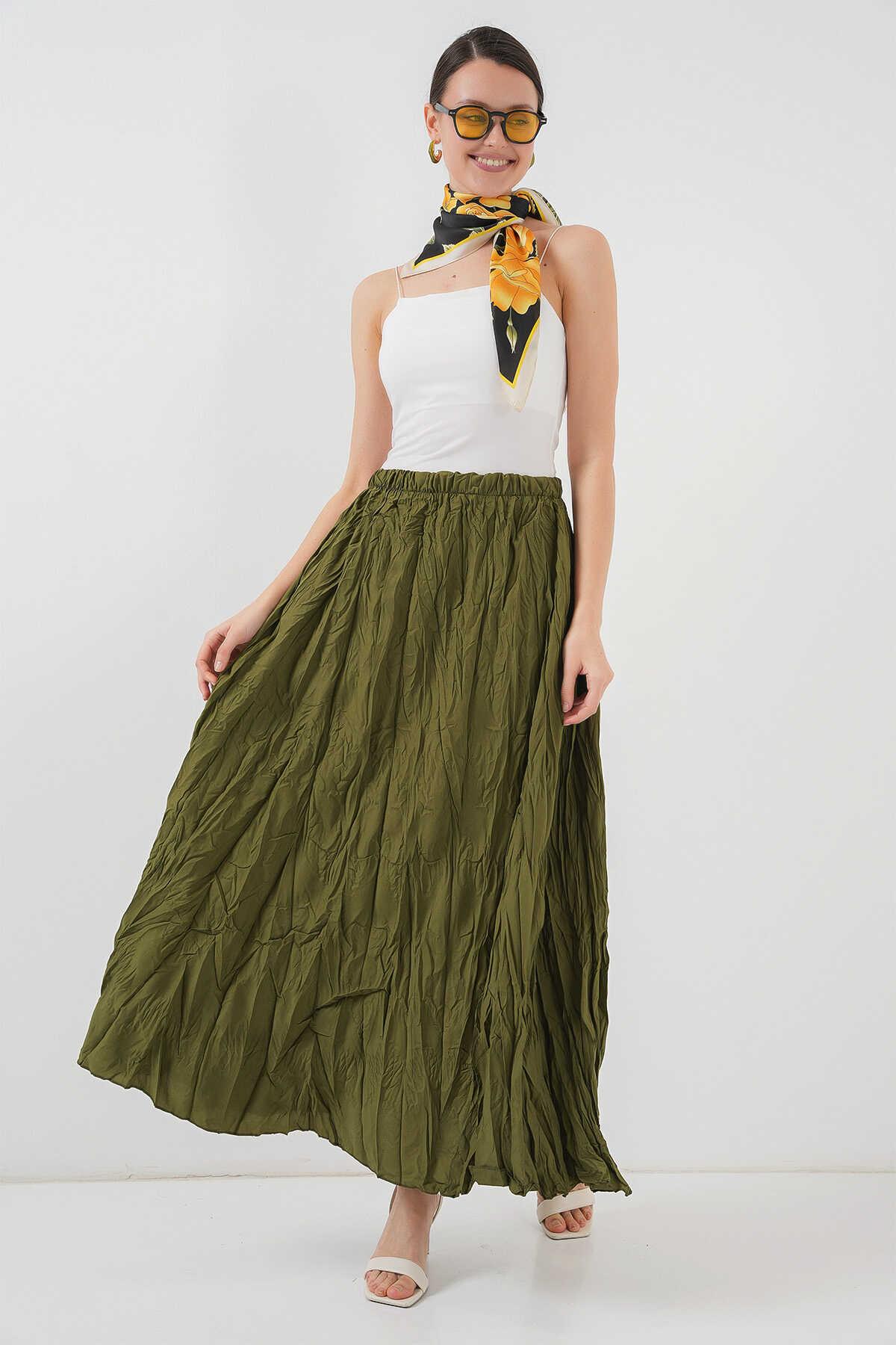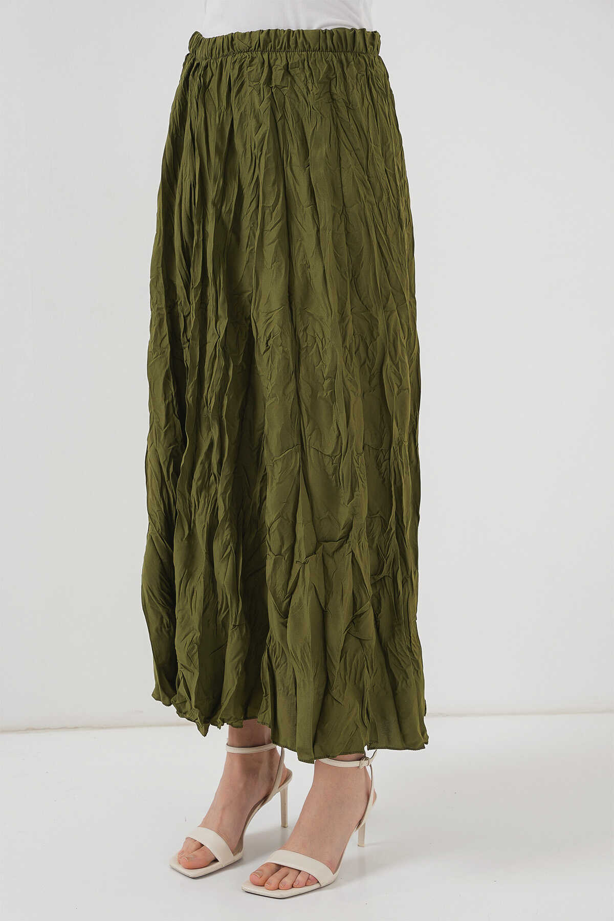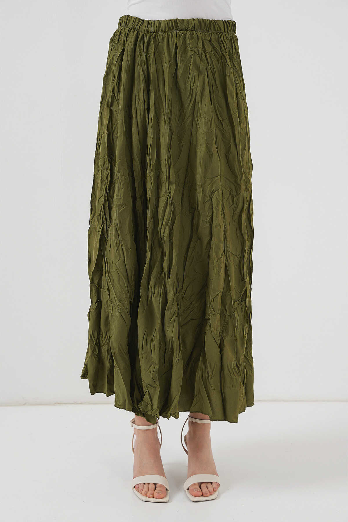 Kadın Uzun Kırışık Etek 8042 - Haki