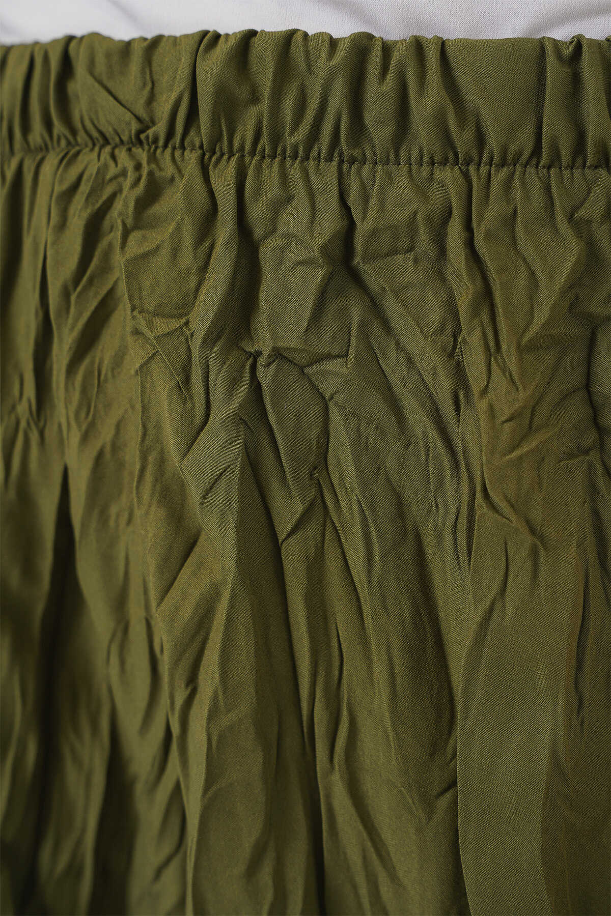 Kadın Uzun Kırışık Etek 8042 - Haki - Kombin