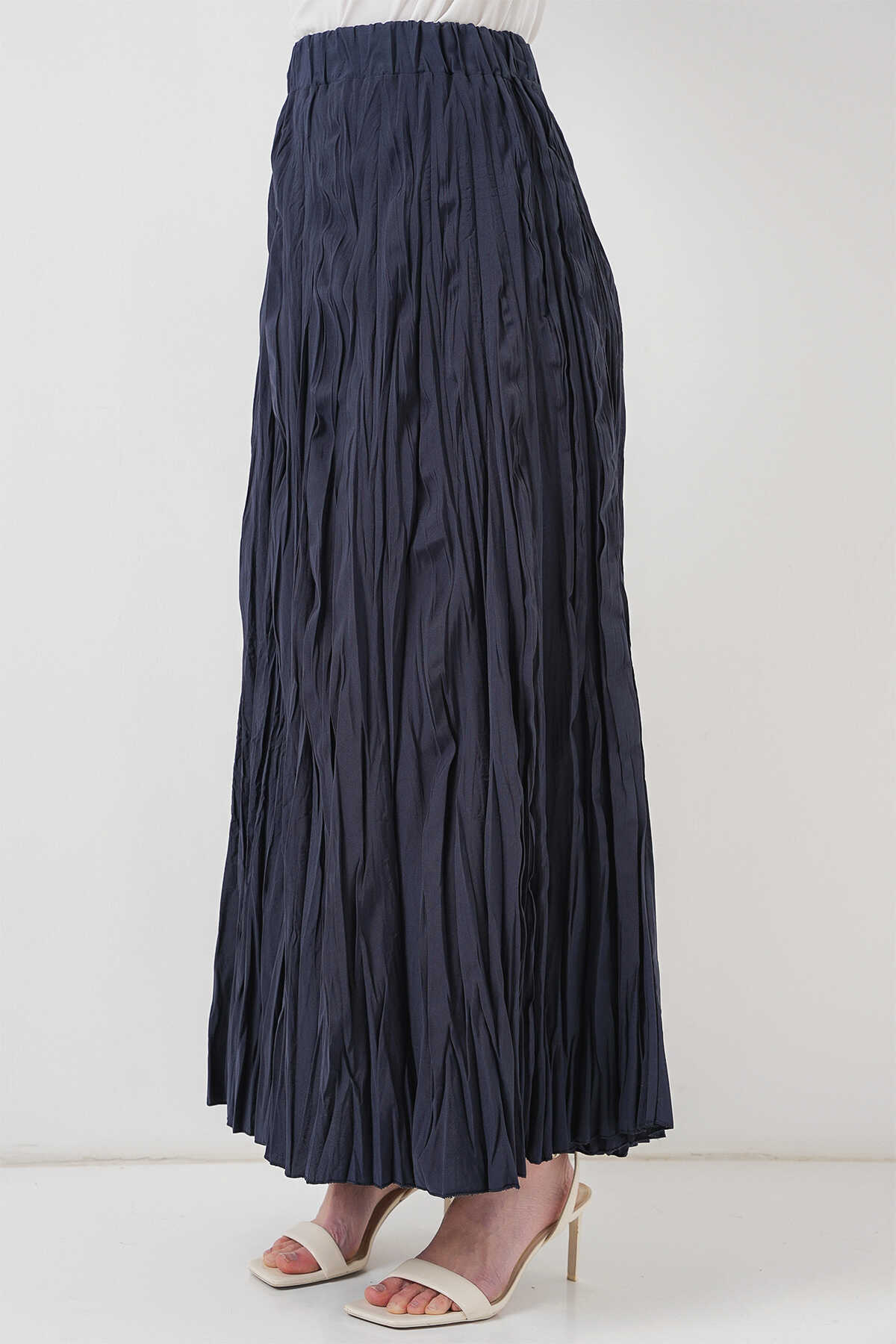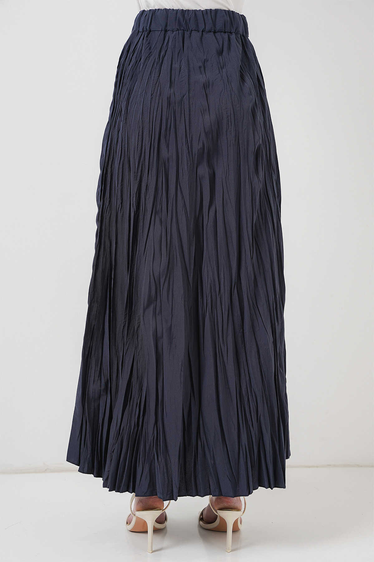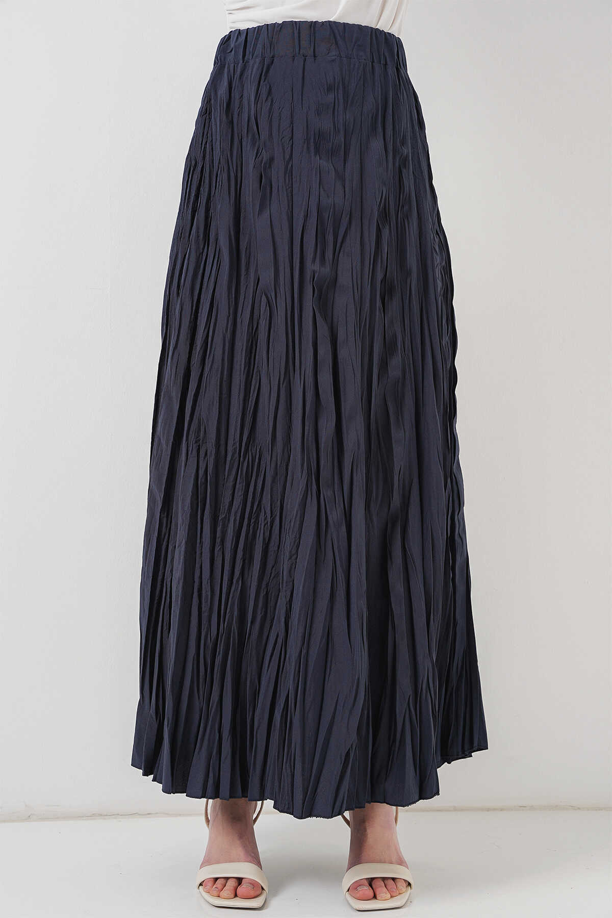 Kadın Uzun Kırışık Etek 8042 - Lacivert