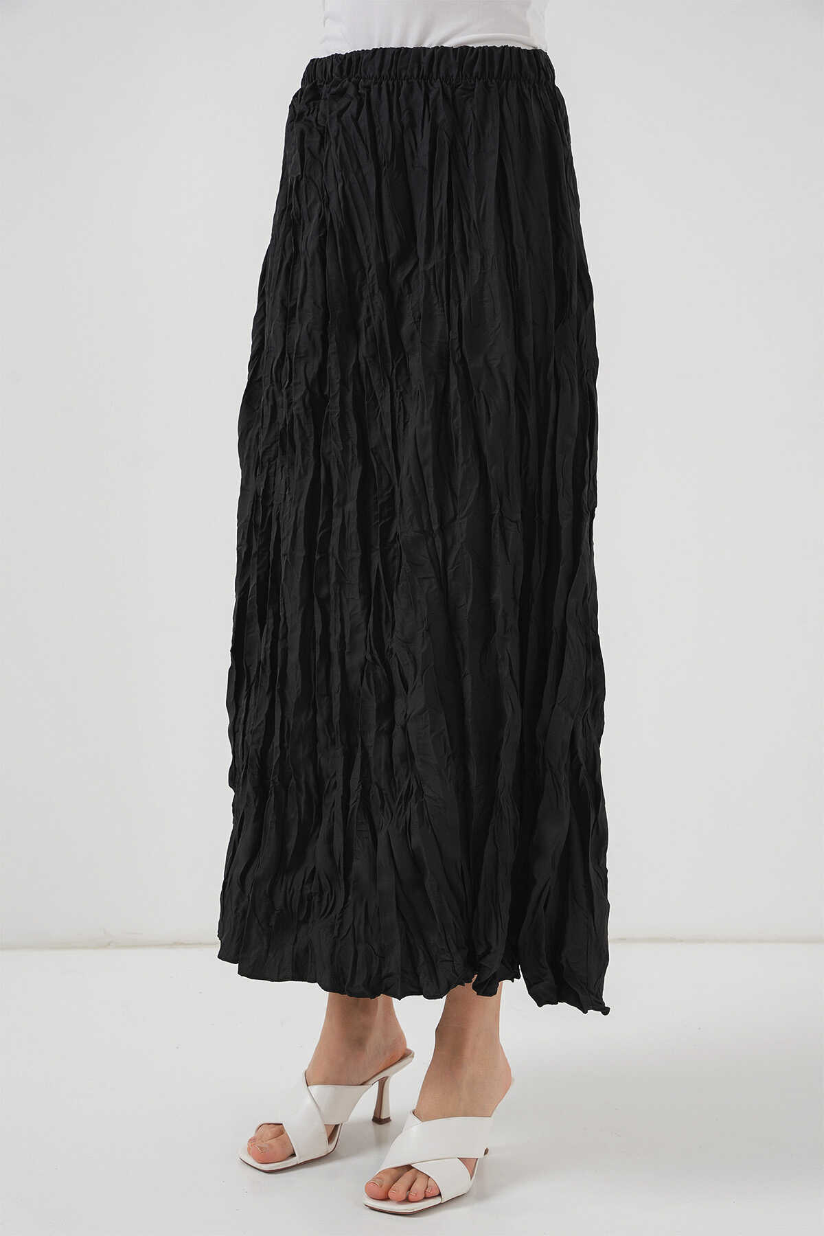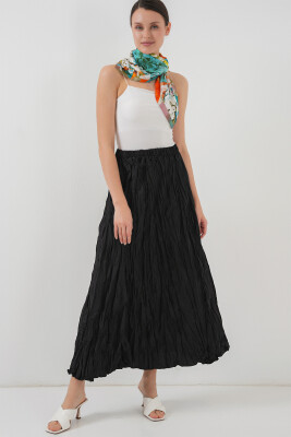 Kadın Uzun Kırışık Etek 8042 - Siyah