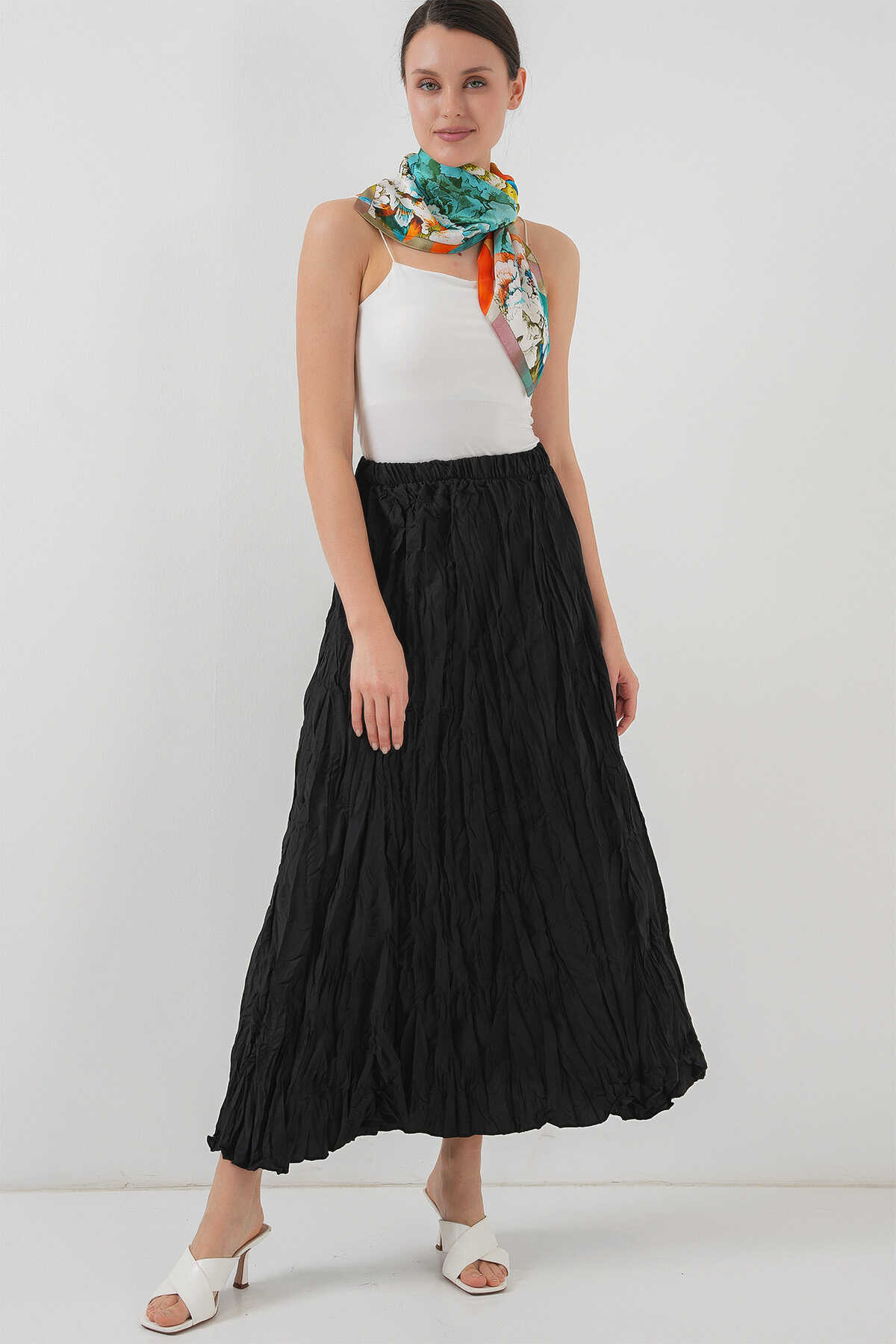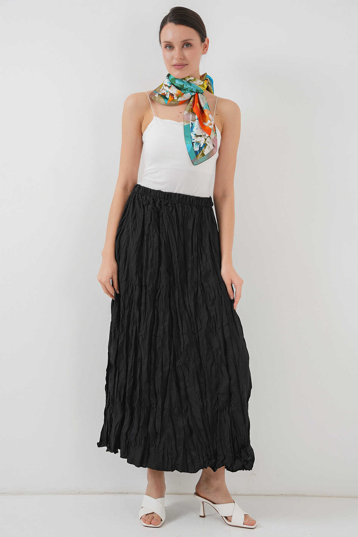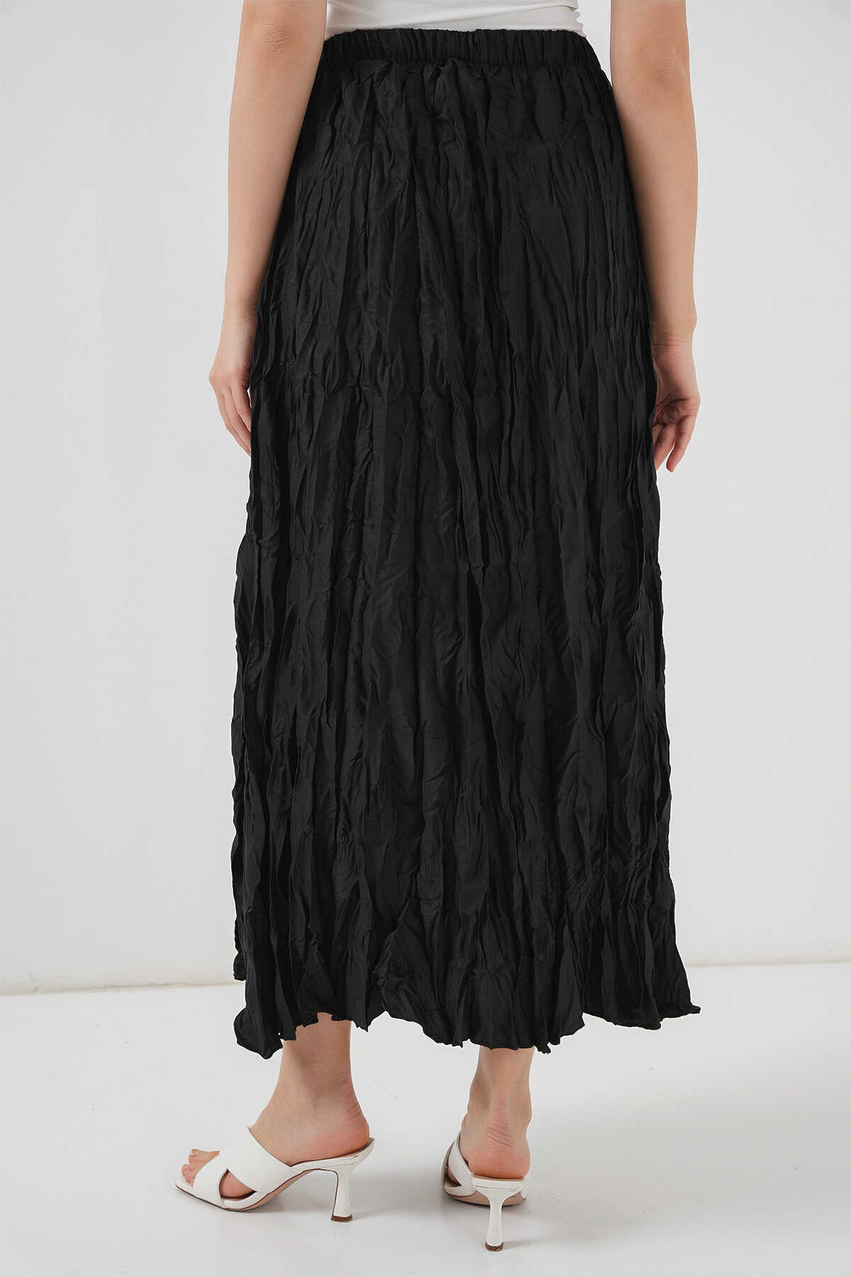 Kadın Uzun Kırışık Etek 8042 - Siyah - Kombin