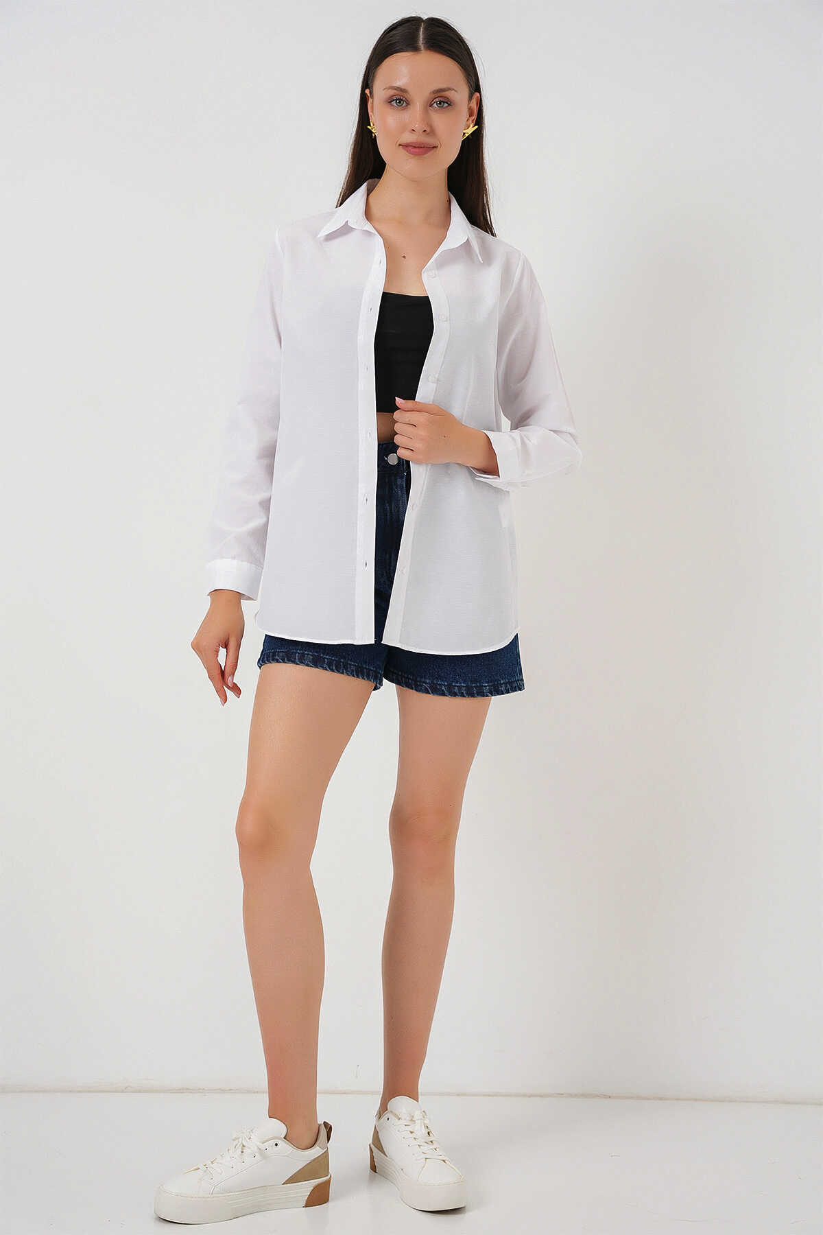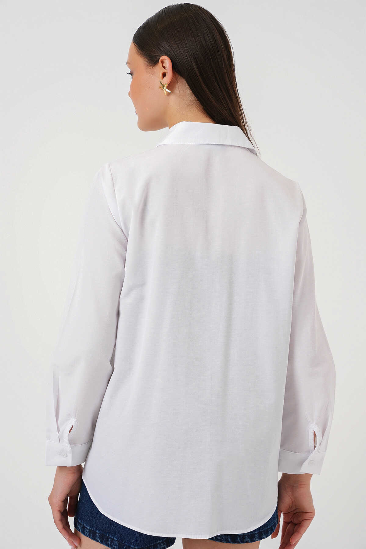 Kadın Uzun Kol Basic Gömlek 20279 - Beyaz - Kombin